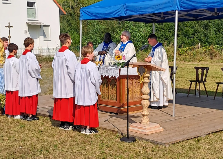 Zum Festgottesdienst an Maria Himmelfahrt 15. August versammelten sich 500 Gläubige auf die Festwiese neben der Schlosskapelle. Die Ministranten und Fahnenabordnungen zogen vor Pfarrer Thomas …