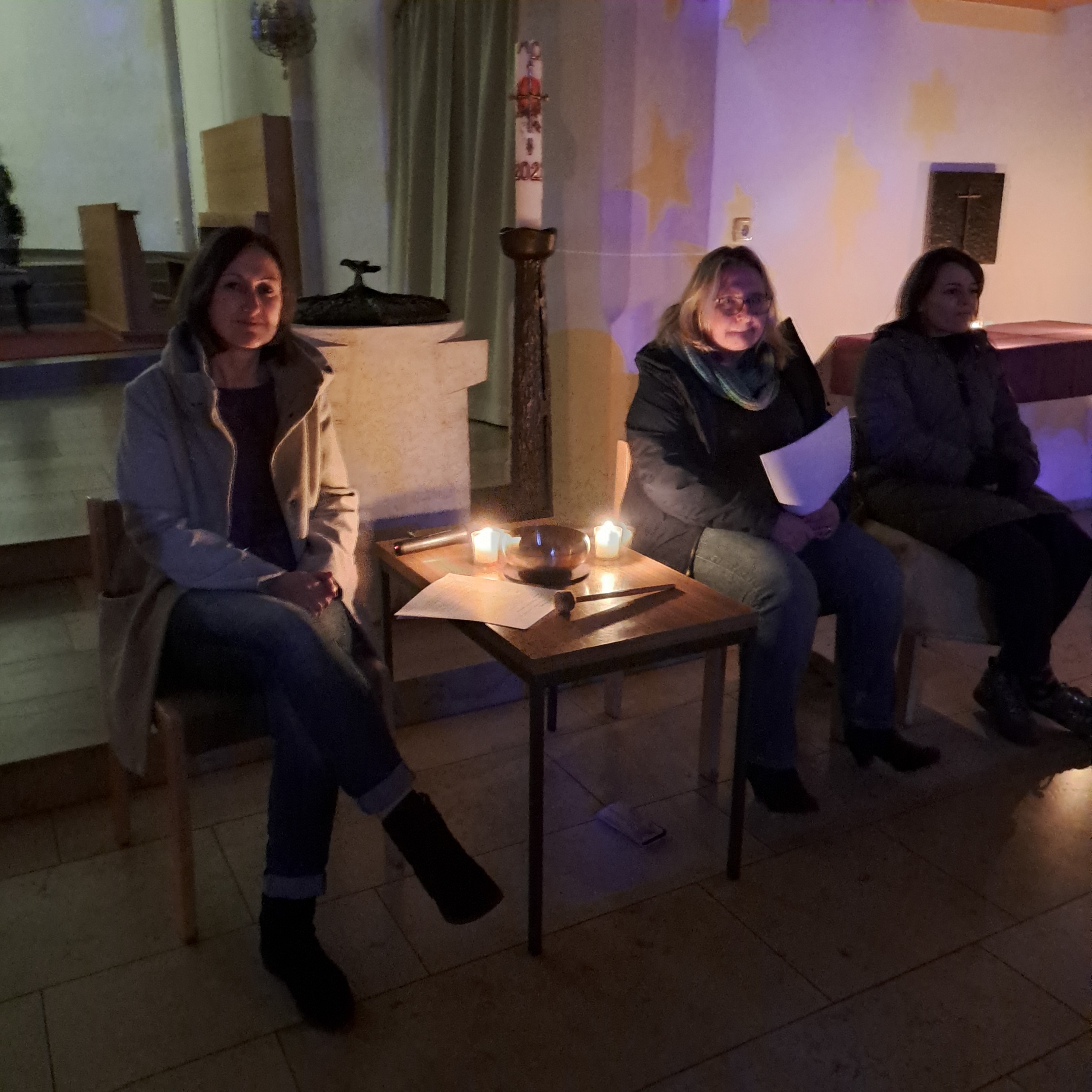 Am Donnerstag, 7. Dezember fand die Auszeit in der Adventszeit in der katholischen Pfarrkirche statt. Schon beim Öffnen der Kirchentüre konnten die Besucher meditative, beruhigende Musik hören, das Gotteshaus nur mit brennenden Kerzen auf den Bänken stimmungsvoll erleuchtet, die Sterne des Sternenhimmels zeigen sich im einen oder anderen Lichterschein. Das Thema der Auszeit: das Licht der Kerze soll leuchten! Mit einem Lied, dass auf die Sorgen eingeht, „lege deine Sorgen in deine Hand, du brauchst sie nicht länger tragen, lass sie los aus deiner Hand“, sollen die Anwesenden zum Nachdenken und Meditieren anregen, bewusst machen! Im Laufe der Auszeit immer wieder stimmungsvolle Texte, Geschichten, Gebete vorgetragen von Melanie Grasser, Kerstin Janner und Julia Böckl-Guss. Zwischen den Texten erklang ruhige Musik. Diese Ruhe und Stille, das Nachdenken war in der Pfarrkirche spürbar. Nach dem Wunsch zur gesegneten Adventszeit, „Gott stärke uns für die Zeit des Advents, dass wir Licht werden und scheine“ ging die Auszeit zu Ende. Ein zweiter Termin für die Auszeit ist am 21. Dezember um 19 Uhr.