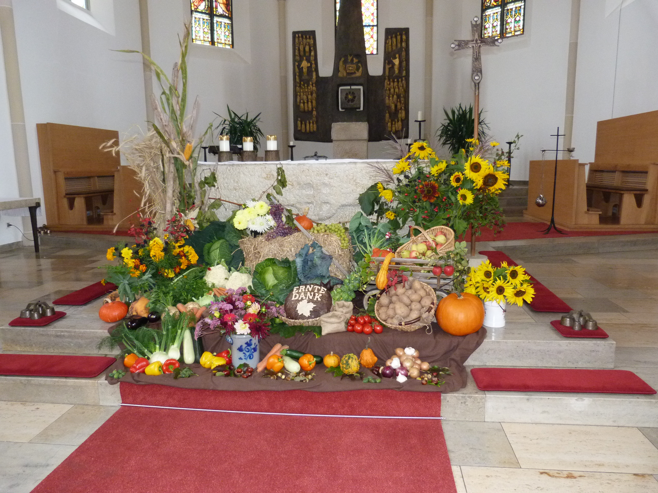 Am Sonntag, 1. Oktober feierte die katholische Pfarrgemeinde St. Peter und Paul das Erntedankfest. Ein besonderer Tag, an dem Gott für die Erträge auf Feldern und in Gärten gedankt wird. So wurde der Erntedankaltar während des Gottesdienstes geweiht und für diese Gaben Danke gesagt. Frauen der Kolpingsfamilie, organisiert durch Regina Melischko, hatten am Vortag das bunte Arrangement gestaltet.