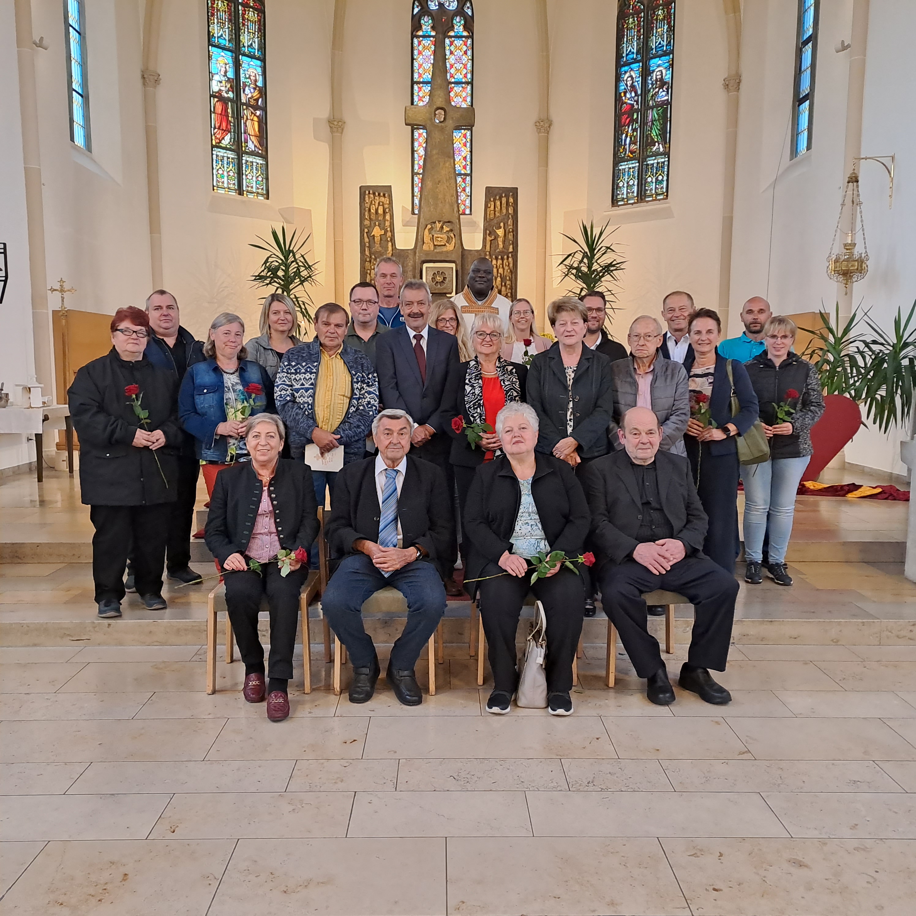 Pfarrvikar Robert Amandu durfte am Samstag 23. September 11 Jubelpaare, die vor 10, 15, 20, 25, 30, 40 und 50 Jahren Ja vor Gott zueinander gesagt haben, in der katholischen Pfarrkirche begrüßen.
