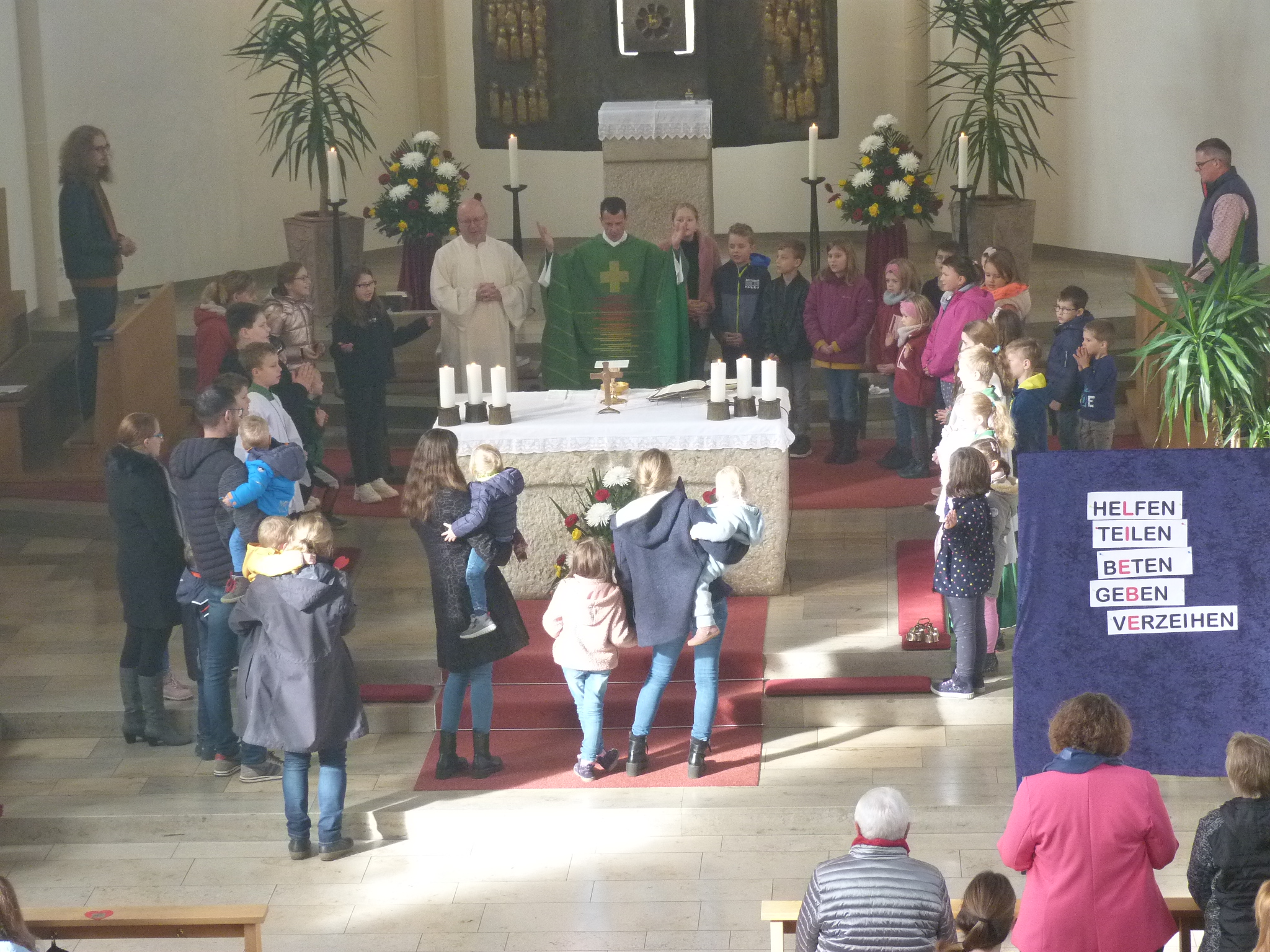 Zum Familiengottesdienst „Nur die Liebe zählt“ waren viele Eltern mit Kindern ob groß oder klein in das Gotteshaus am Sonntag 29.10. gekommen.