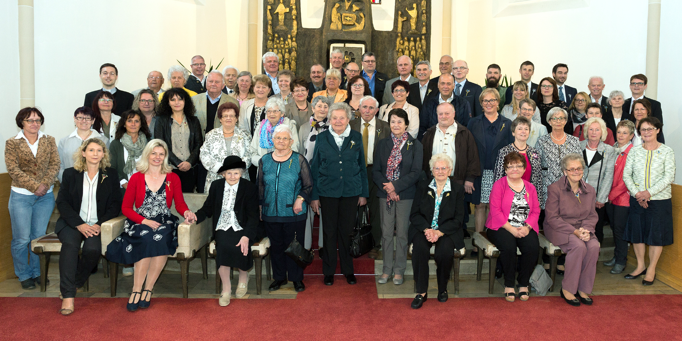 Die katholische Pfarrei St. Peter und Paul konnte am Sonntag 19. Mai mit 64 Frauen und Männern, die vor 25, 40, 50, 60, 70 bis 80 Jahren die Erstkommunion empfangen haben. Luise Wiesneth und Irene Spachtholz konnten vor 80 Jahren die Erste Heilige Kommunion empfangen. Nach dem Treffen im katholischen Pfarrheim, wo einige Gespräche mit kurzen Erinnerungen an frühere Zeiten mit manchen lustigen Anekdoten zu hören waren, erfolgte der Einzug mit Pfarrer Stephan Rödl in das Gotteshaus. "Genau vier Wochen nach Ostern treffen wir uns hier in der Pfarrkirche zum Gottesdienst. Wir werden daran erinnert, was der Auftrag für uns Christen ist.", so der Pfarrer. In seiner Predigt schildert der Geistliche eine Situation, die jedem bekannt sein wird. Es gibt Dinge, die wir erkennen, die oft so oder ähnlich schon einmal da waren. Wir erinnern uns an Situationen, wie zum Beispiel die Erstkommunion, wir können das Erlebte wieder in die Gegenwart zurückholen. Im weitestem Sinne auch den Glauben an Jesus Christus, der uns durch die Taufe, Kommunion und Firmung erinnert. Der Geistliche bat die Jubilare ein Zeugnis für den Glauben zu geben. Mit dem erneuten Taufgelübte und dem Lied "Fest soll mein Taufbund immer stehen" zeigten die Jubilare den Halt und die Stärke für den Glauben an Jesus Christus. Einen festlichen Rahmen er hielt die Eucharistie durch die musikalische Mitgestaltung der Blaskapelle Etzenricht und Ludwig Reichl an der Orgel. Nach dem gemeinsamen Erinnerungsfoto konnte gemeinsam in der Mehrzweckhalle zu Mittag gegessen werden. Die eine oder andere Erinnerung von damals sorgte für Gesprächsstoff.