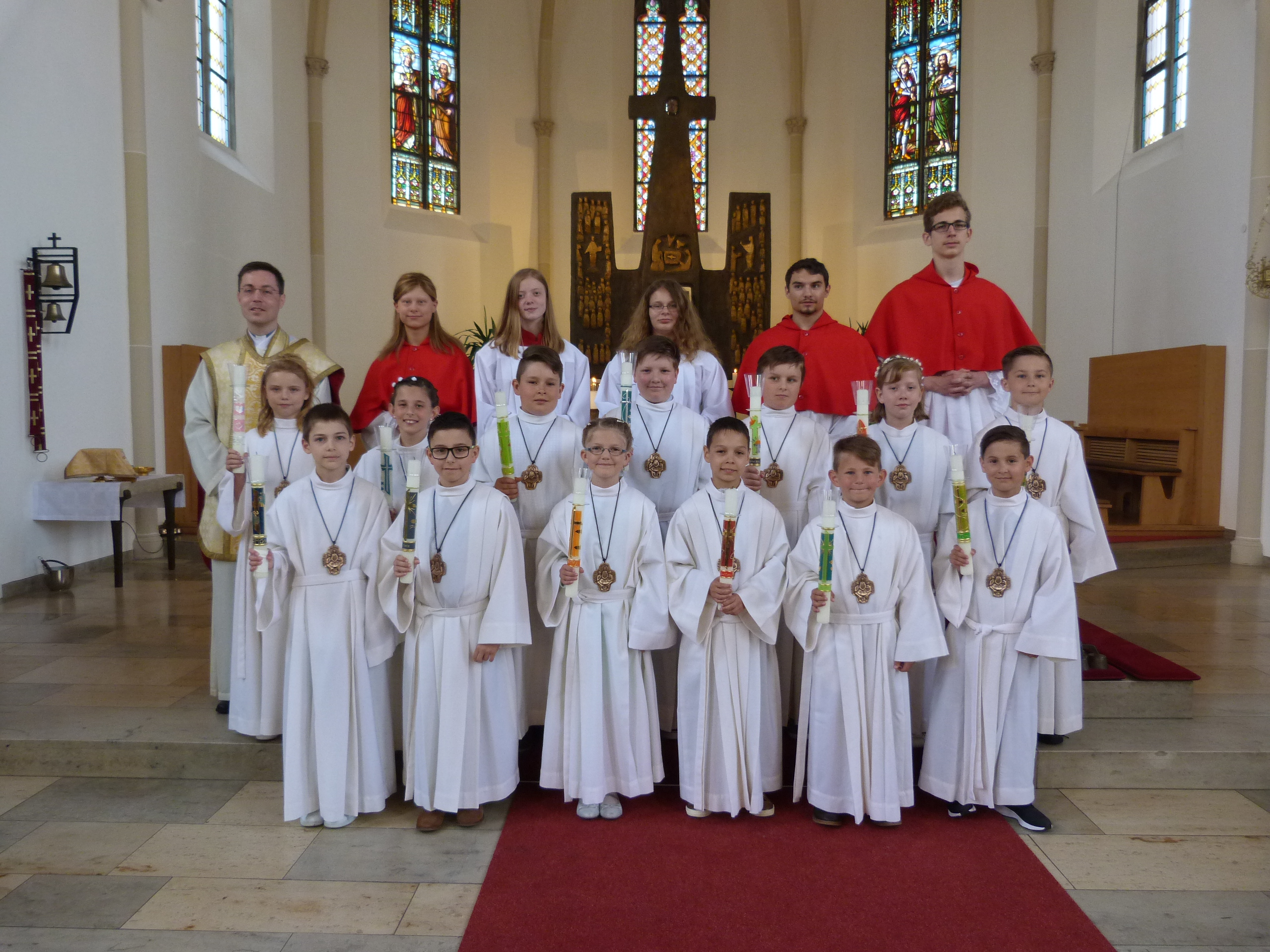 Vier Mädchen und neun Jungen empfingen am Sonntag in der katholischen Pfarrkirche St. Peter und Paul zum ersten Mal den Leib Christi. Lange hatten sich die 13 Kinder auf ihren großen Tag vorbereitet. "Ich freue mich, dass wir die Messe feiern", so Pfarrer Stephan Rödl. Die Begrüßung der Eltern, der ganzen Pfarrgemeinde übernahmen zwei Kommunionkinder. "Wir freuen uns, dass wir Jesus näher kennenlernen können und das erste Mal die Kommunion empfangen." Pfarrer Rödl versuchte in seiner Predigt den Gottesdienstbesuchern, vor allem den heutigen Erstkommunionkindern das Evangelium des Hirten mit seinen Schafen näherzubringen. Der Schäfer kennt seine Tiere beim Namen, er ruft sie, sie folgen ihm, einem Fremden werden sie nicht folgen, so der Geistliche. So weiter: Der Hirte, er meint es gut mit seinen Schafen, so wie Jesus es gut mit uns meint. Die Erneuerung des Taufversprechens im Verlauf des Gottesdienstes, die Gabenbereitung durch die Kinder und ihre erste Heilige Kommunion zeigten die Verbundenheit mit Jesus Christus. Zum Abschluss segnete Pfarrer Rödl religiöse Gegenstände, wie Rosenkranz oder Kreuze. Musikalisch mitgestaltet wurde der Festgottesdienst von den Kolping-Singers unter Leistung von Gisela Reil.