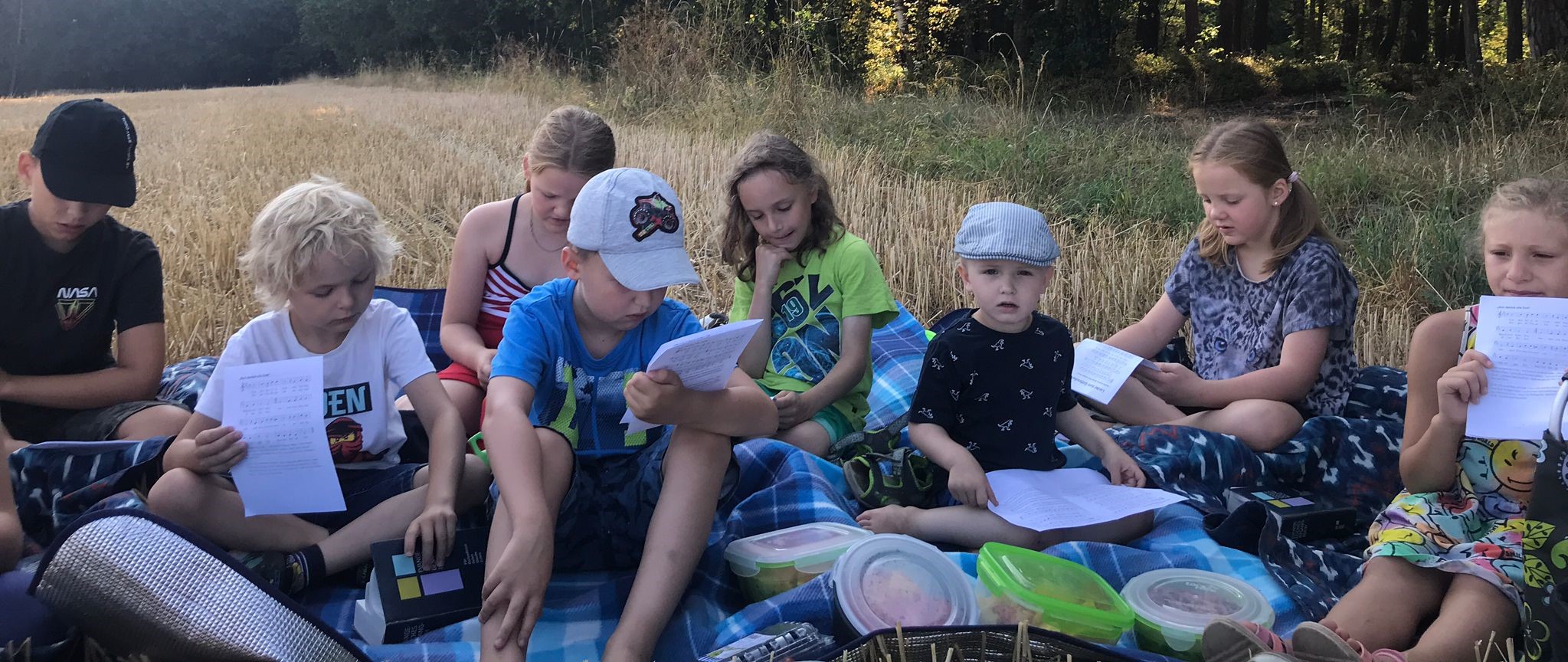 Am vorletzten Sonntag im Juli gestaltete das Kindergottesdienstteam für die Kinder eine ganz besondere Zusammenkunft, um sich in die Sommerpause zu verabschieden. Mit Decken, Leckereien und Getränken ausgerüstet spazierten sie zum Lindach.