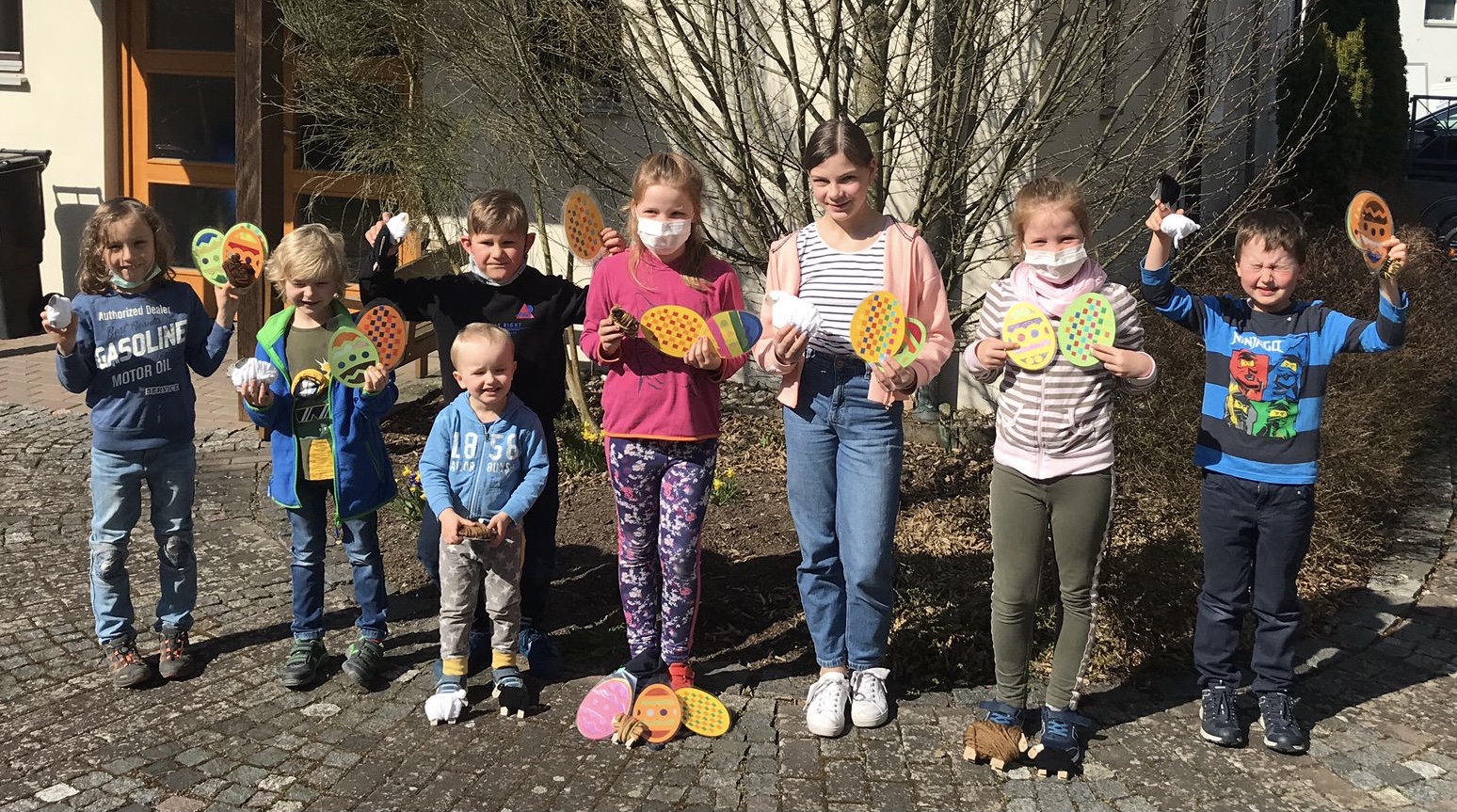 Letztes Jahr bastelten die Kinder zuhause um den Strauch im Kirchhof österlich zu schmücken. Dieses Jahr konnte das Kigo-Team mit den Kindern endlich wieder gemeinsam basteln. An einem Sonntagvormittag trafen sich die Kinder mit den Kindergottesdienst Helfern und werkelten für 2 ½ Stunden an österlicher Deko. Die Kinder im Alter von 3 bis 10 Jahren waren mit Eifer bei der Sache. Es wurden Schafe gebastelt, Eier mit Papierstreifen geflochten und mit Transparentpapier beklebt. Zuhause durften die Kinder noch Holz-Eier bemalen und bunt gestalten. Die fertigen Kunstwerke wurden am Karsamstag von den Kindern im Innenraum der evangelischen Kirche aufgehängt und schmücken diese bis Pfingsten.