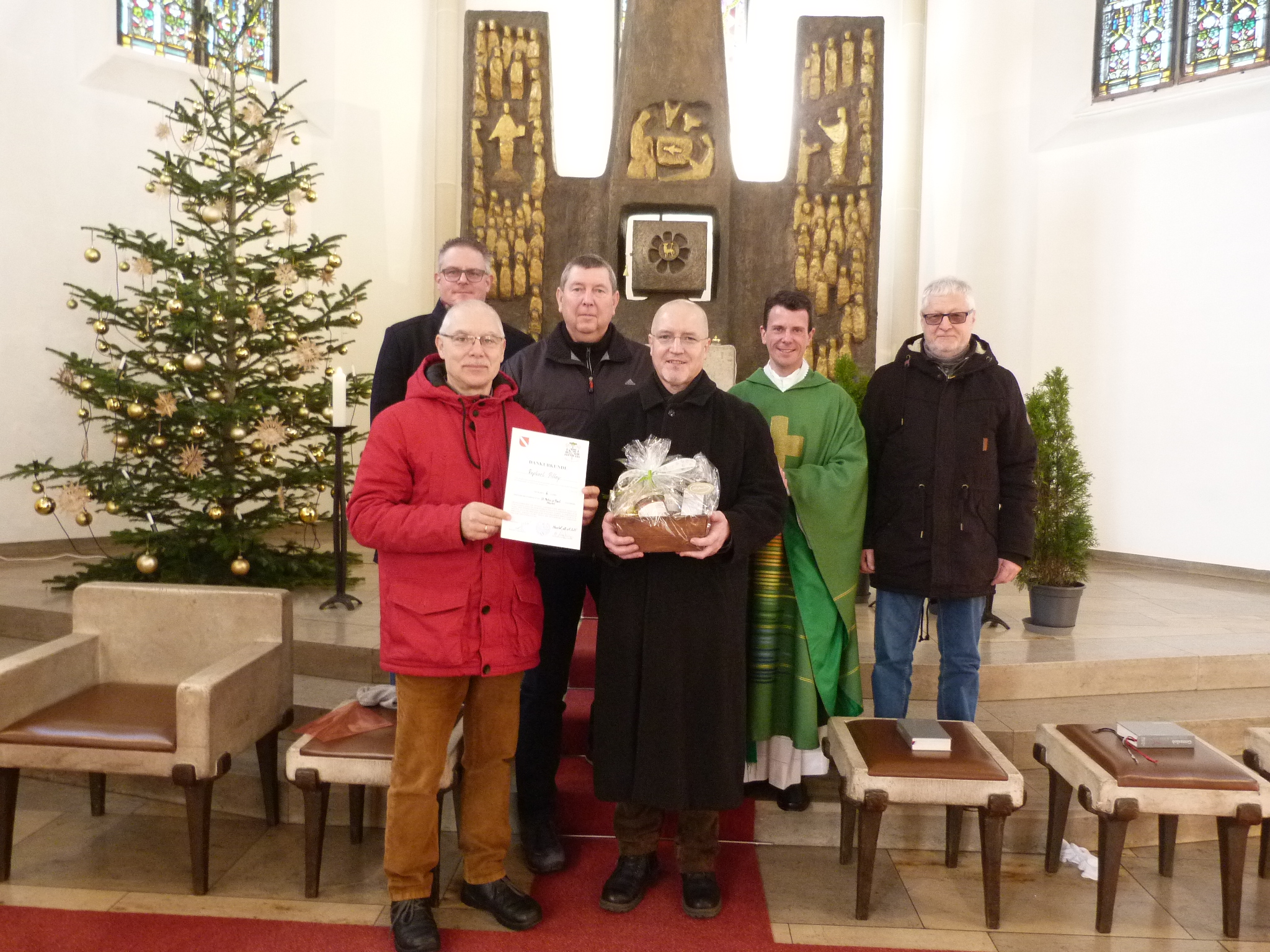 Am Ende der Sonntagsmesse am 19. Januar wurde Raphael Pillny durch Pfarrer Thomas Kohlhepp für seinen sechsjährigen Dienst in der Kirchenverwaltung der katholischen Pfarrgemeinde ausgezeichnet und verabschiedet. Im November wurde die Kirchenverwaltung neu gewählt. Raphael Pillny stellte sich nicht mehr zur Wahl. „Es gibt in der Pfarrgemeinde verschiedene Aufgaben, dass die Botschaft Jesu gelebt werden kann“, so der Geistliche. Wir nutzen nun am Ende des Gottesdienstes um Danke zu sagen für das Engagement in den letzten 6 Jahren, für die Tätigkeit als Schriftführer der Kirchenverwaltung, auch für die Nachbereitung der Protokolle usw. In der Urkunde, die Pfarrer Kohlhepp der Pfarrgemeinde vorlas, konnte man hören: Diözesanbischof Dr. Rudolf Voderholzer möchte dafür danken, dass Herr Pillny durch den Einsatz in der Pfarrei zum Wohl der Pfarrgemeinde beigetragen habe. Auch die Glückwünsche der Bischöflichen Finanzkammer wurden durch den Geistlichen übermittelt.