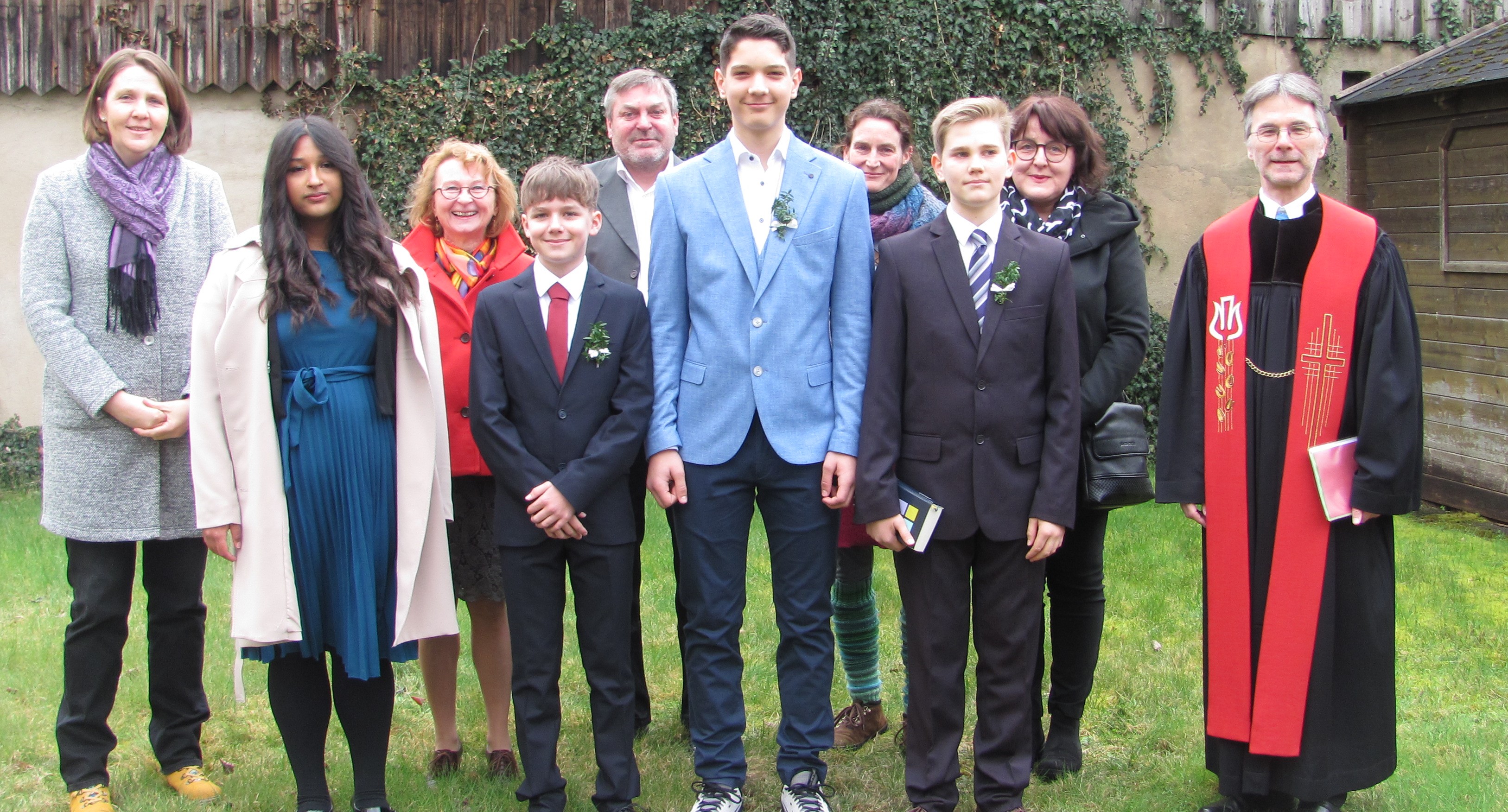 Am Palmsonntag feierten Olivia Abreu, Jonas Marksteiner, Luca Voigt und Felix Janner das Fest der Konfirmation. Mit den Mitgliedern des Kirchenvorstandes und Pfarrer Andreas Ruhs zogen die Jugendlichen zur Kirche. Den Festgottesdienst umrahmte Ulrike Wiesner an der Orgel und der Posaunenchor unter Leitung von Veronika Weber begleitete die Lieder. Pfarrer Andreas Ruhs erklärte: