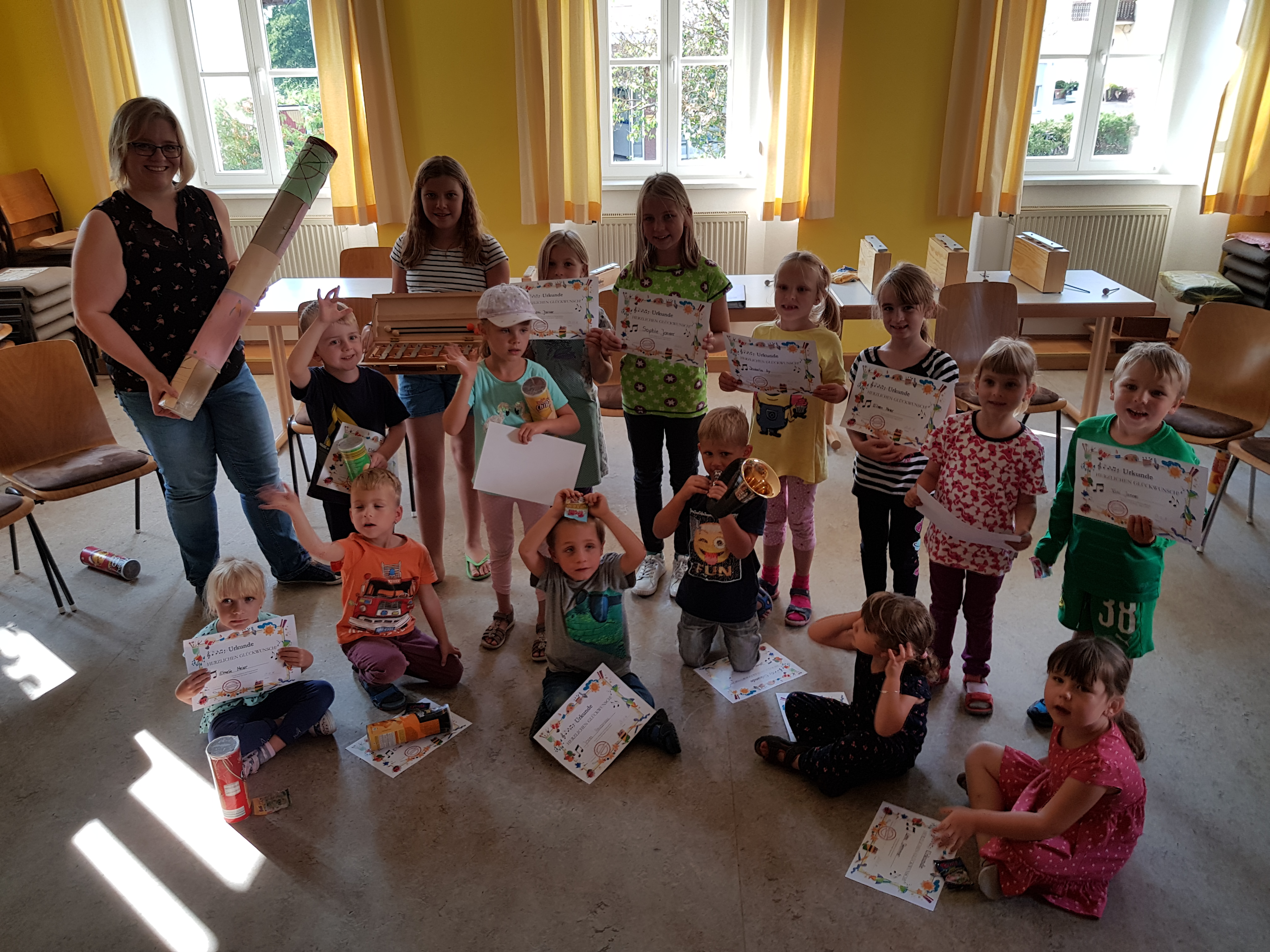 Unter dem Motto: „Mach doch mal Musik“ waren alle Kinder ab drei Jahren ins evangelische Gemeindehaus eingeladen. Kathy Janner, Susanne Hausmann, Jutta und Marlene Lippik und Doris Grill, vom evangelischen Kinderchor und Posaunenchor organisierten den Nachmittag und wurden noch von einigen Mamas unterstützt. Nach einem gemeinsam gesungenen Kanon wurde eine Einsinggeschichte erzählt und die Kinder dann in zwei Gruppen aufgeteilt. Die Jüngeren haben zwei große Regenmacher gebastelt, dabei wurde mit Hammer und Nägeln und verschiedenen Füllmaterialien gearbeitet und die Rohre wurden dann bemalt. Jedes Kind durfte für sich noch einen kleinen Regenmacher basteln und mit heimnehmen. Die größeren Kinder konnten verschiedene Blechinstrumente, Klangbausteine und Flöten ausprobieren. Mit Gartenschlauch, Wassereimer und Mundstück wurde am Ansatz gefeilt und es fanden sich überraschenderweise einige Talente. Am Schluss wurde noch ein gemeinsam einstudiertes Lied gesungen das mit verschiedenen Instrumenten, Regenmacher und Rasseln begleitet wurde. Am Ende gab es noch eine Teilnehmerurkunde und Gummibärchen. Ziel war es Kinder für das Singen und Spielen in den Chören und im Posaunenchor zu begeistern und zu gewinnen. Jedes Kind ist grundsätzlich eingeladen in den Kinderchor zu schnuppern, dieser probt immer am Freitagnachmittag im evangelischen Gemeindehaus. Ansprechpartnerin ist Susanne Hausmann, auch wer Lust hat im Posaunenchor ein Blechblasinstrument zu erlernen darf sich gerne mit ihr in Verbindung setzen.