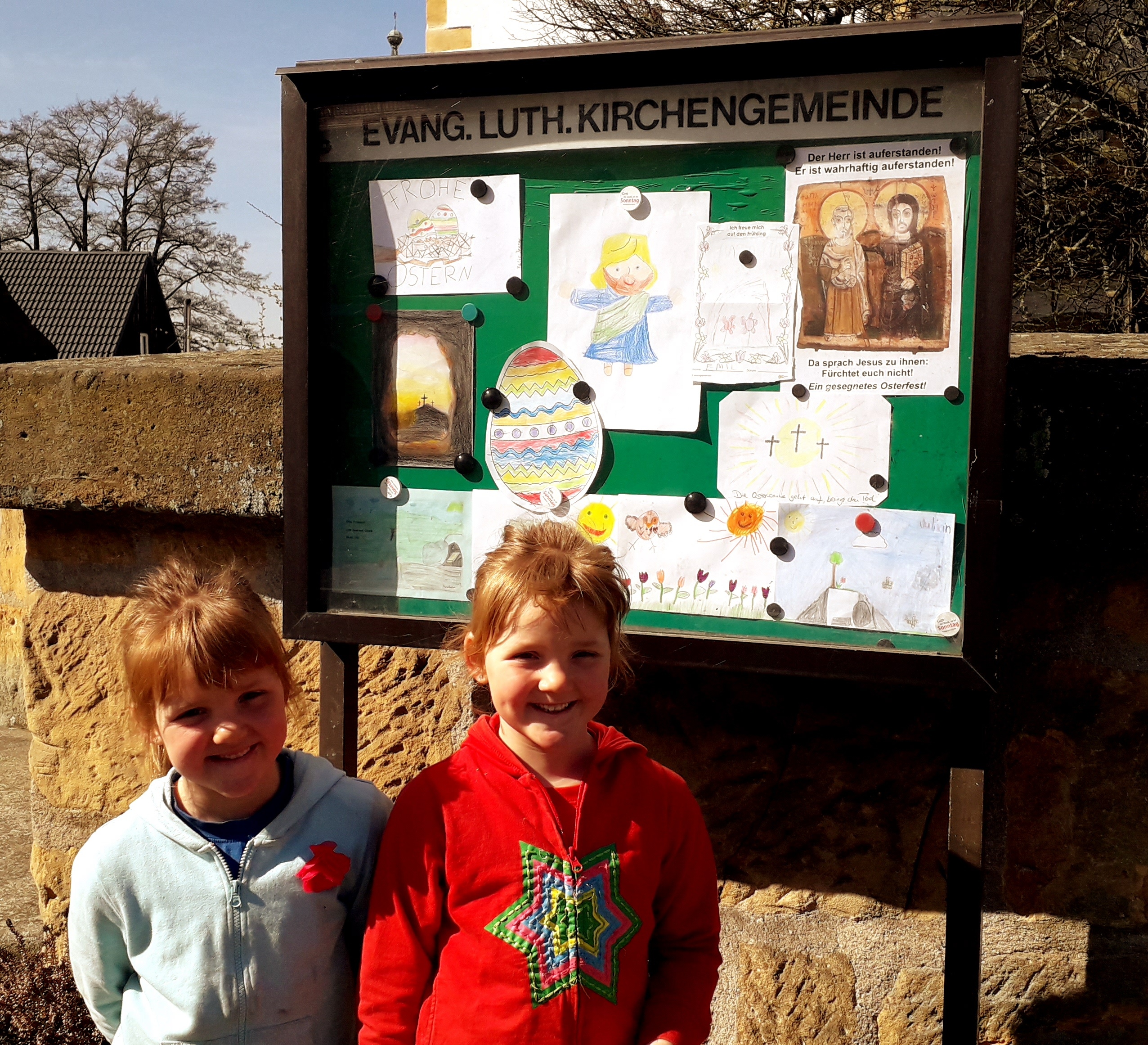 Um trotz der Ausgangsbeschränkungen ein wenig Gemeinschaft zu erfahren haben die Kinder des evang. Kindergottesdienstes Bilder gestaltet. Diese wurden im Schaukasten bei der Kirche dekoriert und erfreuen hoffentlich den einen oder anderen Spaziergänger an Ostern und die Tage danach. Jedes Kind konnte ganz individuell malen, was es mit der Osterzeit verbindet. Entstanden sind farbenfrohe Kunstwerke, die dieses mal alleine zuhause gestaltet wurden - aber hoffentlich bald bei einem gemeinsam Kindergottesdienst betrachtet werden können.