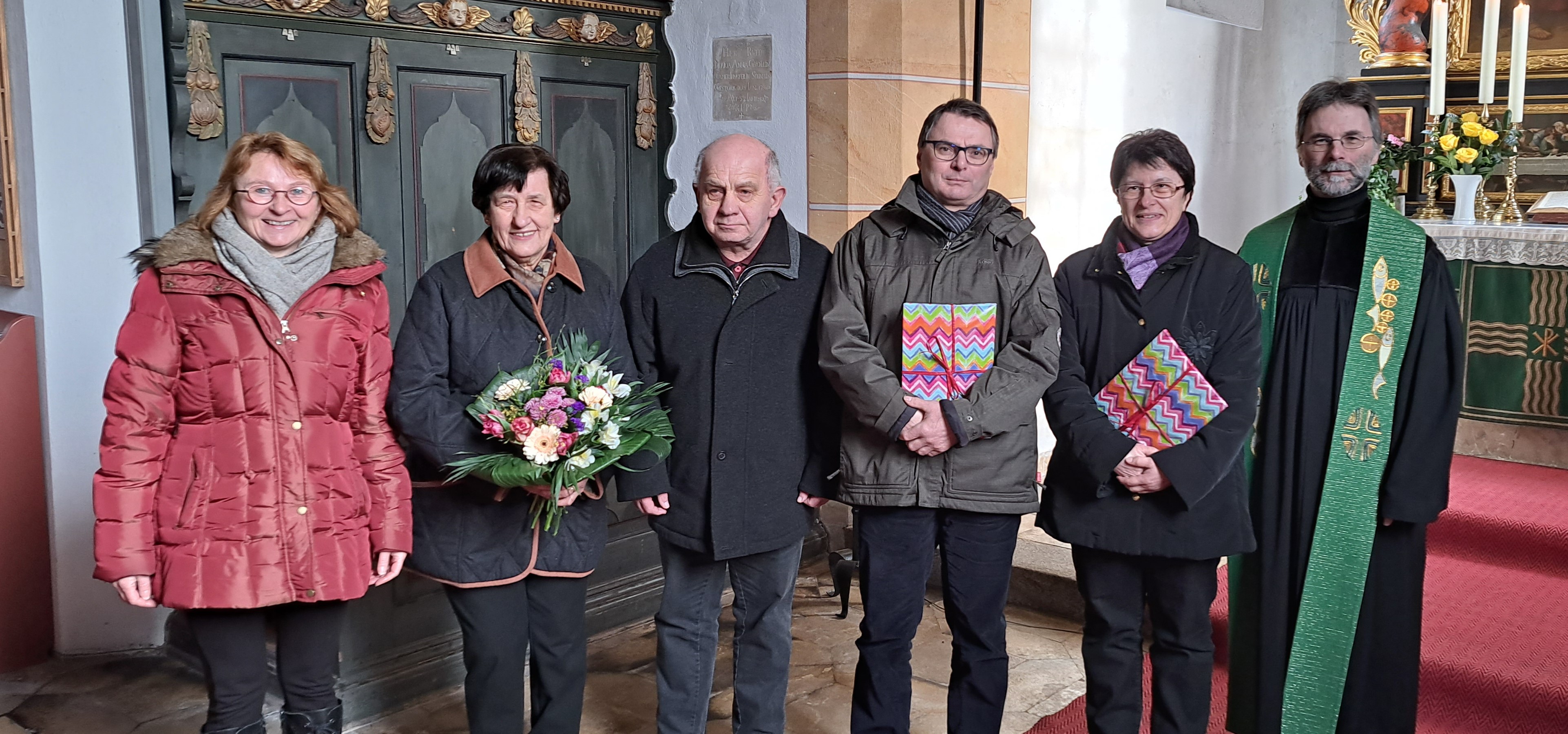 Im Rahmen des Gottesdienstes dankte Pfarrer Andreas Ruhs Emmi und Otto Janner für alle ihre Tätigkeiten und Christine Poß sowie Helmut Hackbarth für ihre Bereitschaft, diese zu übernehmen.