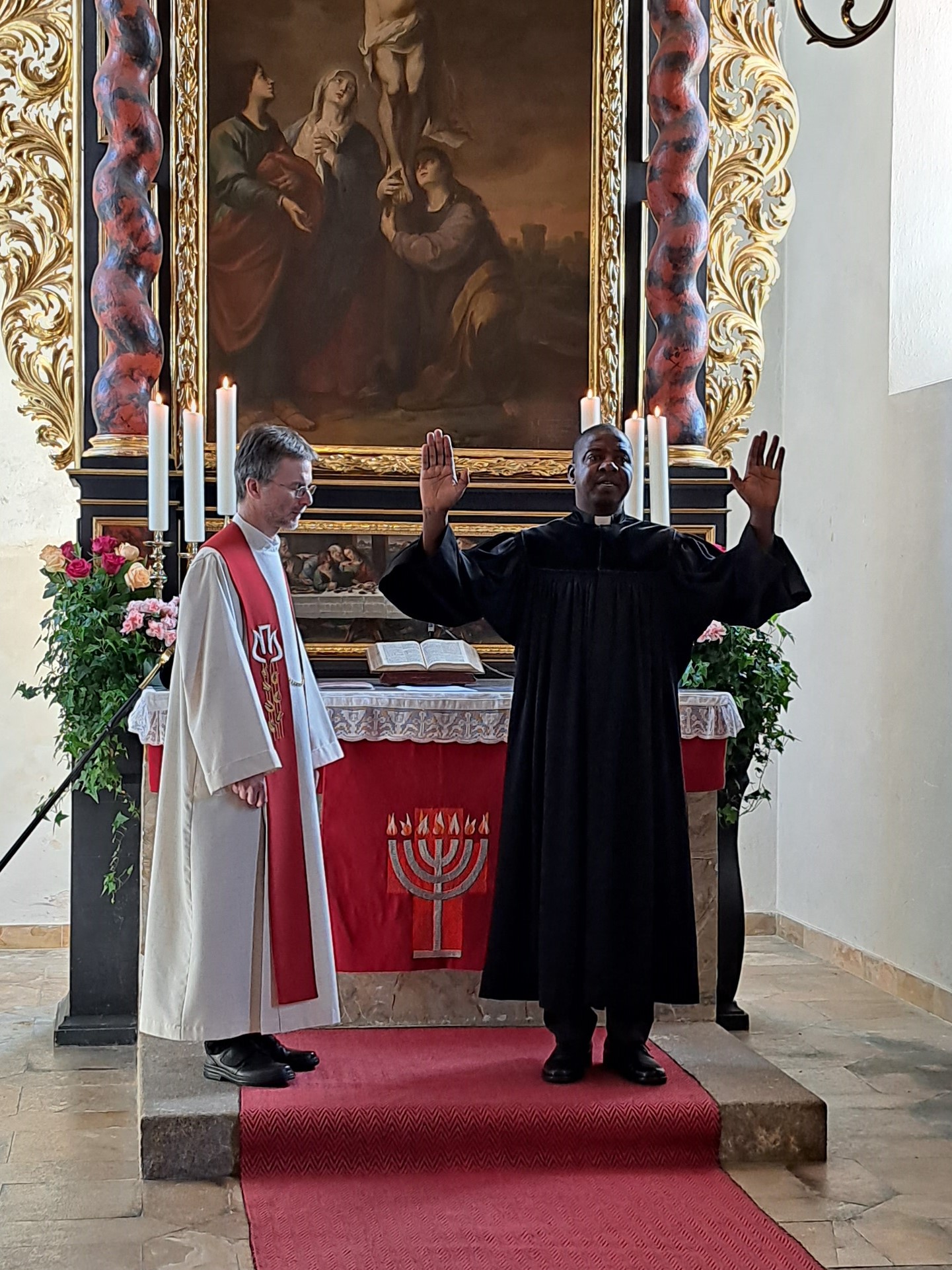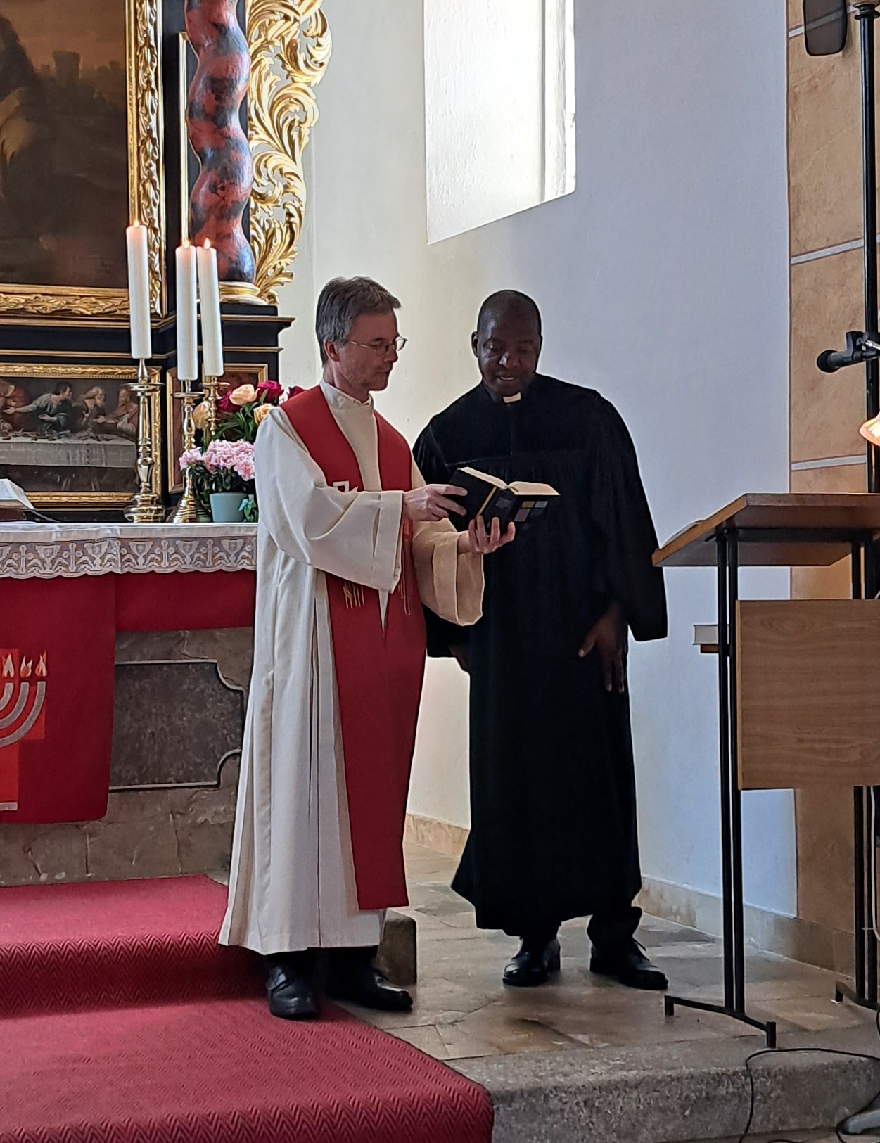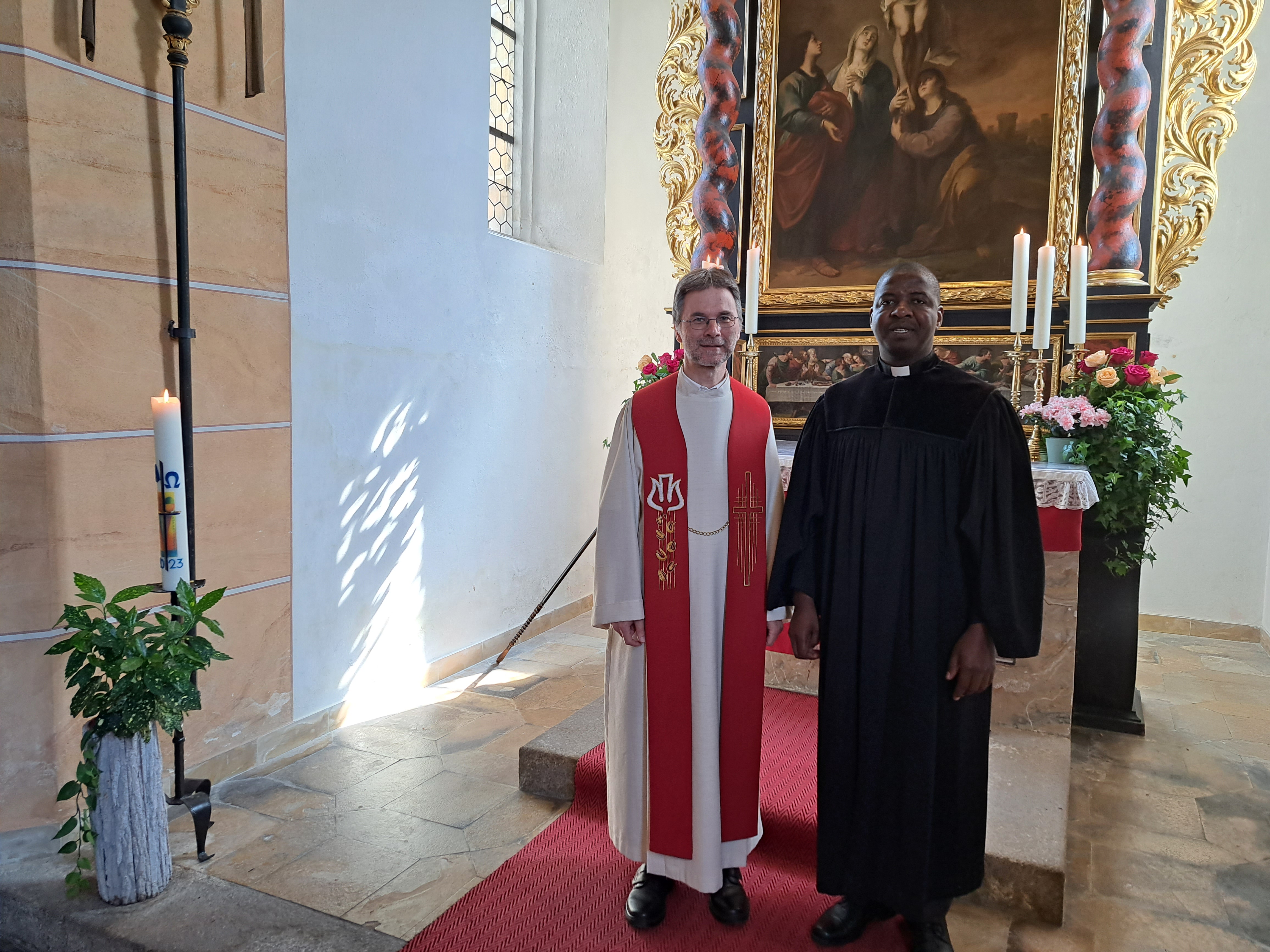 Am Pfingstsonntag feierte die Evang.-Luth. Kirchengemeinde ihren Gottesdienst mit Rev. John Materu, dem stellvertretenden Leiter des Evang.-Luth. Bible and Theological College Mwika, Tansania. Er überbrachte Grüße und Dank für die langjährige Hilfe des Colleges durch die Gemeinden des Dekanats Weiden. „Eure Unterstützung unseres Colleges und der Studentinnen und Studenten ist mit Sicherheit das Werk des Heiligen Geistes“, sagte er in seiner Predigt. Weiter betonte er die Verbundenheit zwischen den Christen in Weiden und in Mwika: „Auch wenn wir mehr 6.300 Kilometer von Weiden entfernt leben, sind wir dennoch vereint im Heiligen Geist.“