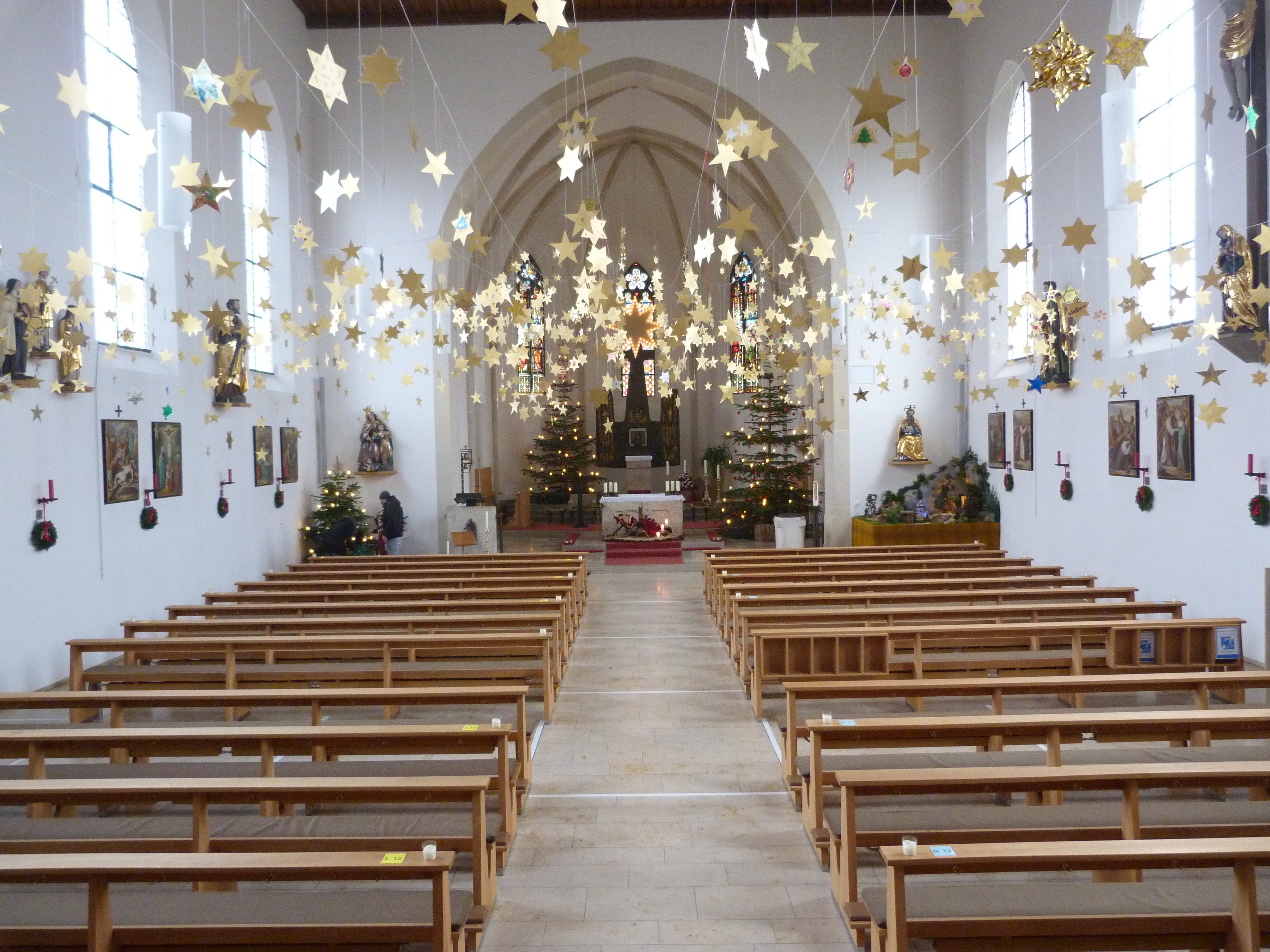 „Weihnachten in diesem Jahr ist anders“, so Pfarrer Thomas Kohlhepp. Die katholische Pfarrkirche in Mantel spiegelt das im Miteinander wieder. Der Geistliche forderte in der Adventszeit die Pfarrgemeinde auf Sterne zu basteln, sie zu verzieren und mit Namen zu versehen. Vorlagen dazu lagen in der Pfarrkirche auf. Dort wurden alle Sterne in einem Korb gesammelt. Die Pfarreiengemeinschaft Mantel-Neunkirchen bastelt, unterstützt von den beiden Kindergärten und der Grundschule Mantel kamen 1200 Sterne zusammen. Diese wurden vom Pfarrgemeinderat zu Mobiles gebunden und an Strängen im Kirchenschiff in stundenlanger Arbeit verteilt. „Dieser Sternenhimmel spiegelt unsere Pfarreiengemeinschaft und die Zusammengehörigkeit mit der katholischen Kirche wieder“, so Pfarrer Kohlhepp. Während der Gottesdienste blitzen einzelne von ihnen im Lichterschein auf. Ein imposantes Schauspiel für den einzelnen Betrachter. Die Sterne führen hin zum Altarbereich, zum großen beleuchteten Stern, zur Krippe, zum Jesukind. Der Sternenhimmel lädt den Einen oder Anderen ein kurz zum Gebet in der Kirche zu verweilen und den Sternenhimmel in seiner ganzen Pracht wirken zu lassen. Einige Kinder suchten auch „ihren Stern“, den sie gebastelt hatten.