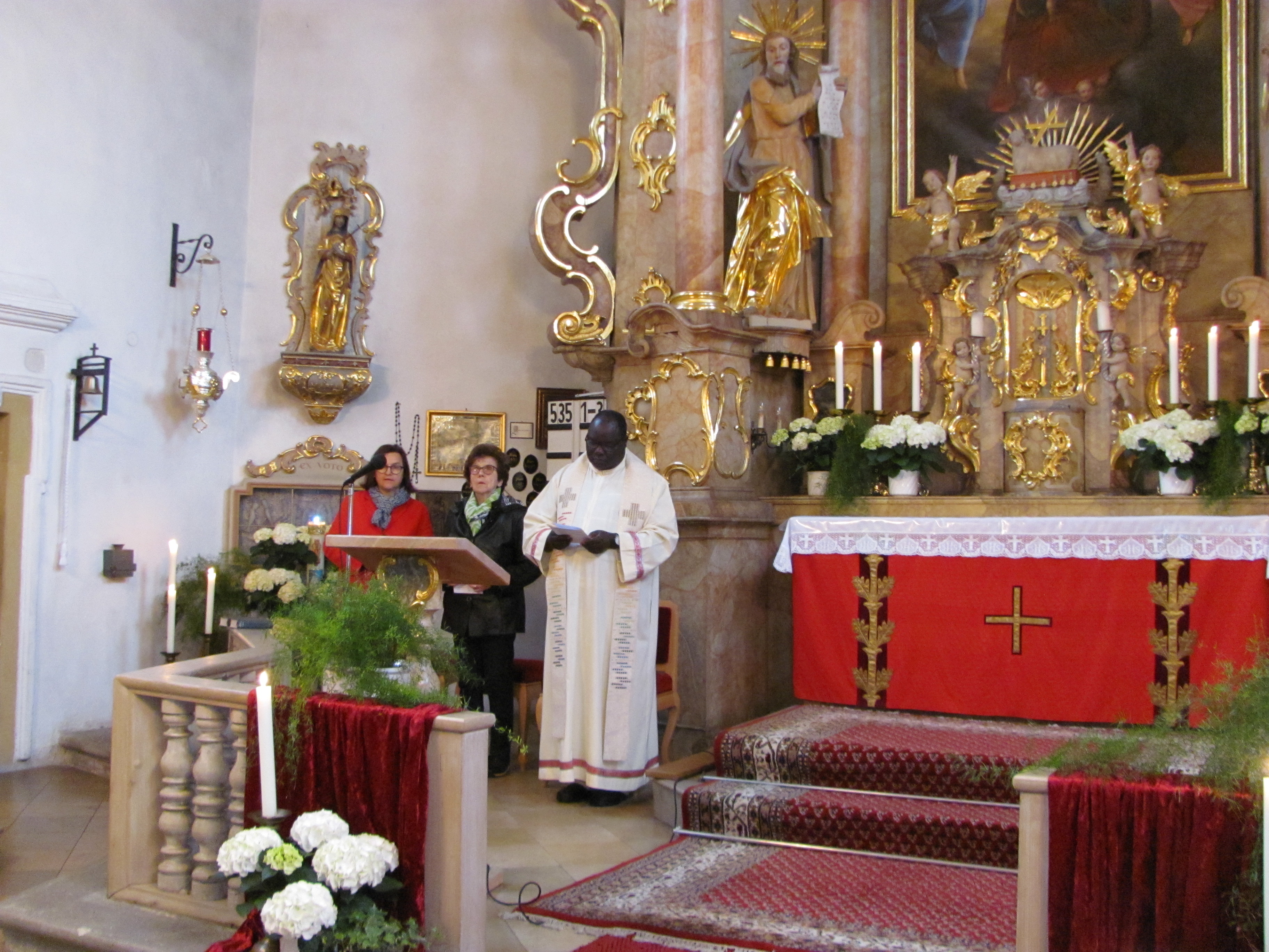 Die erste Maiandacht wurde am 1. Mai sehr stimmungsvoll in St. Moritz gefeiert und organisiert vom Förderverein. Texte lasen Maria Erling und Renate Puckschamel zusammen mit Pfarrvikar Robert Amandu. Thema war: Maria, unsere Vertraute und Gefährtin. Es ging um das Treffen von Maria mit ihrer Base Elisabeth. Maria und Elisabeth, zwei Frauen in ähnlicher und doch ganz unterschiedlicher Situation. Auf der Suche nach uns selbst sind auch wir auf Menschen angewiesen die mit uns Freude, Ärger Leid und Hoffnung teilen. Maria weiß um die Nähe Gottes in ihrem persönlichen Leben. Auch wir wissen uns in der Nähe Gottes geborgen. Nach dem Jesus-Gebet gab es die Fürbitten. Im Schlussgebet kam die Erkenntnis, dass uns die Geschichte Marias die Erfahrung schenkt, dass Gott uns kennt und liebt und auch unser Weg ein Weg des Glaubens, der Hoffnung, der Brüderlichkeit und Schwesterlichkeit ist. Die Kolping-Singers gestalteten die Maiandacht mit Liedern wie „Magnifikat“, „Du bist mein Zukunftsort“ „Dich Gott will ich loben“ oder „Maria dir vertrauen wird“. Die Lieder wurden teilweise mit Hackbrett und Gitarre begleitet. Besonders zu Herzen ging: „Mutter Maria nimm mich an die Hand“ nach der Titelmelodie von Drei Haselnüsse für Aschenbrödel. Nach dem Segen durch den Pfarrvikar spazieren dir Gläubigen an einem wunderschönen Frühlingsabend nach Hause.