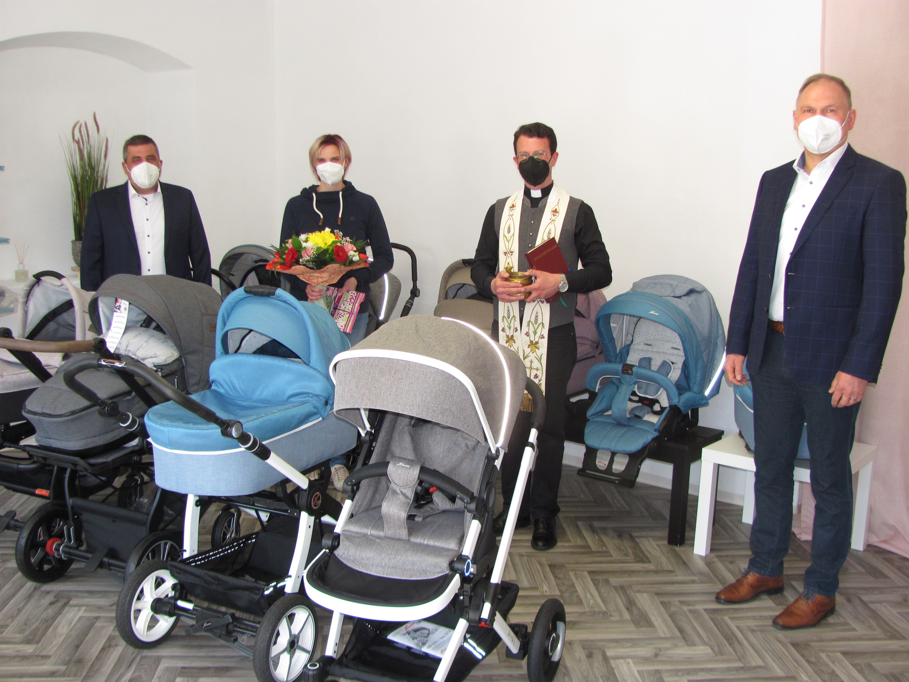 Ihre Leidenschaft für Produkte rund um Babyzubehör packte die 35-jährige Mantlerin Nicole Fichtl (Mutter von drei Kindern) schon bei ihrem ersten Kind vor 13 Jahren und flammte mit dem Nachzügler wieder auf. Gestärkt durch ihren Mann und Freunde eröffnete sie jetzt in Mantel am Marktplatz 7 einen Laden „Rundum“. Es gibt Kinderwagen, neu oder gebraucht, Zubehör, Wickeltaschen, Babynestchen, Autositze und vieles mehr. Die frischgebackene Geschäftsinhaberin ist von Beruf Verkäuferin. Sie bietet ihren Kunden eine kompetente fachliche und persönliche Beratung. Sie setzt auf bekannte Hersteller der Kinderwägen aus Bayern und so kauft man bei ihr zum Großteil lokale Produkte. Nicole Fichtl legt vor allem Wert darauf, dass die Produkte die sie verkauft schadstofffrei sind. Bürgermeister Richard Kammerer war mit einem Blumenstrauß und einem Manteler Wappen einen Tag vor der Eröffnung gekommen. „In einer Zeit, wo viele Geschäfte schließen, ist es umso schöner, wenn jemand etwas wagt und gerade hier in Mantel ein Geschäft eröffnet“, so der Rathauschef. Der Trend aufs Land ist spürbar. „In Mantel gibt es vieles, aber ein Geschäft für Kinderwagen begrüßen wir besonders“ so Kammerer. Pfarrer Thomas Kohlhepp wünschte den Räumen, der Inhaberin und allen die das Geschäft besuchen Glück und Erfolg und dass sie verantwortlich ihre Aufgaben erfüllen, und segnete die Räume. Hausherr Siegfried Janner erklärte, dass dieses Haus schon immer ein Geschäftshaus war und es schön ist dass es so bleibt. „Früher wurden hier Waagen verkauft und jetzt eben Kinderwagen“ bemerkte er scherzhaft. Das Geschäft ist Samstag von 10 Uhr bis 13 Uhr geöffnet und Nicole Fichtl steht ihren Kunden jederzeit nach telefonischer Terminvereinbarung zur Verfügung. Sie ist erreichbar unter 01716103089. Da es in Weiden und Umgebung eigentlich wenig Spezialisten für Kinderwagen gibt, blickt Nicole Fichtl zuversichtlich in ihre geschäftliche Zukunft. Bürgermeister Richard Kammerer hoffte, dass die Zahl der Geburten weiter steigen nicht zuletzt durch die Corona-Zeit. „Wir hatten in Mantel durchschnittlich im Jahr 15 Neugeborene und im vorigen Corona-Jahr waren es 25“, so der Rathauschef.