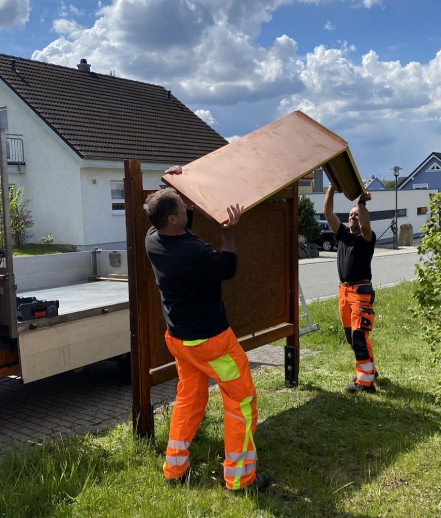 Viele Jahre taten die Anschlagtafeln in der Winteräckersiedlung, in der Weidener Straße oder in der Etzenrichter Straße ihren Dienst. Aber da sie aus Holz waren hat der Zahn der Zeit kräftig genagt. Die veranstaltungslose Zeit, in der die Tafeln nicht gebraucht wurden, nutzten die Mitarbeiter des Bauhofes und bauten drei komplett neue Tafeln. Vor kurzem wurden sie wieder an den alten Standorten aufgestellt. Bürgermeister Richard Kammerer bedankte sich bei seinen Leuten und hofft, dass bald wieder viele Plakate dort hängen die auf interessante Veranstaltungen hinweisen.