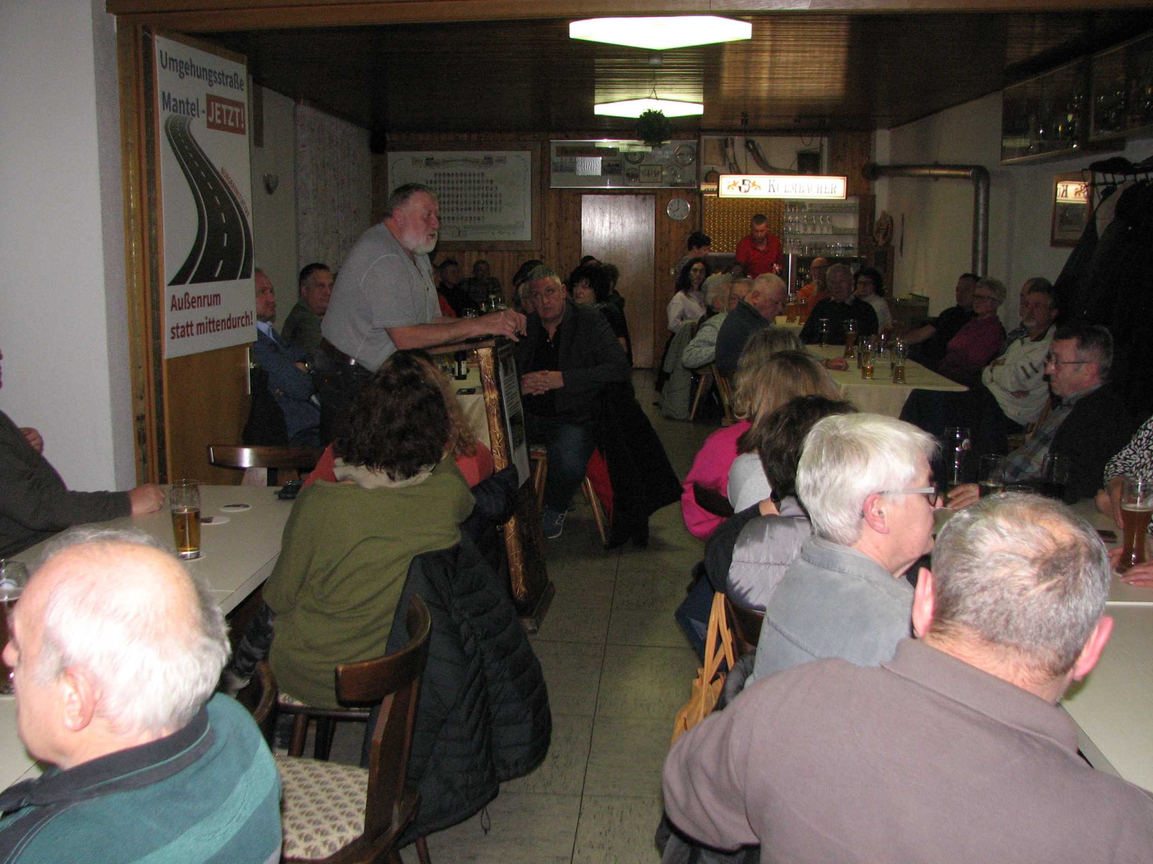 Angespannt lauschten die Besucher den Worten von Sprecher Reinhold Meier beim dritten Info-Abend der Bürgerinitiative „Umgehungsstraße Mantel – jetzt!“. Noch gibt es kein grünes Licht für die geplante Baumaßnahme.