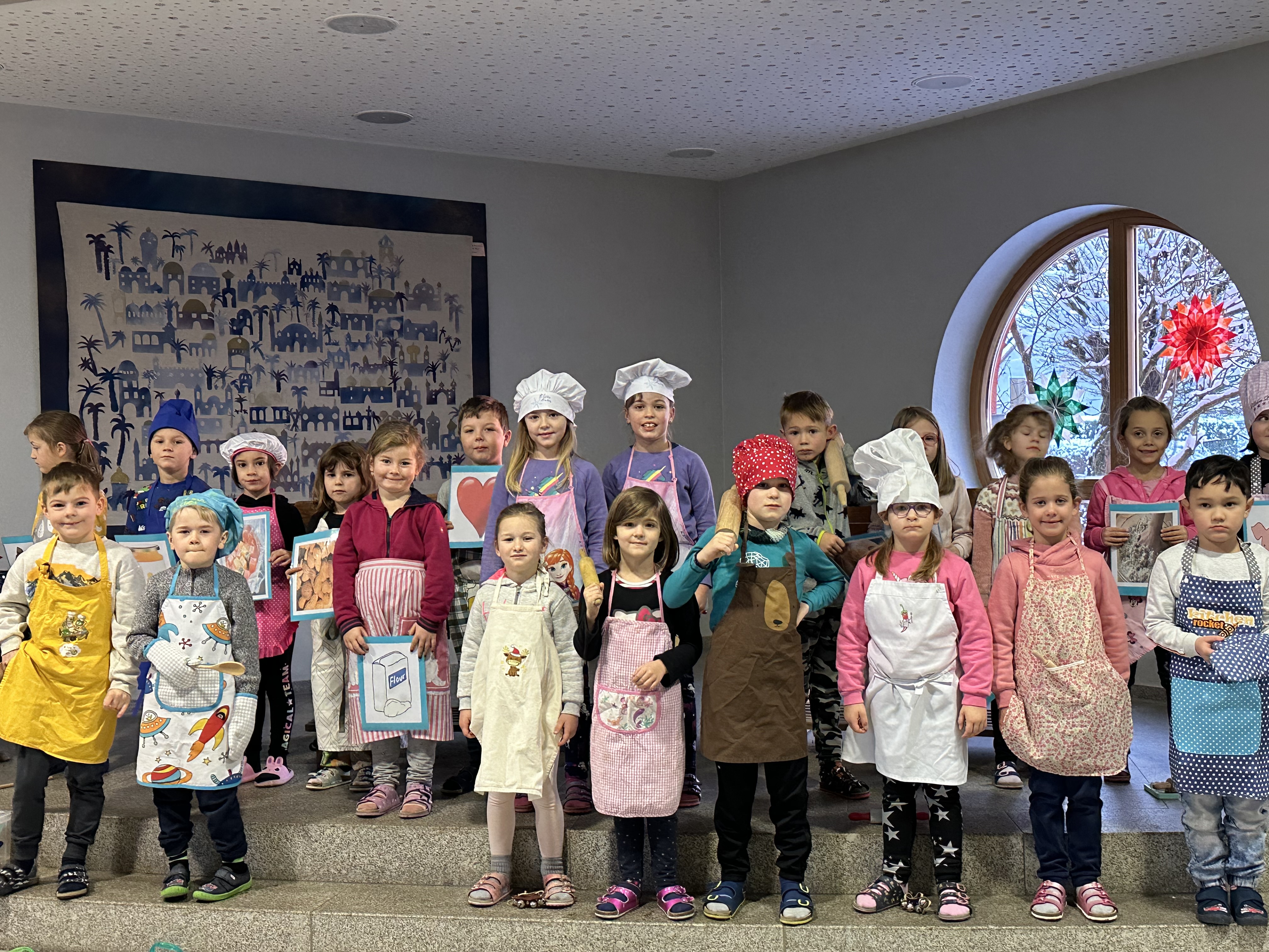 tragen. Die Kinder der ersten Klasse hatten das Lied „In der Weihnachtsbäckerei“ einstudiert und