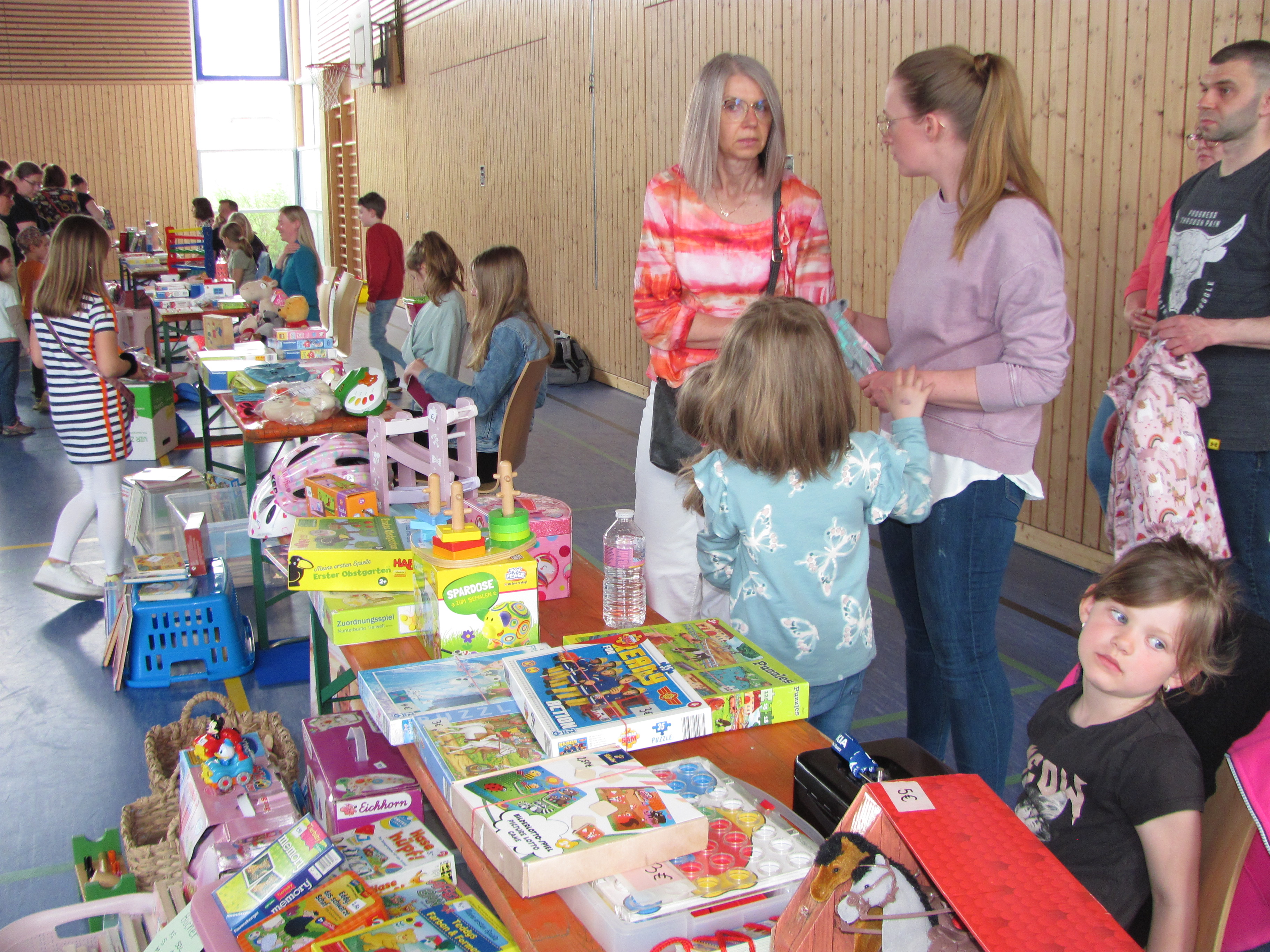 Am Sonntag, 7. Mai herrschte in der Grundschule Mantel lebhaftes Treiben. In der Turnhalle fand der Kinderflohmarkt statt wo die Schüler teilweise auch mit Eltern an einigen Ständen Playmobil, Lego, Bücher, Filme, Plüschtiere, Spiele und vieles mehr anboten. Der Elternbeirat hatte in der Aula ein Café aufgebaut und das Tortenbüfett ließ keine Wünsche zum Kaffee offen. Die Schüler erfreuten dann mit fröhlichen Liedern, unter anderem mit „Tiritomba“. Im Flur zu den Klassenzimmern waren so an die 2.000 Bücher beim Bücherflohmarkt der Marktbibliothek in den Bücherkisten. Kein Bücherwurm kam da vorbei ohne sich mit Kochbuch, Roman, Reiseführer oder die Kinder mit Kinderbüchern einzudecken. Trotz wunderbarem Frühlingswetter war die Veranstaltung bestens besucht.