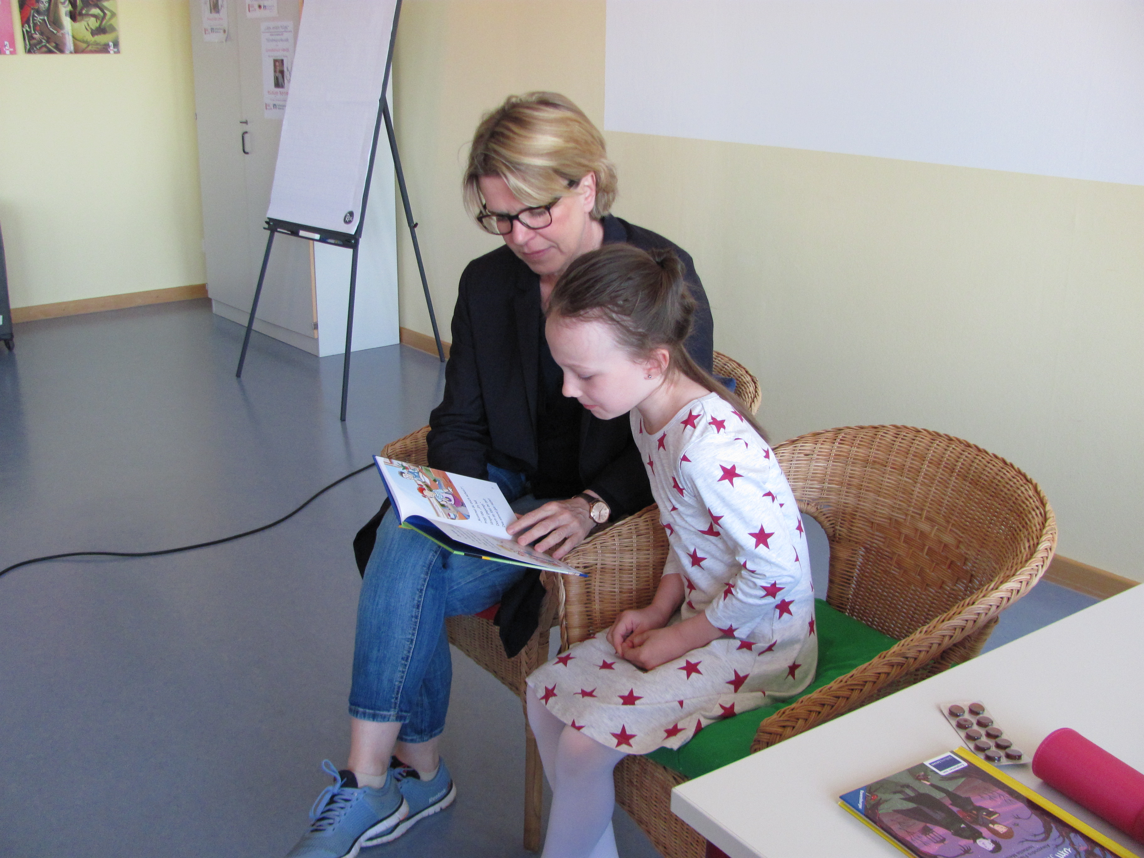 Am Montag, 7.5. erlebten die Manteler Grundschüler wieder einen besonderen Unterrichtstag. Die Autorin Alexandra Fischer-Hunold war zur Autorenlesung in die Schule gekommen und stellte ihre Bücher vor. Rektorin Elisabeth Graßler bedankte sich bei Buchhändler Eckhard Bodner, der die Autorenlesung organisiert hat und bei Theodor Körner und Daniel Dörfler von der Volks-Raiffeisenbank Filiale Mantel die mit einer Spende von 250 Euro die Aktion unterstützten. Die Aktion läuft unter dem Namen „Lesen verleiht Flügel“. Alexandra Fischer Hunold erkläre den Kindern, dass sie von Münster bis nach Mantel 8 Stunden gefahren ist. Sie schreibt Bücher für Kindergarten- und Schulkinder bis hin zu Teenies. In den Bücherkisten waren „Waldgeschichten“, Polizeigeschichten, „Lord Gordon“ Mops in königlicher Mission und viele andere. In der ersten Schulstunde kamen die Schüler der ersten Klasse von Rita Brey und die Schüler der zweiten Klasse von Anja Kraus in den Genuss der Lesung. Seit zehn Jahren gibt es jährlich eine Autorenlesung in der Grundschule und im Laufe seines Aufenthaltes lernt jeder Schüler vier waschechte Autoren kennen, so die Rektorin. Es herrschte gespannte Stille als die Autorin vom Gespenst im Klassenzimmer erzählte. Sie fragte die Kids ob sie auch ein Gespenst in der Schule haben, einige meinten ja, andere nein . „ In der Schule ist einiges los. Der Gong geht nicht, aus dem Schwamm regnet es Wasser auf Lehrerin Frau Müller, alle Fenster gehen auf und die Bücher flattern in den Baum vor dem Klassenzimmer. Auf der Tafel steht: „Ihr seid alle doof“. Da kann doch nur ein Gespenst am Werk sein? Das erfuhren die Mädchen und Jungs im Verlauf der ersten Schulstunde. Obwohl die Erstklässler erst im September zur Schule kamen, konnten doch einige, die von Rita Brey ausgesucht wurden, neben der Autorin schon ganz stolz die Texte im Buch fehlerfrei vorlesen, so unter anderem Laura und Valentino. Als Schulgespenst Emil Hilfe braucht, wissen die Kinder im Buch Rat. Die spannende und witzige Geschichte sorgt bei den jüngsten Lesern für Lesespass. Der Text ist auf die Bedürfnisse der Erstklässler zugeschnitten und sie erleben schnell motivierende Erfolge.