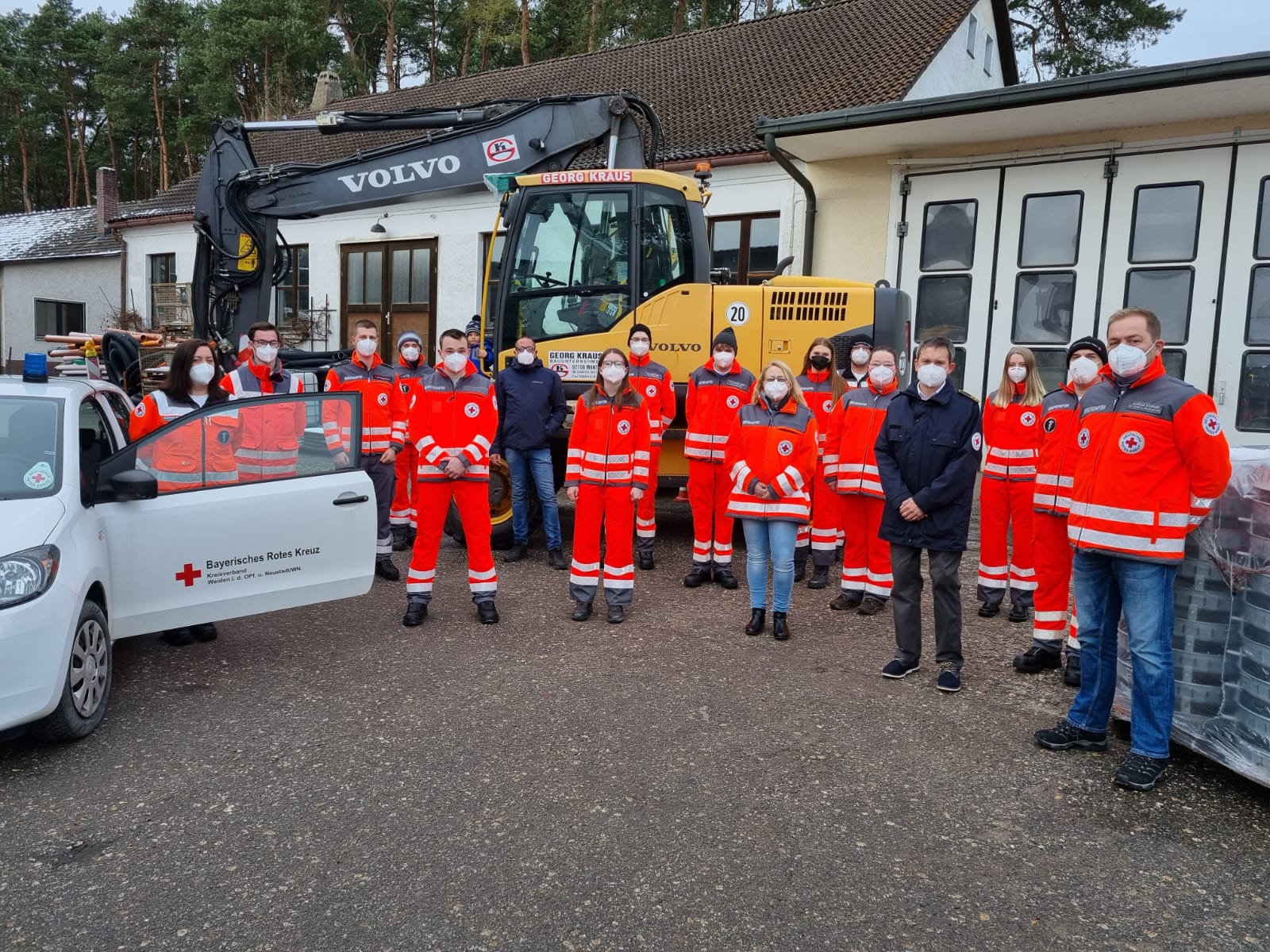Auch in diesem Jahr sind die Weihnachtsgeschenke für die Kunden und andere Inditutionen etwas weniger großzügig ausgefallen und bereits zum zweiten Mal spendete Michael Kraus, der Firmeninhaber der Baufirma Kraus an die HVO die stolze Summe von 2.000 Euro. „Wir wollen auch heuer wieder die Ehrenamtlichen Helfer im Ort unterstützen“, deren Arbeit ist für die Einwohner von unschätzbarem Wert, so Kraus. Durch viele großzügige Spenden ist bereits das neue Einsatzfahrzeug finanziert und die Helfer werden dann im Januar oder Februar 2022 auf die Suche nach dem richtigen Gefährt gehen. Das Auto muss noch ausgerüstet werden und die Dienstkleidung, welche die Helfer bei den Einsätzen tragen ist alles durch Spenden finanziert und so sind die Ehrenamtlichen immer auf Spenden angewiesen. Gruppenleiter Philipp Mangold und seine Stellvertreterin Carmen Stubenvoll bedankten sich im Namen ihrer Kollegen recht herzlich. Mit von der Partie waren auch Fachdienstleiter HVO Markus Kummer und Kreisbereitschaftsleiter Thomas Rauch.