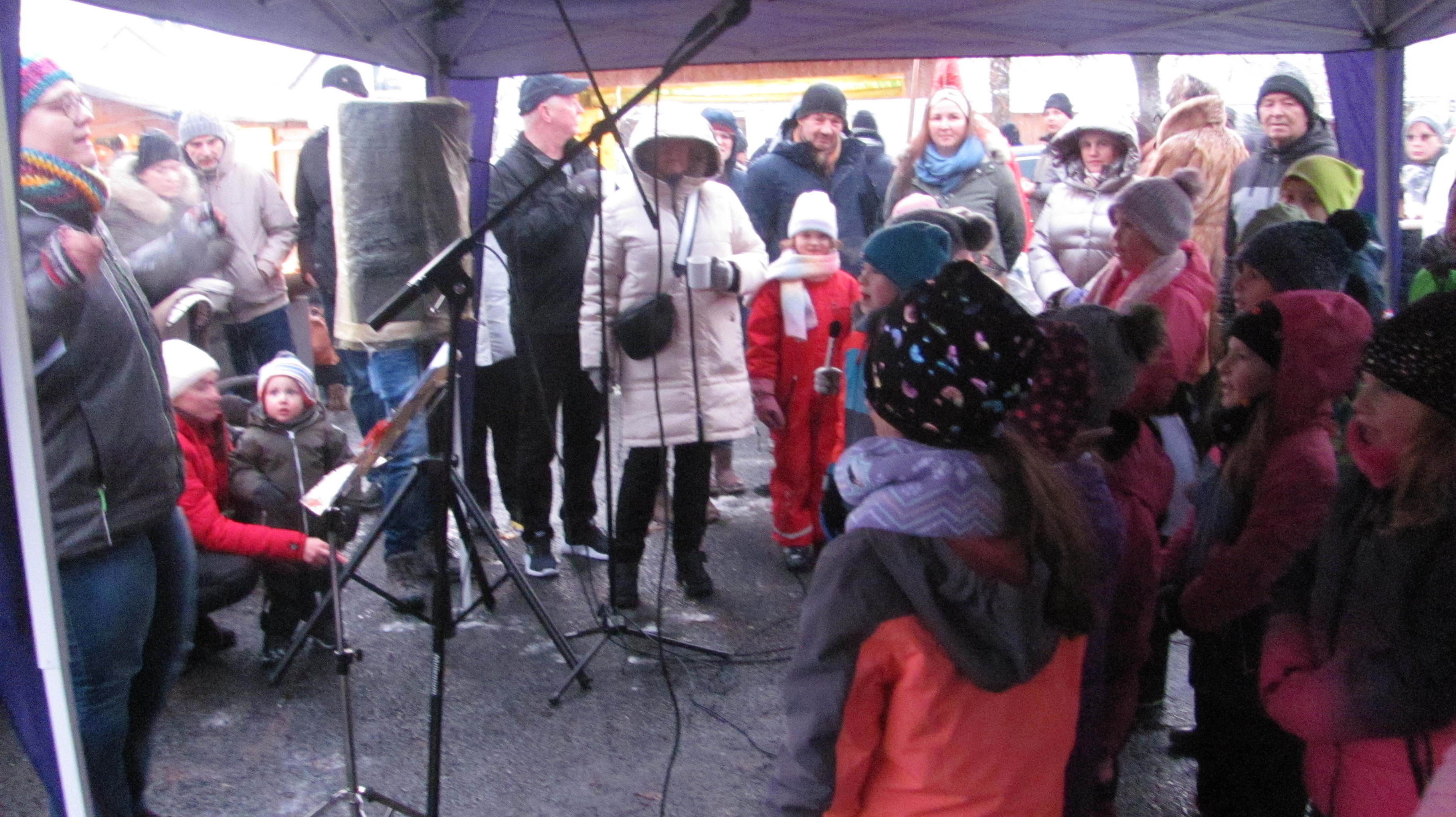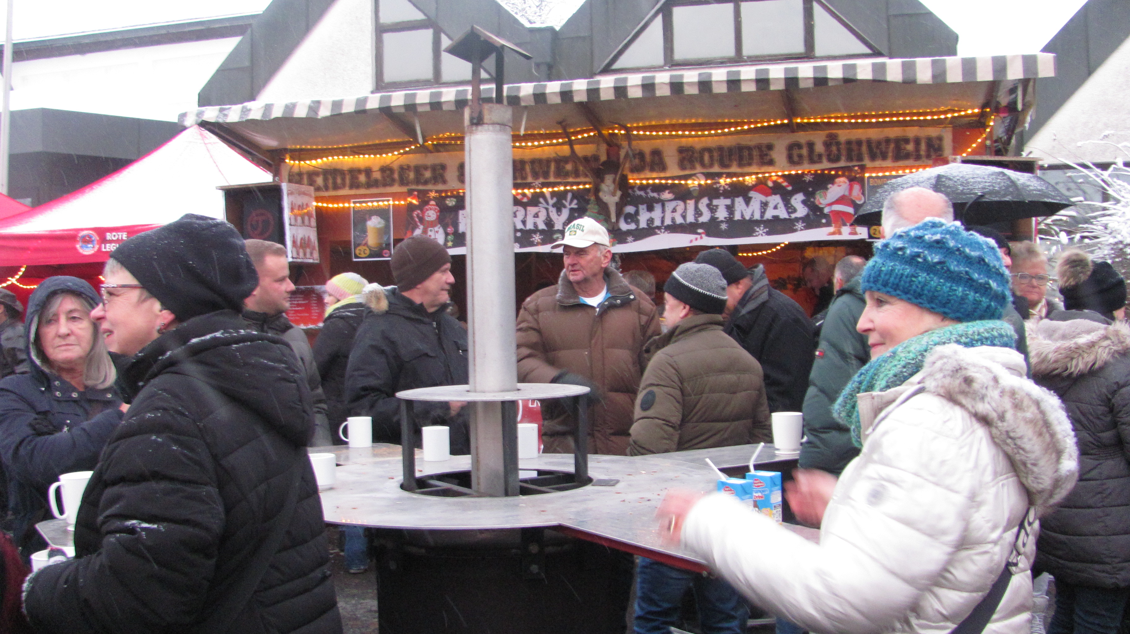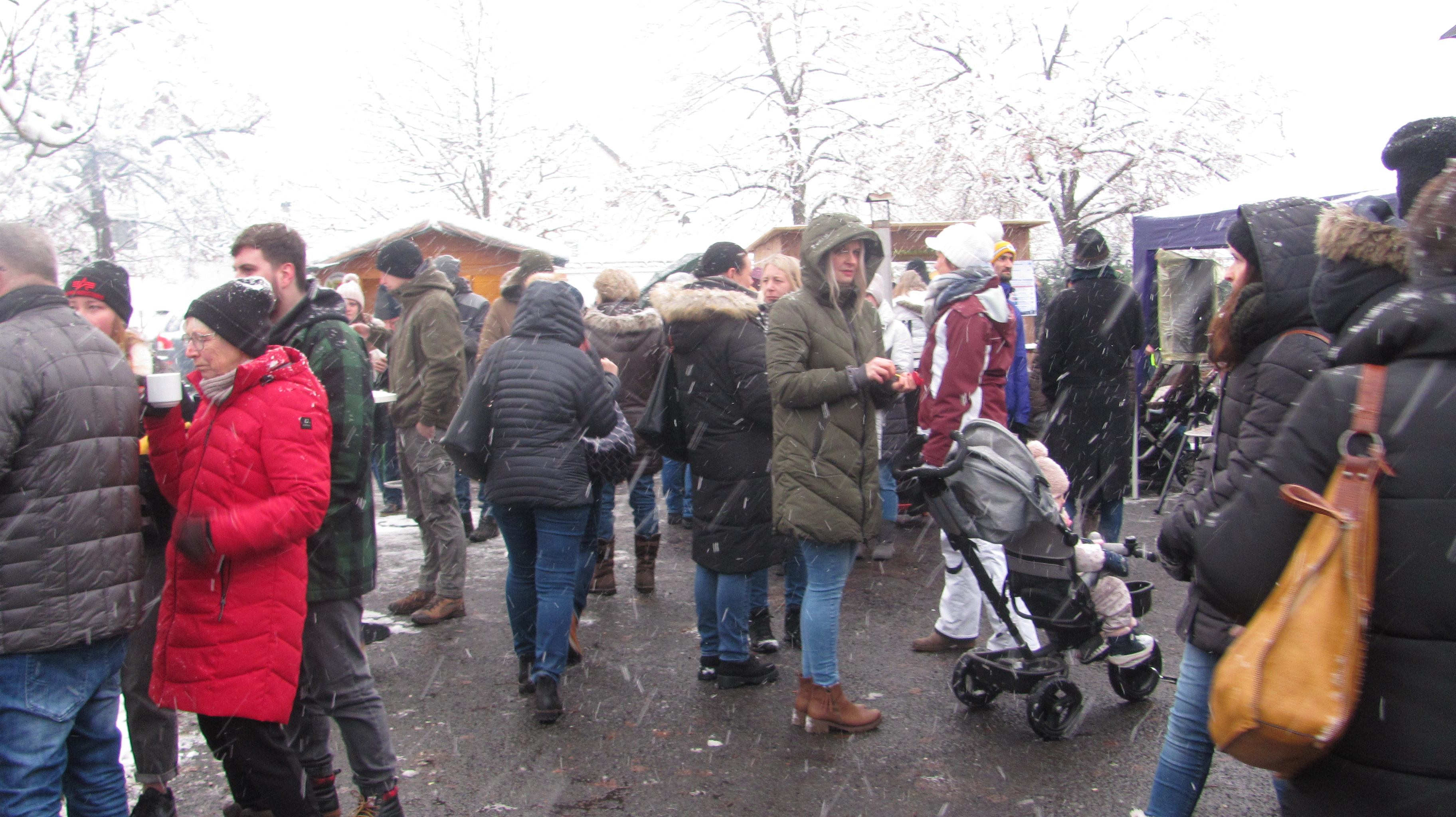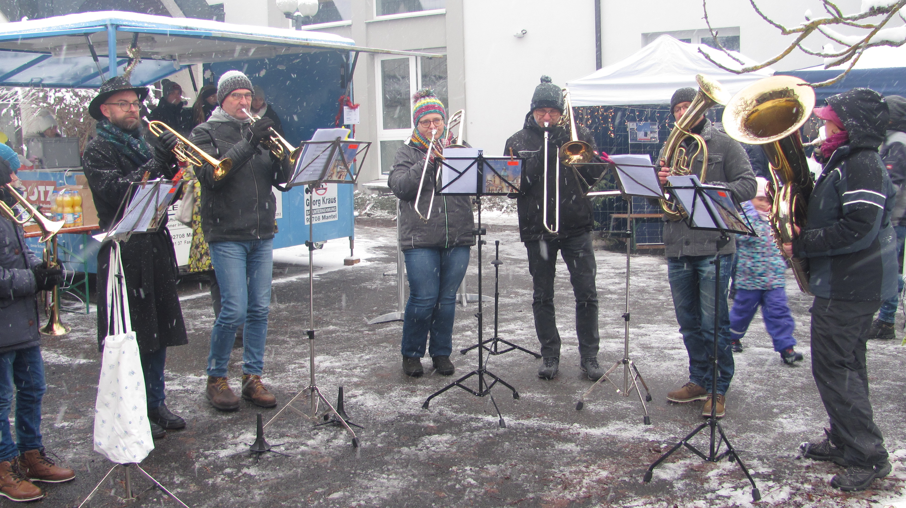 Winterliches Wetter mit Schnee belohnte die Initiative der CSU die auch in diesem Jahr am ersten Adventssamstag unter Beteiligung anderer Vereine und Organisationen den Weihnachtsmarkt auf dem Mehrzweckhallenparkplatz auf die Beine gestellt hat. Stände betrieben der CSU Ortsverband, die Elternbeiräte von Schule und Kinderhaus, die Junge Union, die Rote Legion, der VfB Mantel der Mantler Stammtisch und die Ministranten. Bei den glatten Straßen waren die Leute froh nicht mit dem Auto fahren zu müssen und so war der Besuch mehr als hervorragend, gegen 16 Uhr herrschte teilweise dichtes Gedränge. Musikalisch erfreuten der Posaunenchor, der Kinderchor und der Singkreis. Auf dem kleinen, aber feinen Markt gab es alles, was man von einem Weihnachtsmarkt erwartet. Pikantes wie Bratwürste, Burger, Gulaschsuppe und Pommes fanden Abnehmer, ebenso Süßes wie Zuckerwatte, Popcorn, Crepes und Weihnachtsplätzchen. Man konnte mit Bastelarbeiten noch kleine Weihnachtsgeschenke kaufen. Auch bei den heißen Getränken blieb kein Wunsch offen. Verschiedene Sorten Glühwein, auch heißer Apfelsaft oder Feuerzangenbowle wärmten von innen. Sogar der In-Drink der auf den Skihütten in den Berge so bliebt ist, „Bombardino“ weckte die Begeisterung. Der Nikolaus der Kolpingsfamilie beschenkte die Kinder und Feuerstellen und Tische mit wärmenden Öfen boten Wärmequellen. Der Siedlerbund und die JU hatte mit dem Verkauf von Christbäumen auch alle Hände voll zu tun. Bis in die Abendstunden standen die Besucher an den geheizten Tischen zusammen und pflegten gute Unterhaltung und genossen Weihnachtslieder ob live von den Chören oder später auch vom Band. Bei einer Tombola gab es sofort Sachpreise zu gewinnen und um 18.30 lockten bei der Hauptziehung sogar tolle Preise wie ein Balkonkraftwerk. Bürgermeister Richard Kammerer beteiligte sich als fleißiger Losverkäufer.