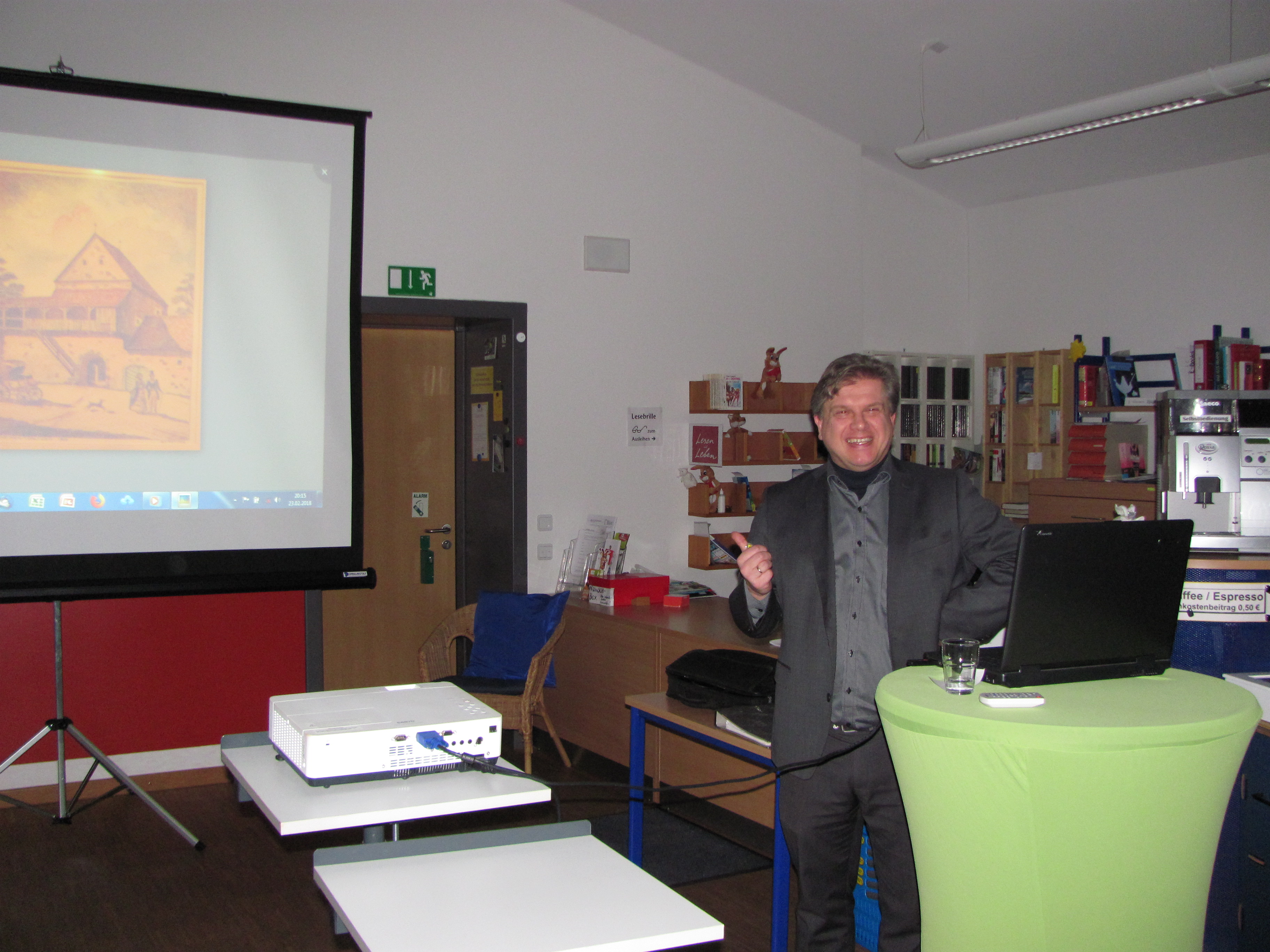 Über reges Interesse freute sich Bernhard Weigl am Freitag, 22.3. in der Marktbibliothek in Mantel. Man hätte eine Stecknadel fallen hören so gespannt verfolgten die Zuhörer die Geschichten und Anekdoten die Weigl aus der Zeit um 1700 erzählte, untermalt mit alten Fotos. Später zeigte er noch den 3 D Film.Die Gäste erfahren, dass damals der Siechenweiher viel größer war als die Altstadt von Weiden und die heute belebte Max-Reger-Straße war zu dieser Zeit der Damm des Weihers. Zwei der damaligen Halbschalentürme in der Stadtmauer sind heute noch erhalten, zeigte Weigl anhand von aktuellen Fotografien auf, einer davon gehört zum „Hotel am Tor“. Das „Obere Tor“ und das „Untere Tor“ gibt es noch, aber die sahen früher anders aus. Der „Stadtwachtmeister“ hatte seine Dienstwohnung im „Unteren Tor“. Er hatte keinen einfachen Job. Die Stadtschlüssel lagen damals nicht im Rathaus sondern beim „Pfleger“ des Amtes Parkstein, der im „Vesten Haus“ wohnte. Der Torwächter musste sich die Schlüssel holen und im Sommer wurden frühmorgens um drei Uhr die Tore aufgesperrt und nachts um 22 Uhr zu. Im Winter wurde um vier Uhr aufgesperrt und um 21 Uhr zu. Vor dem Zusperren wurde die Sperrglocke geläutet, damit sich alle beeilten die noch außerhalb der Stadtmauer waren. Wer dann bis 24 Uhr noch Einlass wollte, musste einen Torsperrkreuzer bezahlen und nach 24 Uhr zwei Torsperrkreuzer, damit er in die Stadt kam. Vor den Stadttoren gab es zwei Gasthäuser, den „Schwarzen Bären“ und „den Schwan“. Weiden hatte vier Bürgermeister von denen jeweils einer für ein Vierteljahr im Amt war. Zwei Bürgermeister waren katholisch, zwei evangelisch. Jeweils vier Wächter bewachten tagsüber die Tore. Ab 1803 blieben die Tore offen und die Stadtmauer wurde stückweise verkauft. Von dem einem Kilometer Stadtmauer sind leider keine 100 Meter mehr übrig und sichtbar, bedauerte Weigl. Einige Zeit gab es zusätzlich noch eine Vorstadtmauer. Nach der Einnahme der Stadt 1634 durch die Schweden errichten diese zusätzlich Erdwälle in Dreiecksform. „Vieles weiß man so genau, weil damals Bürgermeister Jakob Schabner alles genau niedergeschrieben hat“, freute sich Weigl. Wo damals die Stadtmühle war, befindet sich heute K & L Ruppert. Weiden war nur ein kleines Landstädtchen und die weiß verputzte Stadtmauer war schon eine Baulast für die Stadt, wusste Weigl. Die Pest raffte von den 2.500 Einwohnern 1.800 dahin. Der erste Friedhof befand sich um die Kirche St. Michael, dann wurde er bei der Heilig-Geist Kirche angelegt, wo sich heute die Stadtsparkasse befindet. Der Pestfriedhof war dann außerhalb dieser Friedhofsmauern. Manchmal spaziert man beim Bummel durch Weiden über historische Bauten ohne es zu bemerken. Vor dem Oberen Tor befanden sich noch zwei Tortürme und eine Steinbrücke. Diese Brücke ist heute noch unter dem Pflaster erhalten. Bernhard Weigl hat im Keller des Anwesens der Familie Friedmann Fotos gemacht und zeigte sie, wo man noch die Brückenpfeiler sieht und auch die Rundung der Türme. Während des Vortrages und des 3 D Filmes gab es viele interessierte Fragen der Gäste. Weigl`s neuestes Projekt ist die Rekonstruktion der Festung Waldeck. Wie auch für die Rekonstruktion von Weiden ist da ein Stich von Matthäus Merian sehr hilfreich, Merians Arbeiten sind toll und wahnsinnig genau, so der Referent. Weigl braucht für seine Arbeit, die etwa zweieinhalb Jahre in Anspruch nehmen wird, möglichst genaue Grundrisse, Pläne und Ansichten von verschiedenen Seiten. Weigl hat zu seiner großen Freude im Bayerischen Nationalmuseum in München ein Modell, das Waldeck um 1660 zeigt entdeckt. Im Laufe seiner Recherchen hat Weigl auch das schwedische Wappen und das Wappen des Generals von Königsmarack entdeckt die in Sulzbach lagerten. Die Wappen befanden sich einmal im Vortor des Unteren Tores von Weiden. Mittlerweile sind sie wieder in Weiden angelangt und Weigl hofft dass sie auch wieder öffentlich ausgestellt werden weil es sehr schöne und gut erhaltene Stücke sind. Silvia Klier vom Verein „Kunst und Kultur“ bedankte sich bei Bernhard Weigl für seine fast zweieinhalbstündigen Ausführungen, von denen nicht eine Minute langweilig war. Als das Licht wieder anging, hatten die Zuhörer sichtlich Probleme aus der alten Zeit aufzutauchen und wieder in der Gegenwart anzukommen, so versunken waren manche Gäste. Unter https://www.youtube.com/watch?v=hsblqGU8qZ4 ist der Film über die Stadtbefestigung zu sehen. Auch Bibliotheksleiterin Elisabeth Graßler hatte gerne die Räume zur Verfügung gestellt.