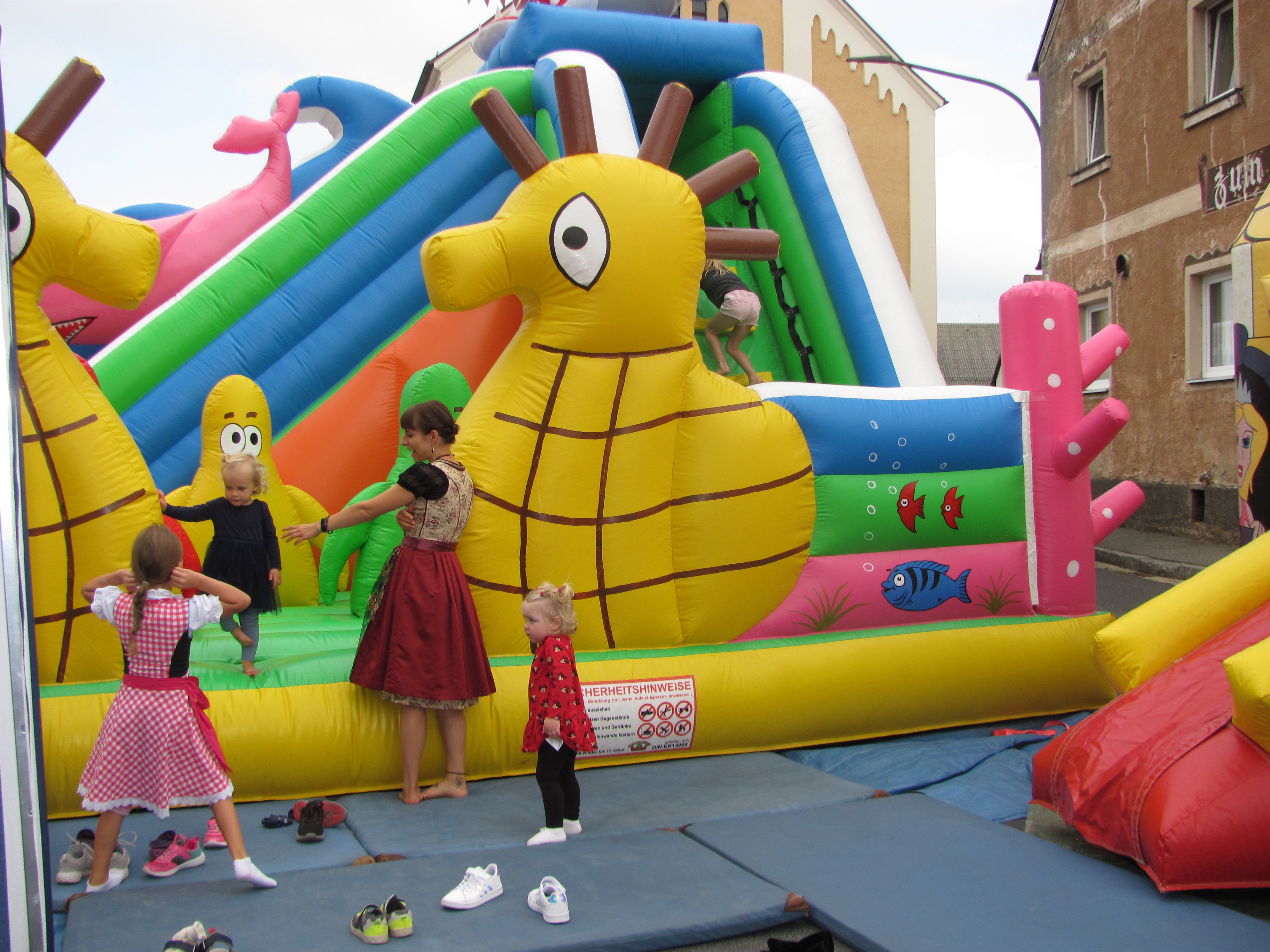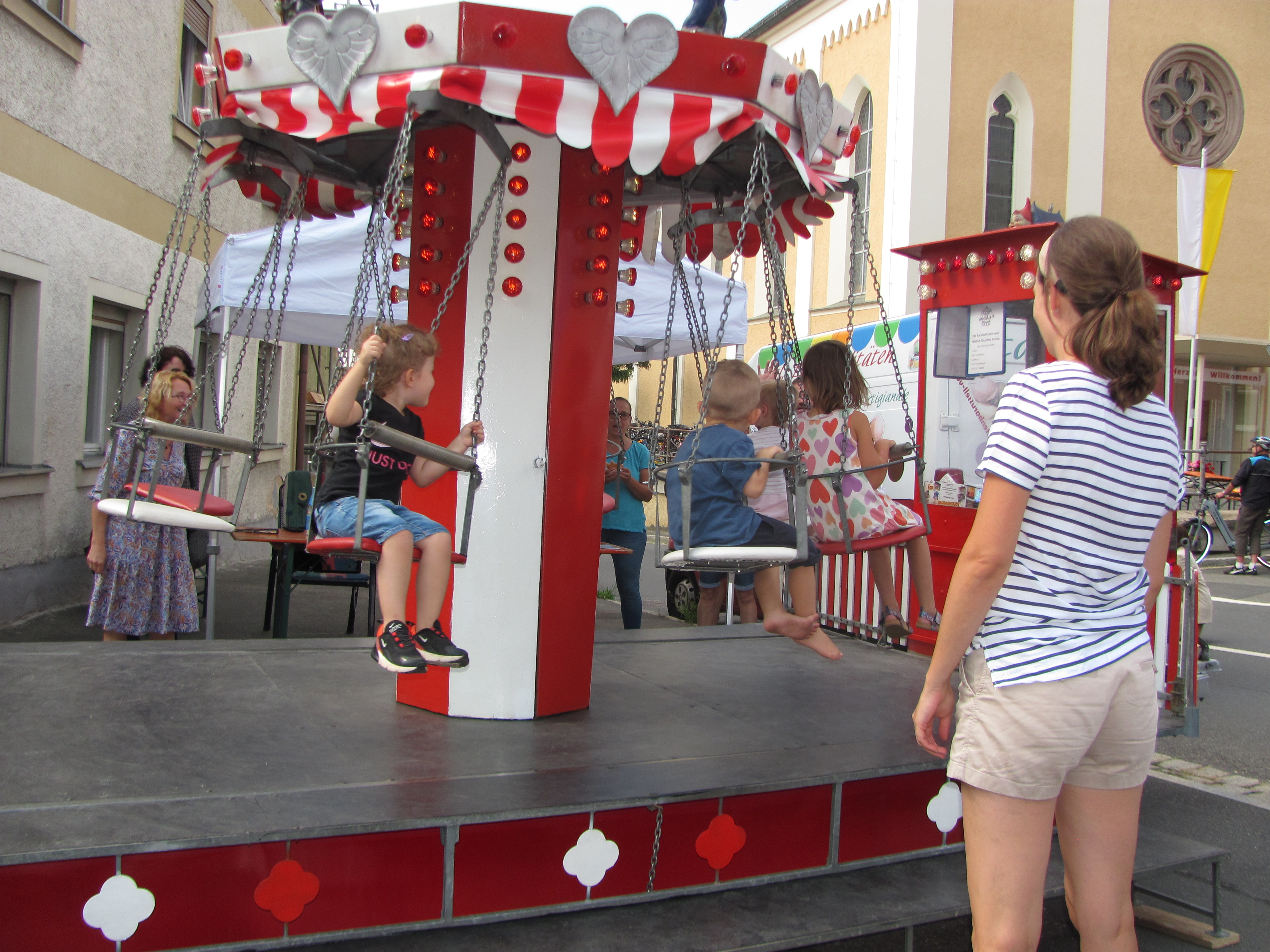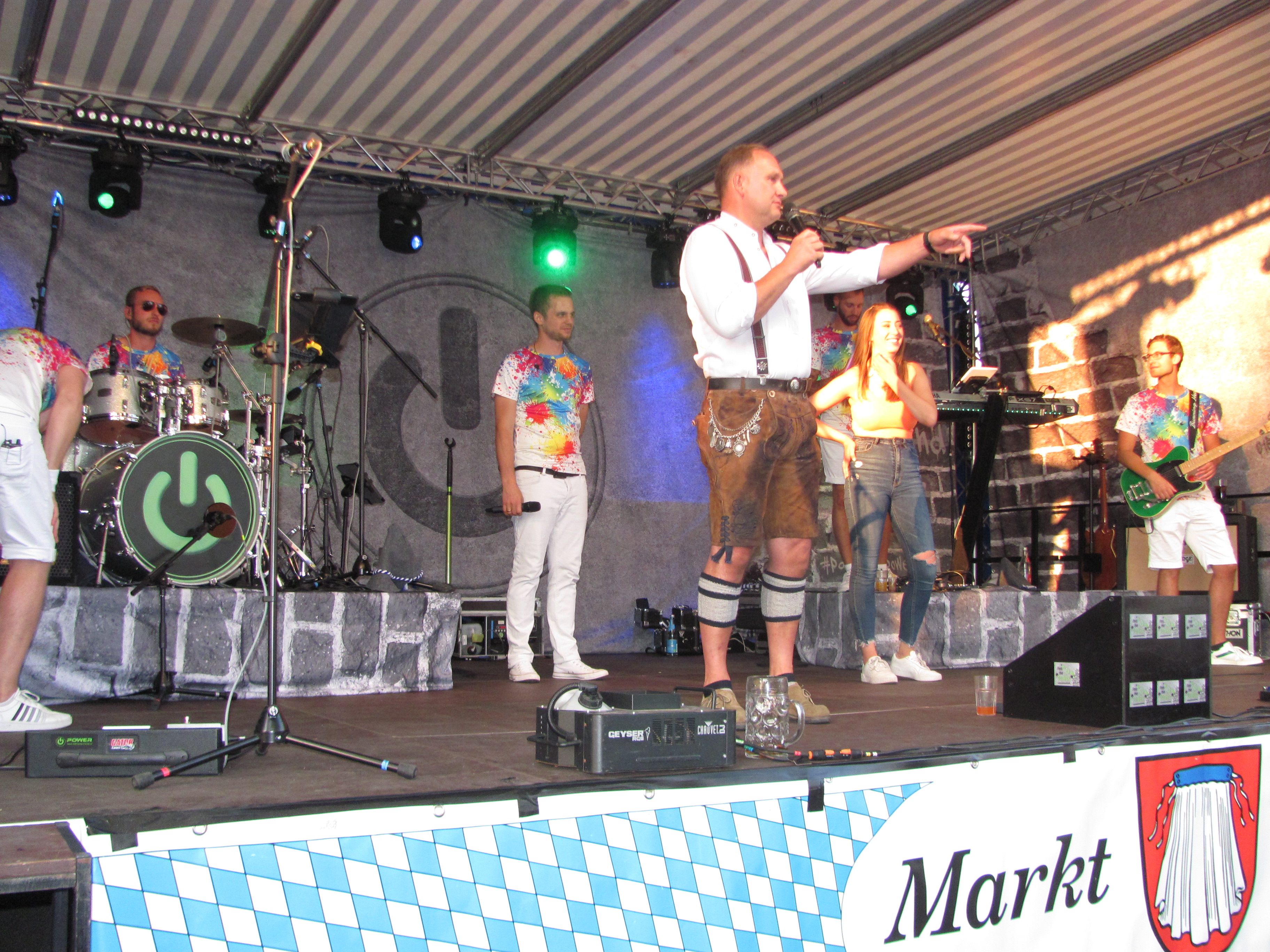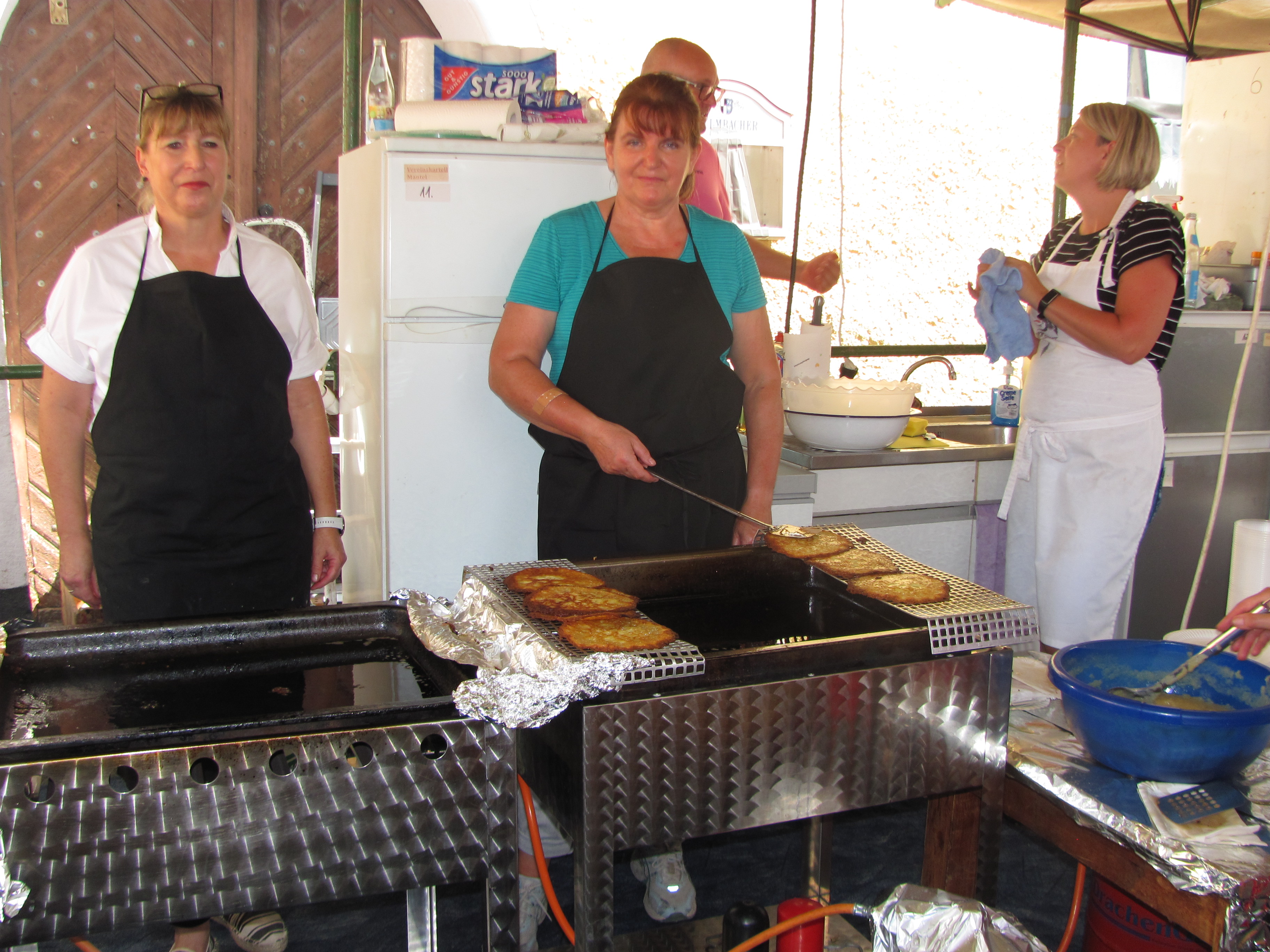 Es ist nie beabsichtigt, ein Rekordbürgerfest zu erreichen, so Bürgermeister Richard Kammerer. Es soll ein Vergnügen von Mantlern für die Mantler sein. Aber das diesjährige Bürgerfest brach wieder alle Rekorde. Die Weißwürste hörten das 12Uhr Läuten nicht, Schnitzel und Rollbraten waren binnen einer Stunde verkauft. Der Marktplatz war am frühen Abend bis zum letzten Platz von Besuchern aus Mantel, Weiherhammer Weiden und anderen Orten bevölkert. Mit dem Lied: „Böhmischer Traum“ verabschiedeten sich am Nachmittag die Hohlweglauerer und die Partyband „Power“ stürmte die große Bühne, (eine Leihgabe aus Weiherhammer) und schon nach wenigen Minuten herrschte Partystimmung wie im „Megapark“ auf Mallorca. Die vor allem jüngeren Gäste standen auf den Tischen und die Manteler zeigten sich nicht prüde und sangen und tanzten zum umstrittenen Sommerhit „Layla“. Die älteren Gäste zogen sich dann mehr ans Ende des Marktplatzes zurück damit sie sich unterhalten konnten. Bürgermeister Richard Kammerer begrüßte die Gäste und stellte die einzelnen Attraktionen und Stände vor. Es waren beim Kartellvorstand auch zwei „Fundstücke“ abgegeben worden, wie Kammerer von der Bühne verkündete. Einmal war es eine Bankkarte, die sein dankbarer Besitzer wieder erhielt und auch ein Yorkshire-Terrier (2 KG schwer) wurde als Fundstück seinem Herrchen unter dem Gelächter der Gäste zurückgegeben. An die 80 Kuchen und tolle Torten gingen bei der Feuerwehr über die Theke zum Kaffee. Keine Fische sondern Bratwürste servierten die Fischerfreunde, Steckerlfisch und Fisch- und Lachssemmeln sowie Käse und Brezen gab es beim Siedlerbund. Die Ministranten hatten knusprige Pommes in der Fritteuse und die Damen des Pfarrgemeinderates verwandelten 80 Kilo Kartoffelmasse in leckeren Dotsch. Steaks gab es im gleichen Stand beim OWV. Vor allem von der Jugend belagert war der Crepes Stand der Roten Legion. Holzkohlenxantlburger hatten die evangelischen Stammtischfreunde am Grill, gegenüber gab es Pulled Pork von der Theatergruppe. Pikante Brote hatte die Tischtennisabteilung der TSG um Angebot. Der CSU Ortsverband betreute die Bar und Weinlaube im Posthof, wohin sich alle, die um 22 Uhr nicht heimgehen wollten zum „Nachbürgerfest“ zurückziehen konnten. An Belustigungen und Attraktionen war einiges geboten. Die Jugendfeuerwehr stellte das LF20 aus. Die Freien Wähler zuckelten mit dem Bockl durch den Markt Der Kegelklub betrieb die Holzkegelbahn Bei Kolping stiegen bunte Luftballons in den Himmel. Im Pavillon des Manteler Stammtisch bewiesen sich starke Leute am Nagelbock beim Maßkruschieben und Maßkrugstemmen und für die Kinder war Riesen-Jenga ein Anziehungspunkt. Zielsicherheit war an der Minieisstockbahn des MGV gefragt. Die SPD beaufsichtige die kleine Hüpfburg, die Wanderfreunde die große Abenteuerhüpfburg. Kleinere Kinder drehten im Karussell des VdK ihre Runden und beim Elternbeirat von Schule und Kinderhaus gab es Armbänder zum Basten, Tattoos und einen Maltisch. Der Duft des Gyros des Imkervereins zog über den Platz und der Haisl-Verein betrieb einen weiteren Pils- und Weizenausschank. Mitglieder von Vereinen keine Spezialitäten servierten oder eine Unterhaltung boten, halben am Morgen und Nachts bei Auf- und Abbau mit damit um Mitternacht der Verkehr wieder über den Marktplatz fließen konnte. Damit das Bürgerfest auch friedlich blieb, war ein Sicherheitsdienst immer präsent. Für Notfälle standen die Helfer vor Ort Haidenaabtal bereit.
