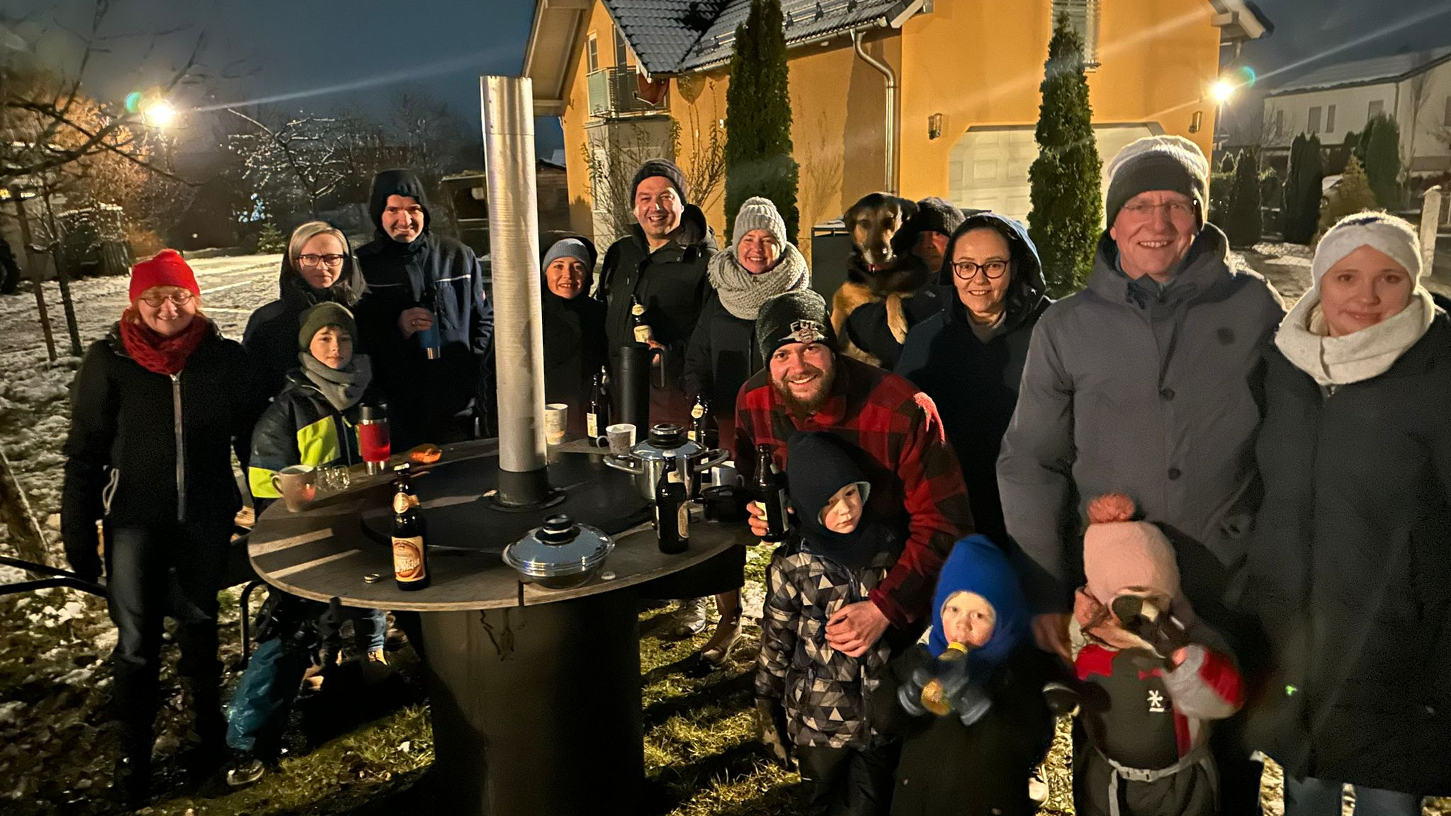 Am 25.11. trafen sich die Anwohner des Wendehammers am Ossangerweg erstmals zum Christbaum schmücken. So brachte jede Familie eine Weihnachtskugel mit und schmückte damit den kleinen Nadelbaum auf dem Gemeindeplatz. Bei Glühwein und Bratwurstsemmeln verbrachten die Anwohner ein paar gemütliche Stunden an der Feuertonne. Auch das Wetter spielte mit und der Schnee sorgte für eine weihnachtliche Atmosphäre. Christina Hüttner-Plotzky hatte dieses kleine Fest als Einstimmung auf Weihnachten organisiert. Die Anwohner waren sich einig und sprachen sich für eine Wiederholung im nächsten Jahr aus.