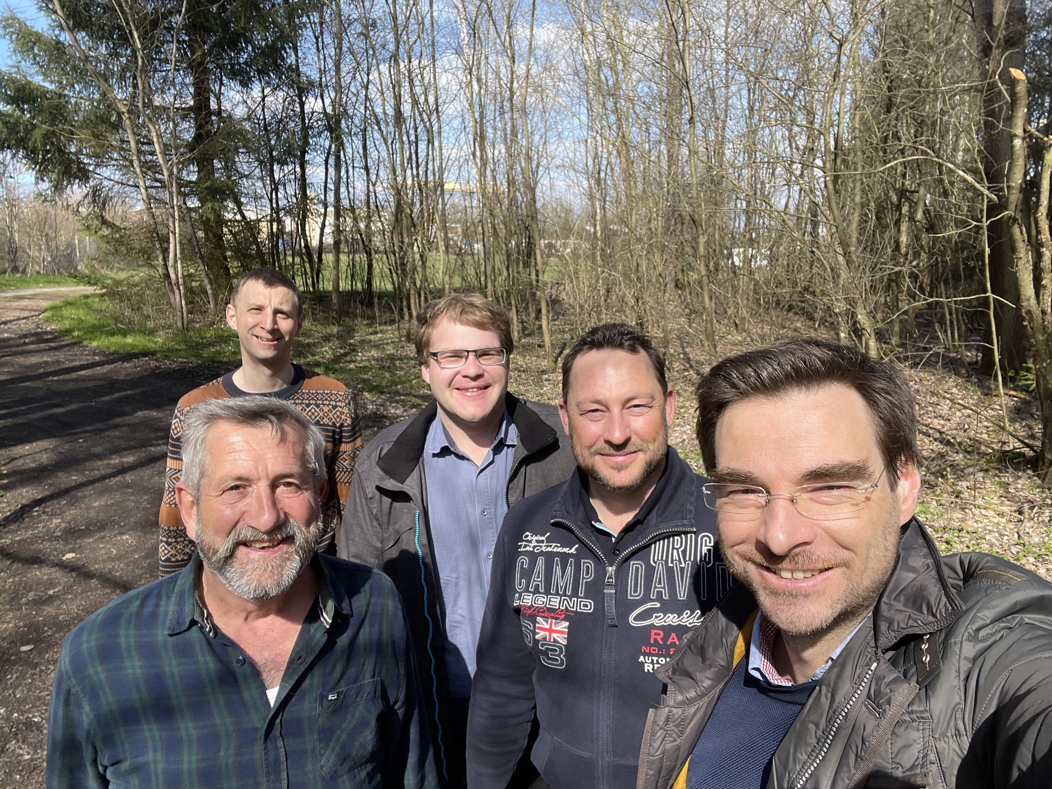 Erwin Klemm (vorne links) führte die kleine Truppe um Landtagsabgeordneten Stephan Oetzinger (vorne rechts) über Deschenbühl, Wildschweingehege und Schwarzen Weiher zum VfB-Sportheim.