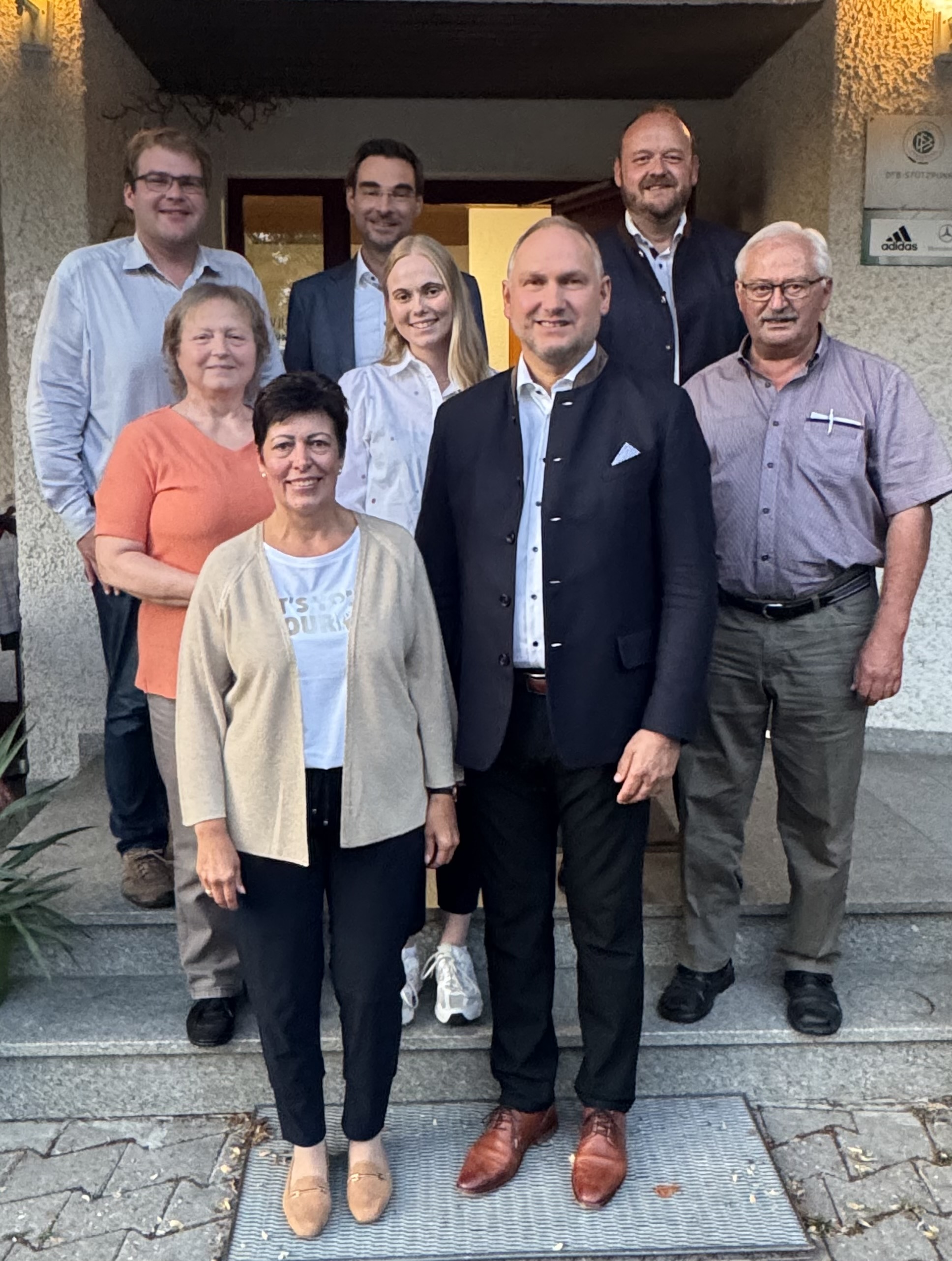 CSU-Vorsitzender Christoph Müller, FU-Chefin Christine Härtl, CSU-Kreisvorsitzender Dr. Stephan Oetzinger, JU-Vorsitzende Constanze Hartwig, Landrat Andreas Meier und Altbürgermeister Josef Wittmann (von links) sichern Erstem Bürgermeister Richard Kammerer (vorne mit Frau Ulla) volle Unterstützung zu.