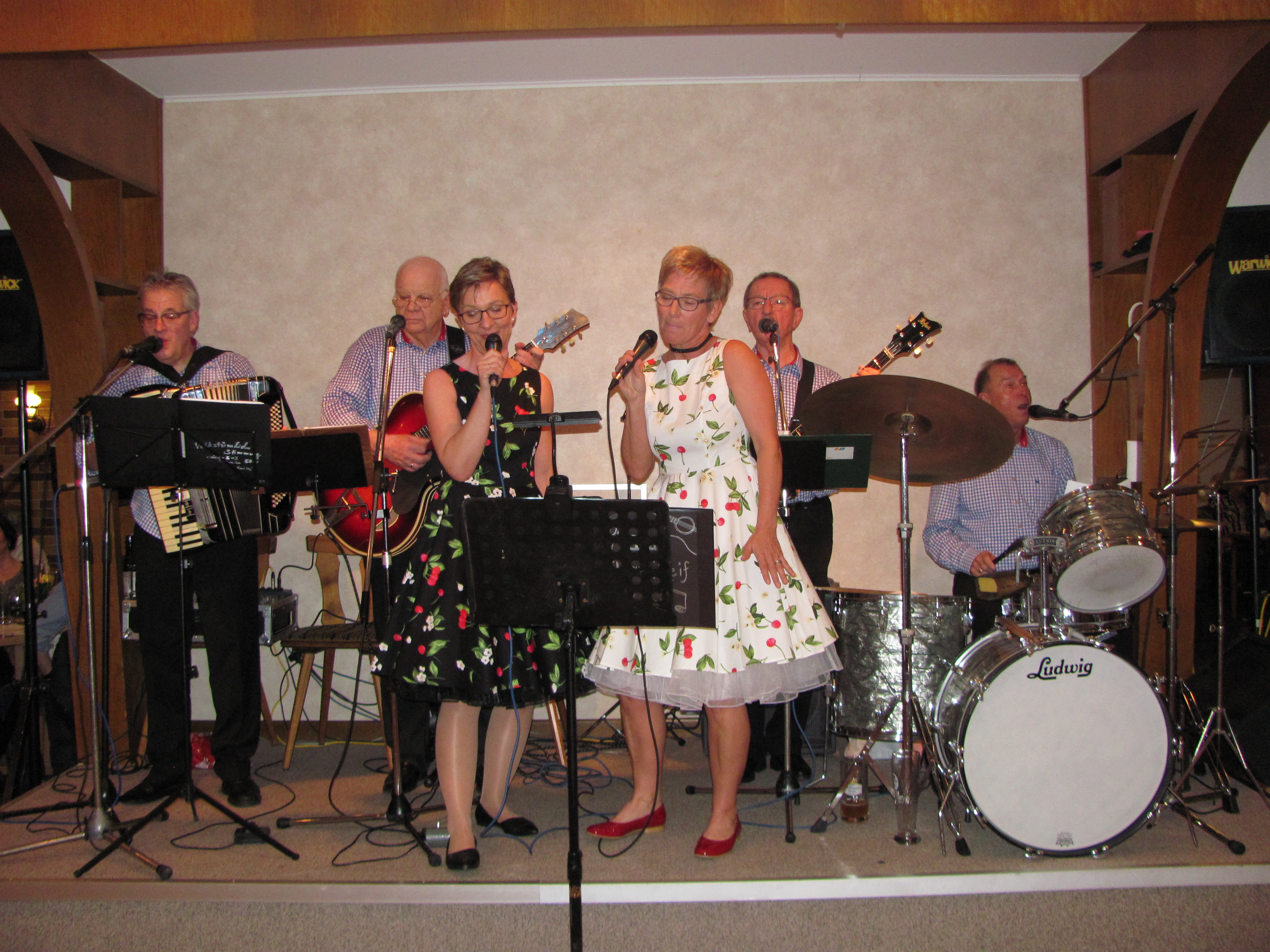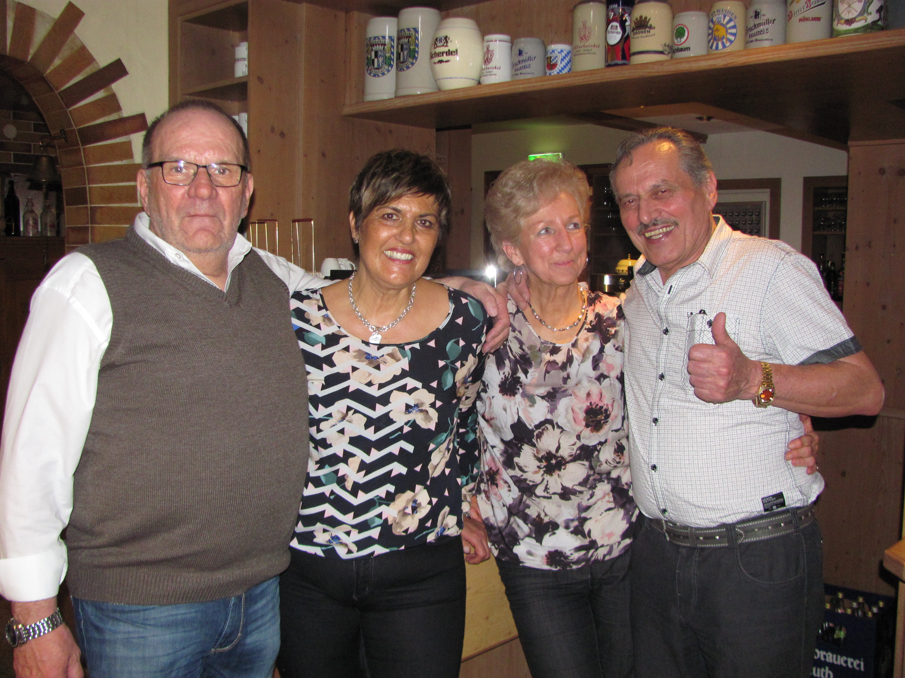 Dass sich im Laufe von Jahrzehnten viele Paare beim Tanz im Hotel-Restaurant Lohbachwinkel kennen lernten, war ja schon vorher klar. Aber es hat sich am Samstag, 10.3. beim Oldies-Tanzabend bestätigt. Heidi und Wilfried Forster, die an dem Abend zugleich ihr 30igjähriges Betriebsjubiläum feierten wurden vom Ansturm förmlich überrannt. Wie Wilfried Forster bei der Begrüßung erzählte. „Wir haben auch den allerletzten Stuhl aus dem Keller geholt und entstaubt, so dass wir alle Gäste unterbringen konnten. „Alle wollen mal wieder „Lohbach-Feeling“ erleben“. „Es ist so schön, ein Musikant zu sein“, bestätigten die „Lustigen Buam“ unter Leitung von Michael Bertelshofer mit Akkordeon, Roman Karl mit Bassgitarre, Lothar Kraus mit Gitarre und Reinhold Müller am Schlagzeug. Das sie Freude an ihrer Musik haben, das sah man den Herren auch an, und sie stehen schon 40 Jahre oder länger auf der Bühne, der „Benjamin“ ist Bertelshofer, wie Reinhold Müller humorvoll bemerkte, Müller führte auch durch das Programm. Es gab eine „Ehrentanzrunde“ für alle Pärchen die sich am Lohbachwinkel kennengelernt haben oder dort geheiratet haben. Passender Titel: „Aber dich gibt’s zur einmal für mich“. Unter den Tänzern war auch Karlheinz Parol mit Ehefrau. Seine Inge schnappte er sich, als sie am Lohbach mal Weinkönigin war. Eifrige Tänzer waren auch Rudi Götz und seine Frau Gerlinde. Sie haben ihre Hochzeit im Hotel-Cafe Lohbachwinkel gefeiert und freuen sich auf ihre goldene Hochzeit noch in diesem Jahr. Erinnert wurde auch an den früheren Leiter des Lohbach-Trios, Herbert Kraus, der leider schon verstorben ist. Seine Ehefrau Hilfe mit Töchtern und Sohn war auch unter den Gästen und schwang das Tanzbein. Wie Reinhold Müllerausführte: „Wir sind nicht älter geworden, nur reifer“. Aber einige bemerkten doch, dass sie nicht mehr so jung sind wie damals. „Früher liefen wir vom Parkplatz den Berg hoch wie nix und nun waren wir total aus der Puste, als wir oben ankamen“, erzählten sie. Ein besonderer Höhepunkt des Abends war der Auftritt des Duos Rauhreif. Gisela Reil und Ulrike Rauch boten einen flotten Anblick in ihren Petticoat-Kleidern im Stile der 60iger Jahre und sangen auch die Schlager aus dieser Zeit. Sie erhielten viel Beifall für: „Schöner fremder Mann“ von Conny Francis oder „Sag mir Quando“ von Caterina Valente und weitern Hits. Lohbachchef Wilfried Forster und seine Schwester Heidi nahmen den Abend zum Anlass um auch ihrem langjährigen Personal mit Blumen zu danken. „Wir haben in der Zeit an die 50 Lehrlinge ausgebildet“, so Forster und ein Teil des früheren Personals war auch zu Gast. Immer noch im Dienst seit länger als 30 Jahren sind Brigitte Maier, Elfriede Feuerer und seit 43 Jahren Martha Janner. Die Damen nahmen erfreut ihre Blumen in Empfang und arbeiteten dann gleich weiter. Sie hatten vorher schon schlaflose Nächte als sie vom Ansturm auf den Lohbach hörten, den sie ja bewältigen mussten, aber es lief in gewohnter Routine ab. Von der ersten bis zur letzten Minute um 1.30 Uhr nachts war die Tanzfläche immer dicht bevölkert, es wurde sogar zwischen den Tischen getanzt als der Platz nicht reichte. Alle Gäste baten um Wiederholung des Tanzabends und hinterließen ihre Telefon-Nummern. Wilfried Forster stellte einen weiteren Oldie-Tanzabend im Herbst diesen Jahres oder spätestens im nächsten Jahr im Frühling in Aussicht.