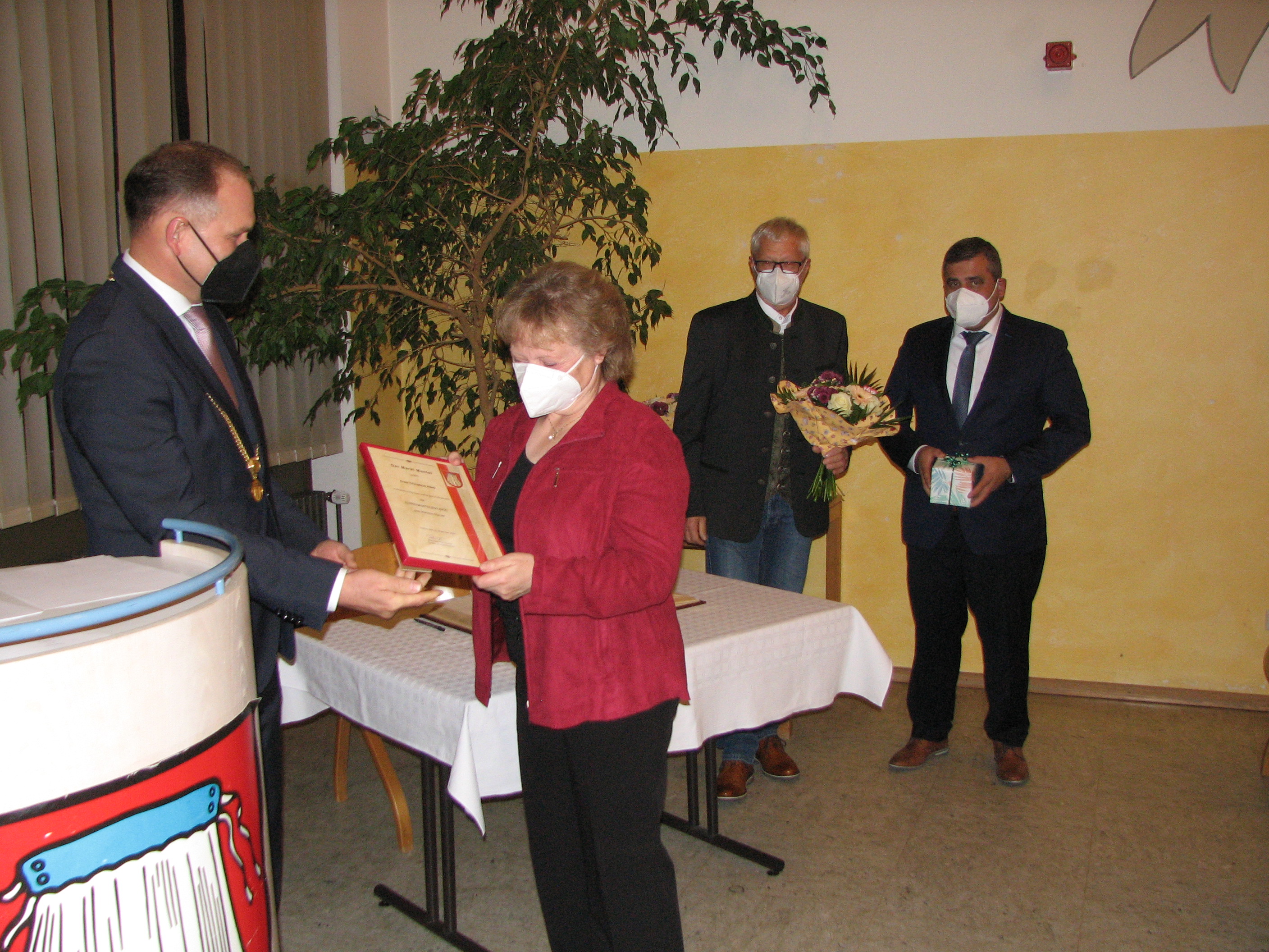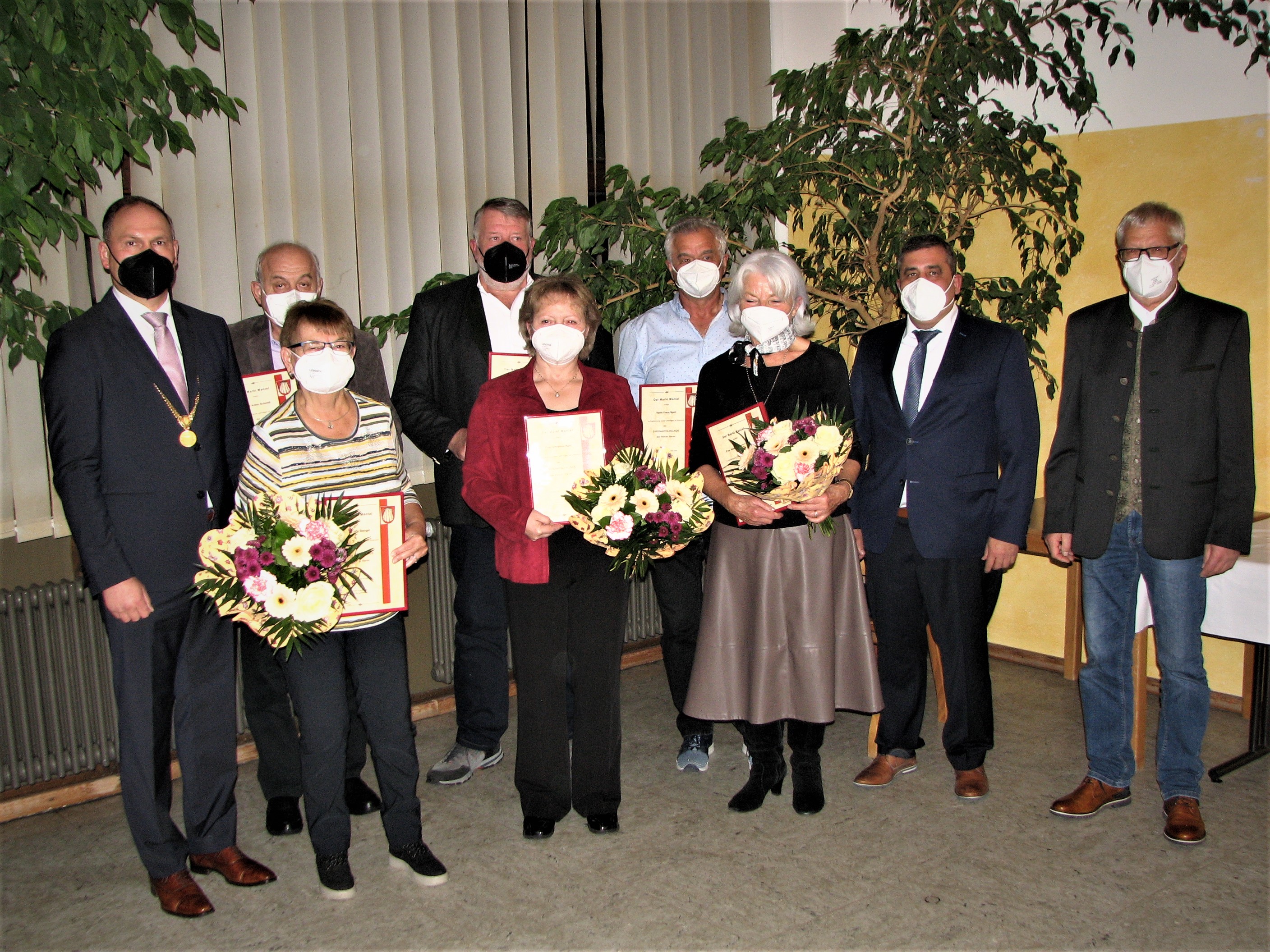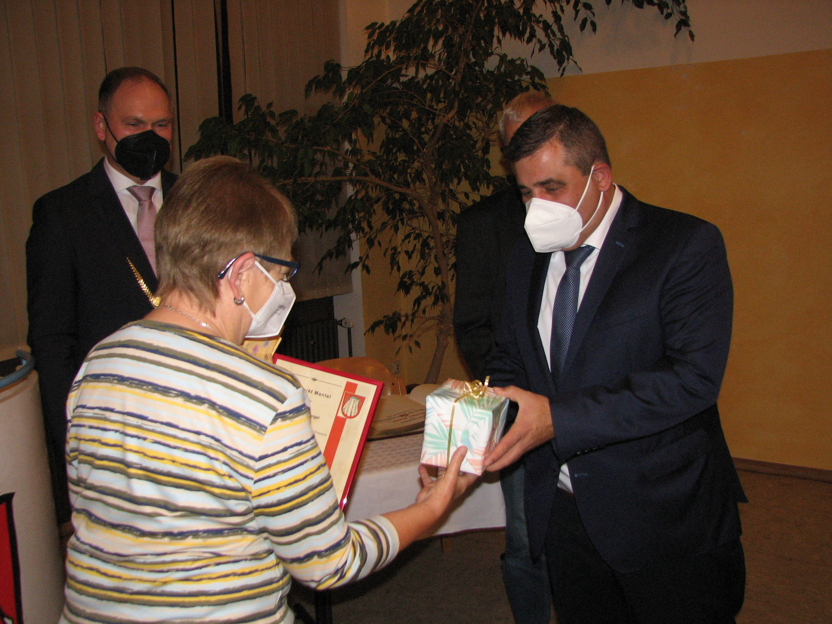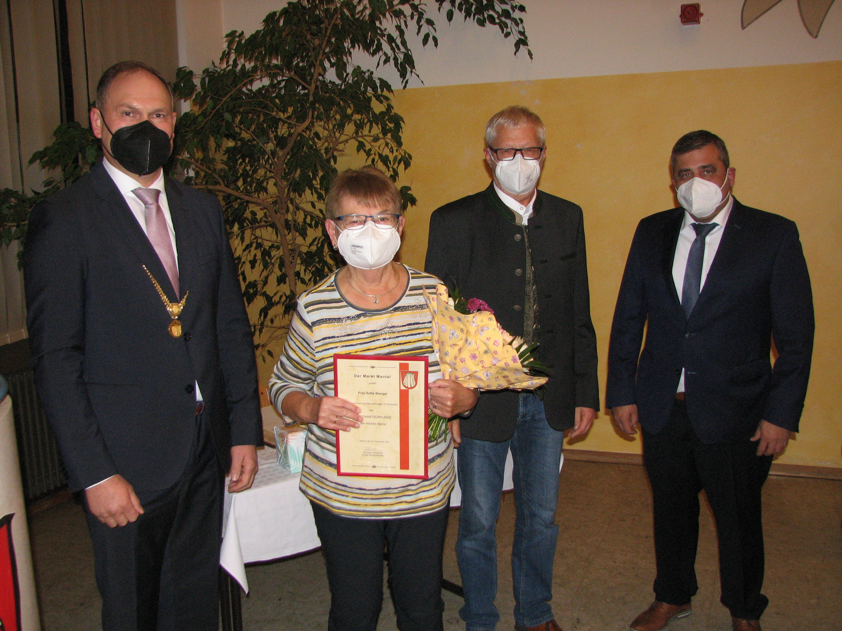 Sofie Stengel ist seit mehr als 60 Jahren in den unterschiedlichsten Bereichen der evangelischen Kirche tätig und war seitdem aktive Sängerin im Kirchenchor. Viele Jahre war sie Vorsitzende im evangelischen Frauenbund und hatte das Amt des Kassenwartes im Seniorenkreis inne. Bei der TSG Mantel-Weiherhammer war sie 36 Jahre lang Kassiererin der Turnabteilung, anschließend das Amt der Kassenprüferin inne gehabt und eine Zeit lang die Leitung des Seniorenturnens übernommen. Aufgrund ihrer Verdienste wurde ihr sogar die Vereinsnadel in Silber und Gold verliehen. Werner Stocker war verhindert. Ihm wird die Ehrenamtsurkunde zu einem späteren Zeitpunkt überreicht.