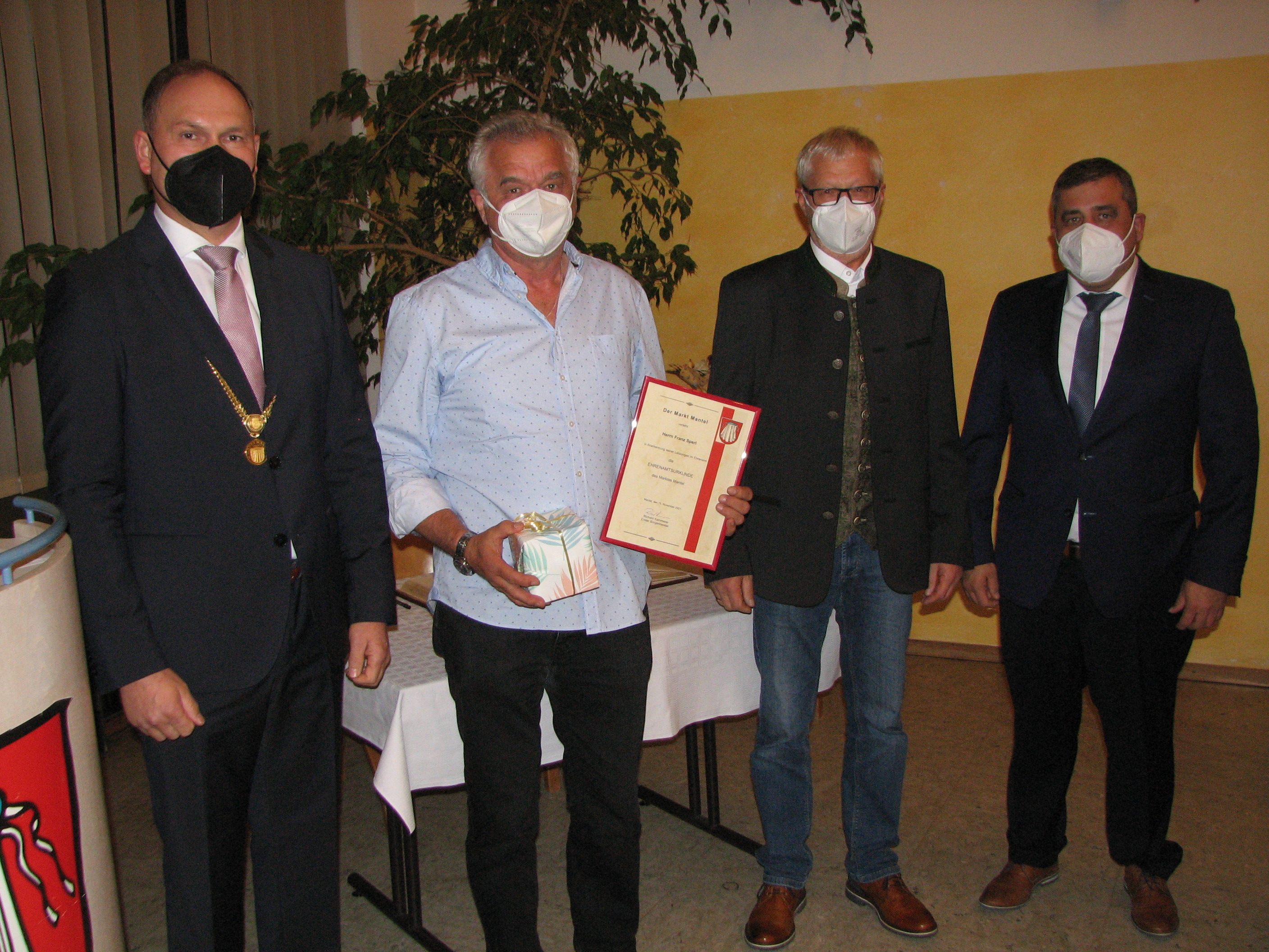 Franz Sperl bringt sich seit Jahrzehnten für die Jugendarbeit des örtlichen Fußballklubs ein, hat die F-Jugend gegründet, die Hans-Dorfner-Fußballschule nach Mantel gebracht und leitet diese seit 15 Jahren. Er hat sich seit über 20 Jahren als Leiter der „Ü50“ einen Namen gemacht, bei zwei Vereinsjubiläen vorbildlich die Leitung übernommen und die „Fußball-Marktmeisterschaft ins Leben gerufen. Seit 1995 ist er als Beisitzer aktiv bei der Selbsthilfe Mantel, sitzt seit vielen Jahren in der Vorstandschaft des Rauchklubs und organisiert die sehr beliebten Tagesausflüge.