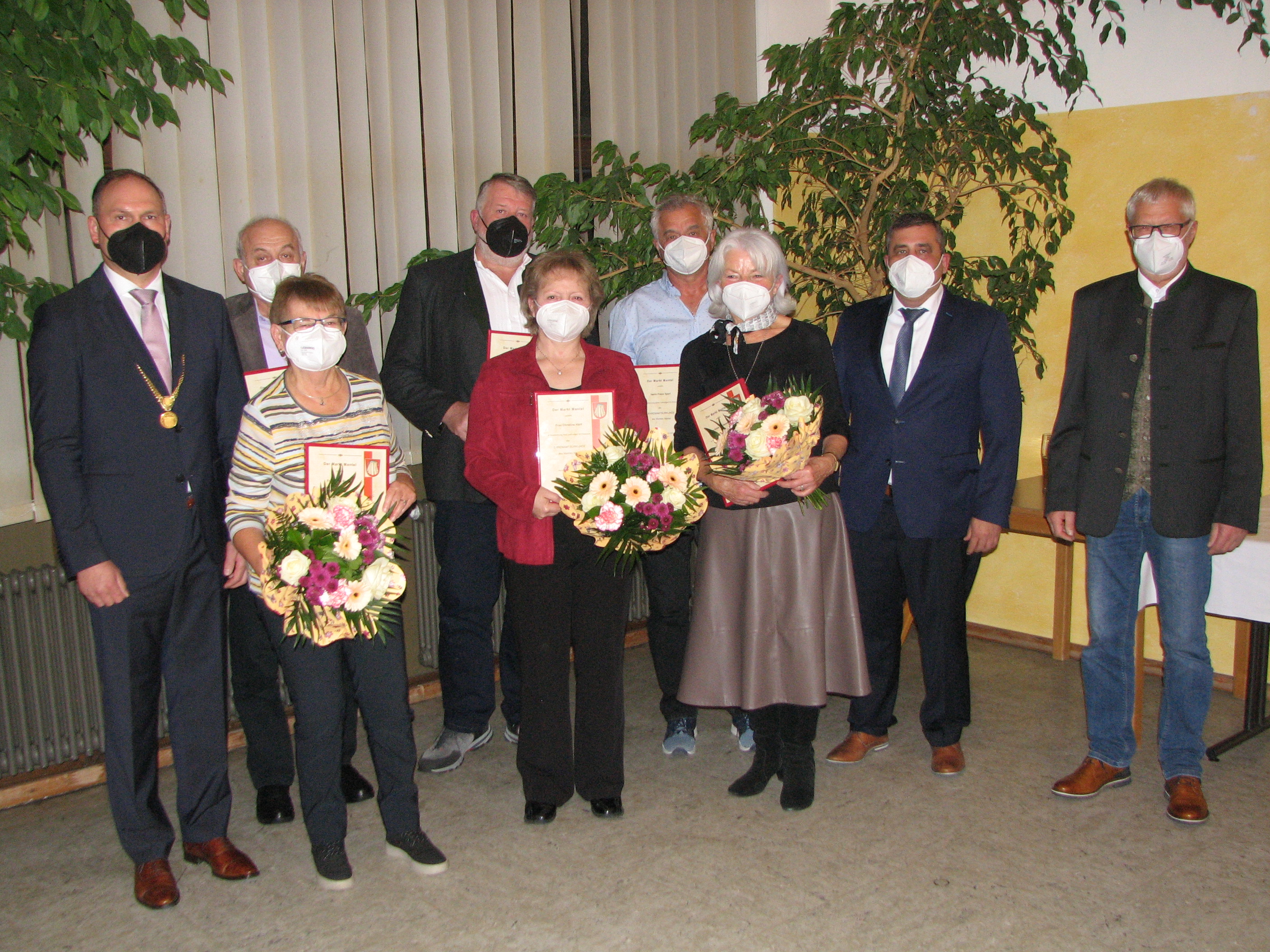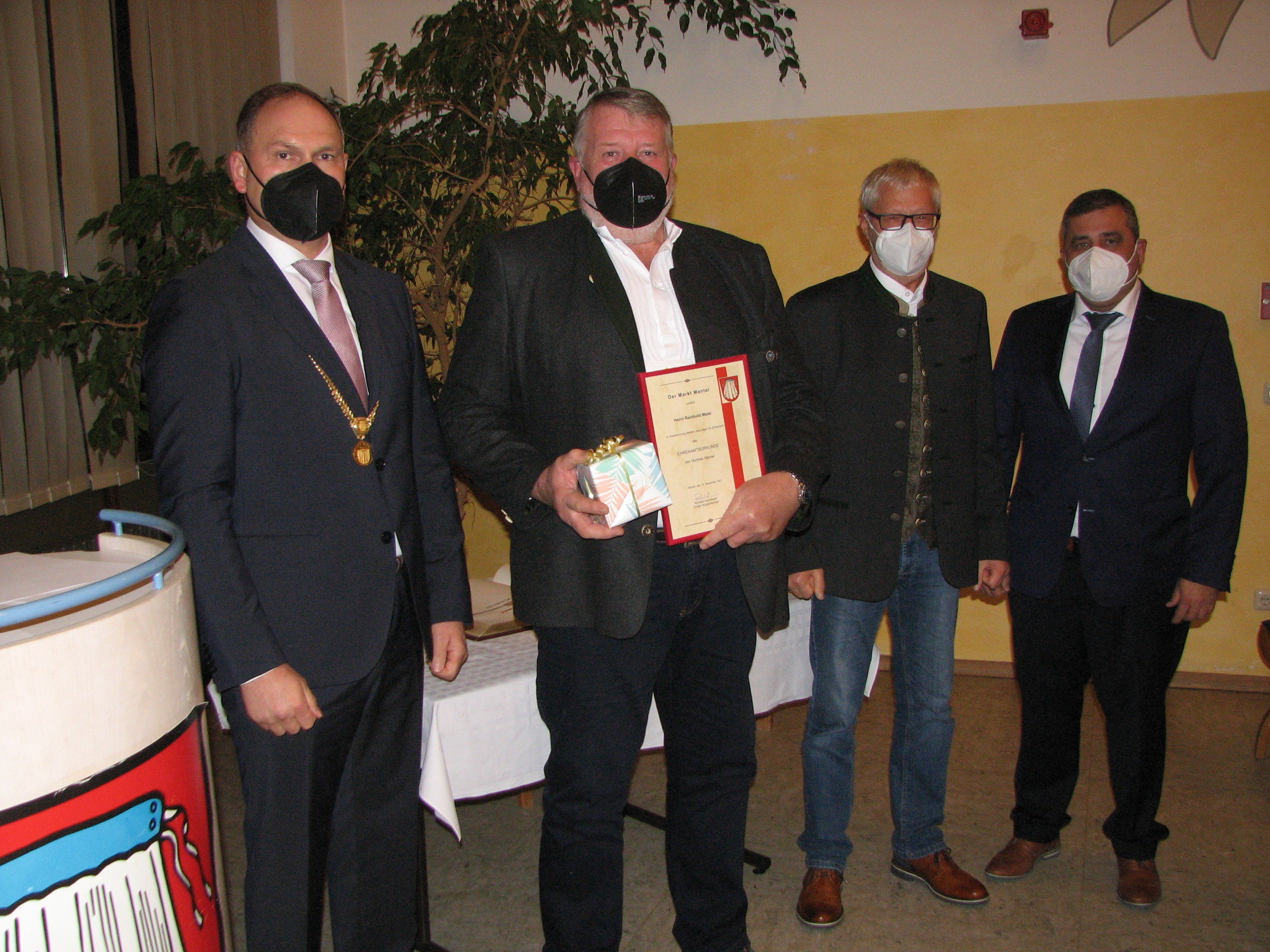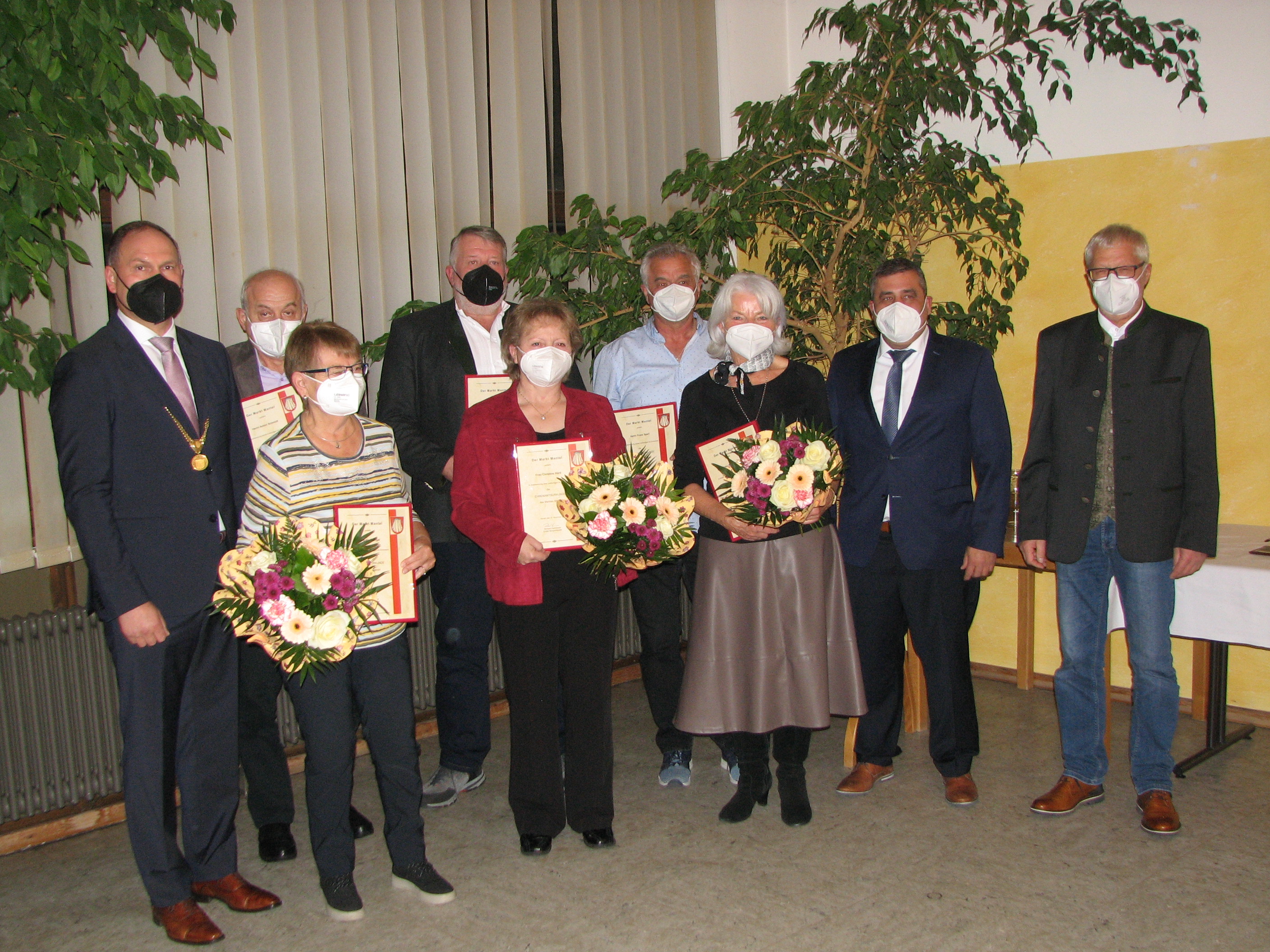 Sechs verdiente Bürger der Marktgemeinde zeichnete Bürgermeister Richard Kammerer mit Ehrenamtsurkunden aus. Die Veranstaltung in der Mehrzweckhalle fand bereits zum neunten Male statt und wurde von der OWV Hackbrettgruppe musikalisch umrahmt. „Das Ehrenamt hat im Markt Mantel in knapp 50 Vereinen und Verbänden eine lange Tradition. Träger der Ehrenamtsurkunde sind leuchtende Beispiele für bürgerliches Engagement im Ehrenamt und verkörpern Werte wie Solidarität, Pflichterfüllung und Dienst am Mitmenschen“, begann der Bürgermeister seine Festrede. Zu den Ehrenamtsurkunden überreichten Kammerer und seine Stellvertreter Siegfried Janner und Johann Gurdan ein kleines Präsent. Die Frauen erhielten zusätzlich einen Blumenstrauß.
