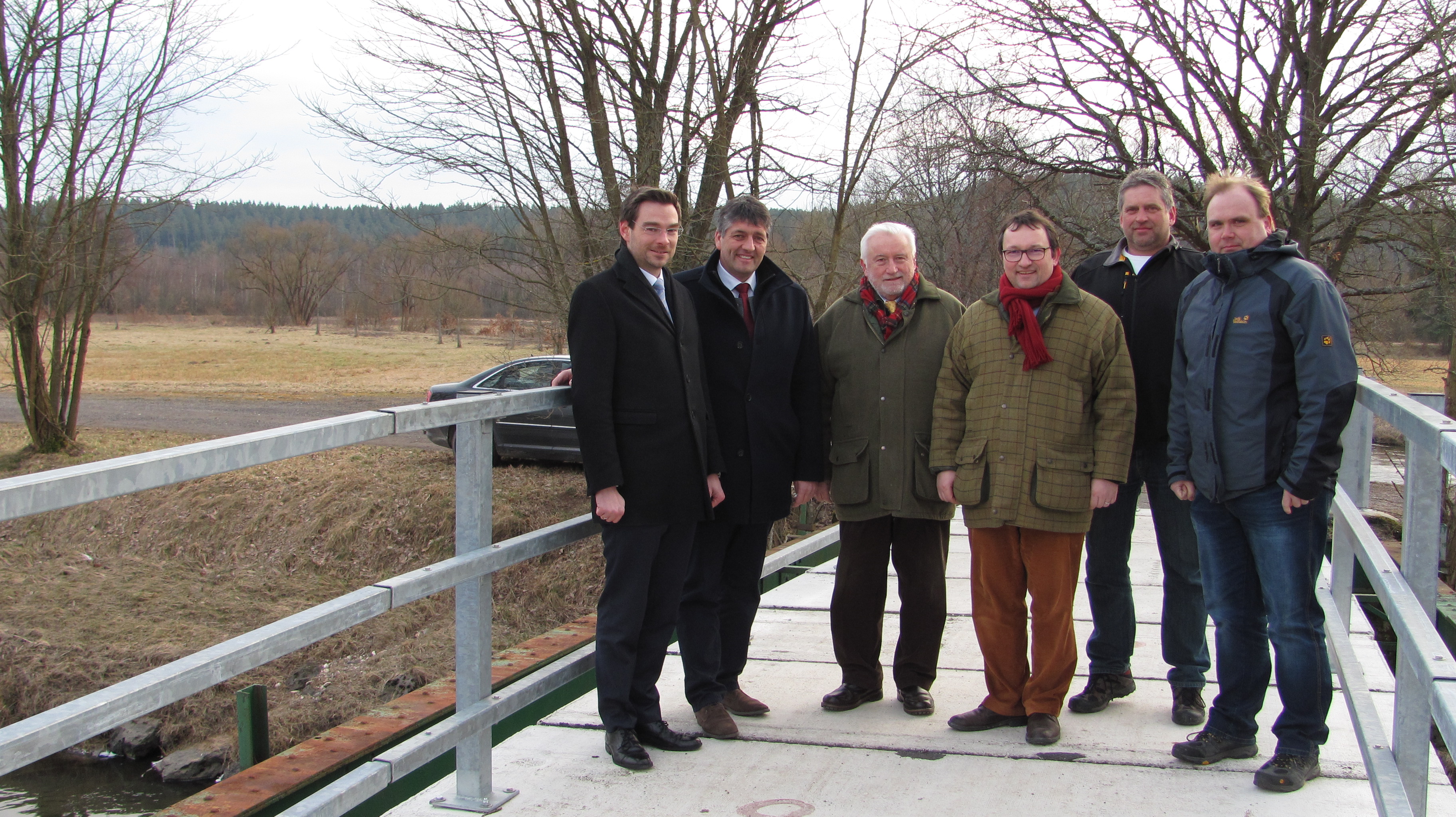 Zu einem fast historischen Termin trafen sich am Montag Bürgermeister Dr. Stephan Oetzinger aus Mantel, Bürgermeister Edgar Knobloch aus Grafenwöhr, die Jagdpächter Dr. Ulrich Schmid und Ruppert Schmid und Jagdvorsteher Matthias Kohl aus Mantel und Jagdvorsteher Kurt Hubmann für das Gemeinschaftsjagdrevier Hütten an der Brücke über die Haidenaab hinter dem Gut Grub. Grund des Treffens war die offizielle Angliederung des ehemaligen Eigenjagdreviers Grub an das Gemeinschaftsjagdrevier Hütten. Wie Bürgermeister Dr. Stephan Oetzinger und die Jagdvorsteher feststellen, kommt die Auflösung einer Eigenjagd sehr selten vor. Nach dem bayerischen Jagdgesetz lag mit 87,5 Hektar die Gruber Eigenjagd unter der erforderlichen Mindestgröße für ein Jagdrevier. Normalerweise wäre ein Drittel des Gruber Jagd nach Mantel gekommen und zwei Drittel zur Gemeinschaftsjagd Hütten. Aber wegen der geographisch schwierigen Lage und nachdem das Manteler Jagdrevier mit 930 Hektar sehr groß ist, waren sich der Markt Mantel und die Stadt Grafenwöhr mit ihren Jagdgenossenschaften Mantel und Hütten einig, das Eigenjagdrevier Grub an das Gemeinschaftsjagdrevier Hütten anzugliedern. Die Jagdpächter Dr. Ulrich Schmid und Ruppert Schmid aus Amberg waren ebenfalls einverstanden. Damit ist der Fortbestand der Gemeinschaftsjagd Hütten auf lange Zeit im Bestand gesichert. Wie alle Beteiligten bestätigten war auch die untere Jagdbehörde im Landratsamt sehr kooperativ und hat unbürokratisch gehandelt. Matthias Kohl und Kurt Hubman bestätigten, dass ihre beiden Jagdgenossenschaften den Beschluss einstimmig gefasst haben. Bürgermeister Edgar Knobloch aus Grafenwöhr bemerkte, dass die Stadt Grafenwöhr und der Markt Mantel hier kein Kirchturmdenken bewiesen haben, sondern weitsichtig handelten. Rechtskräftig wird die Maßnahme am 1. April 2018.