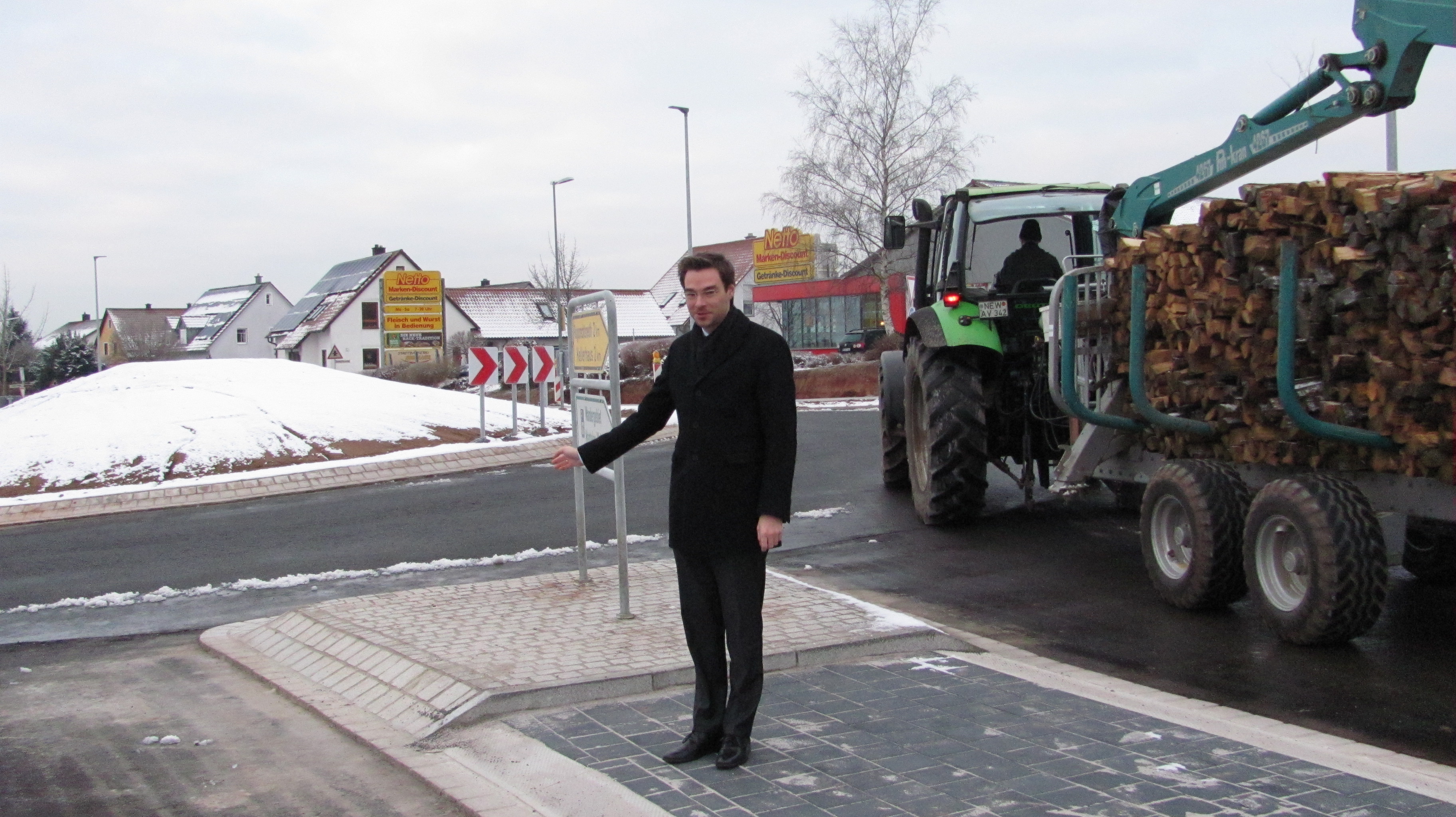 Viele hatten bereits sehnsüchtig auf seine Eröffnung gewartet, seit dem 3. Adventswochenende ist er für den Verkehr freigegeben: der neue Kreisverkehr beim Netto an der Weidener Straße. „Wir waren sehr gut im Zeitplan, leider machte uns aber die Witterung einen Strich durch die Rechnung,“ so Erster Bürgermeister Dr. Stephan Oetzinger. Trotz alledem gelang die Verkehrsfreigabe noch vor Weihnachten, wie dies geplant war. Mit dem neuen Kreisverkehr, der im Zuge des ersten Bauabschnitts des Baugebiets Schlossäcker geschaffen wurde, verfolgt der Markt zwei zentrale Ziele laut Oetzinger: zum einen dient er der Anbindung des Baugebiets und soll den Verkehrsfluss verteilen, zum anderen dient er auch dazu, den Verkehr in der Weidener Straße zu bremsen – ein Nebeneffekt, der jedoch insbesondere vielen Anwohnern seit vielen Jahren ein Anliegen war.