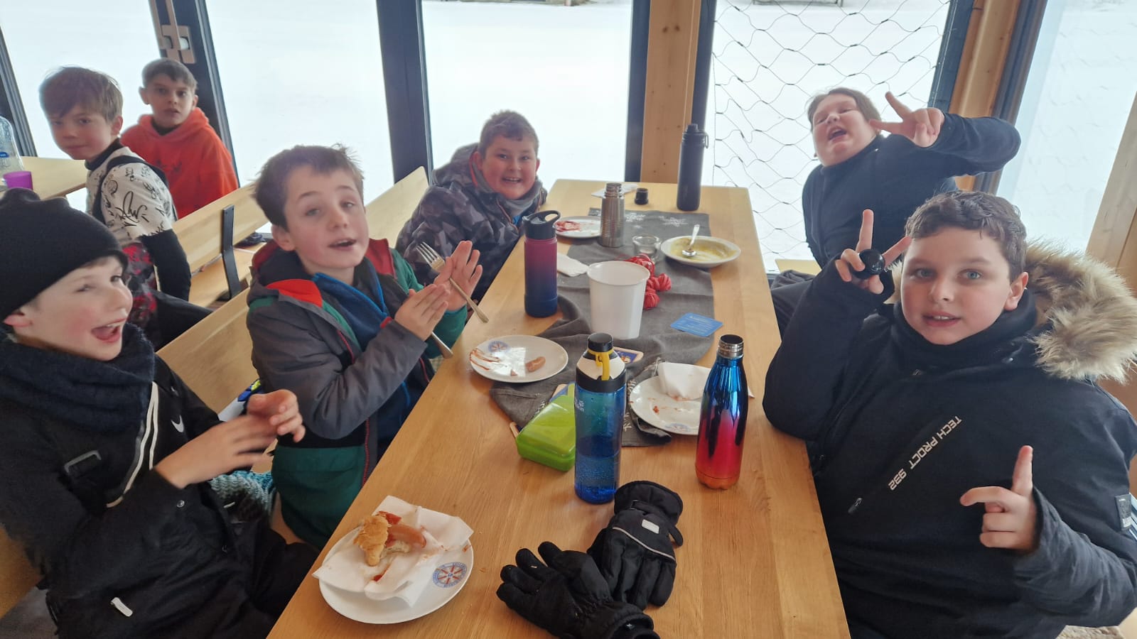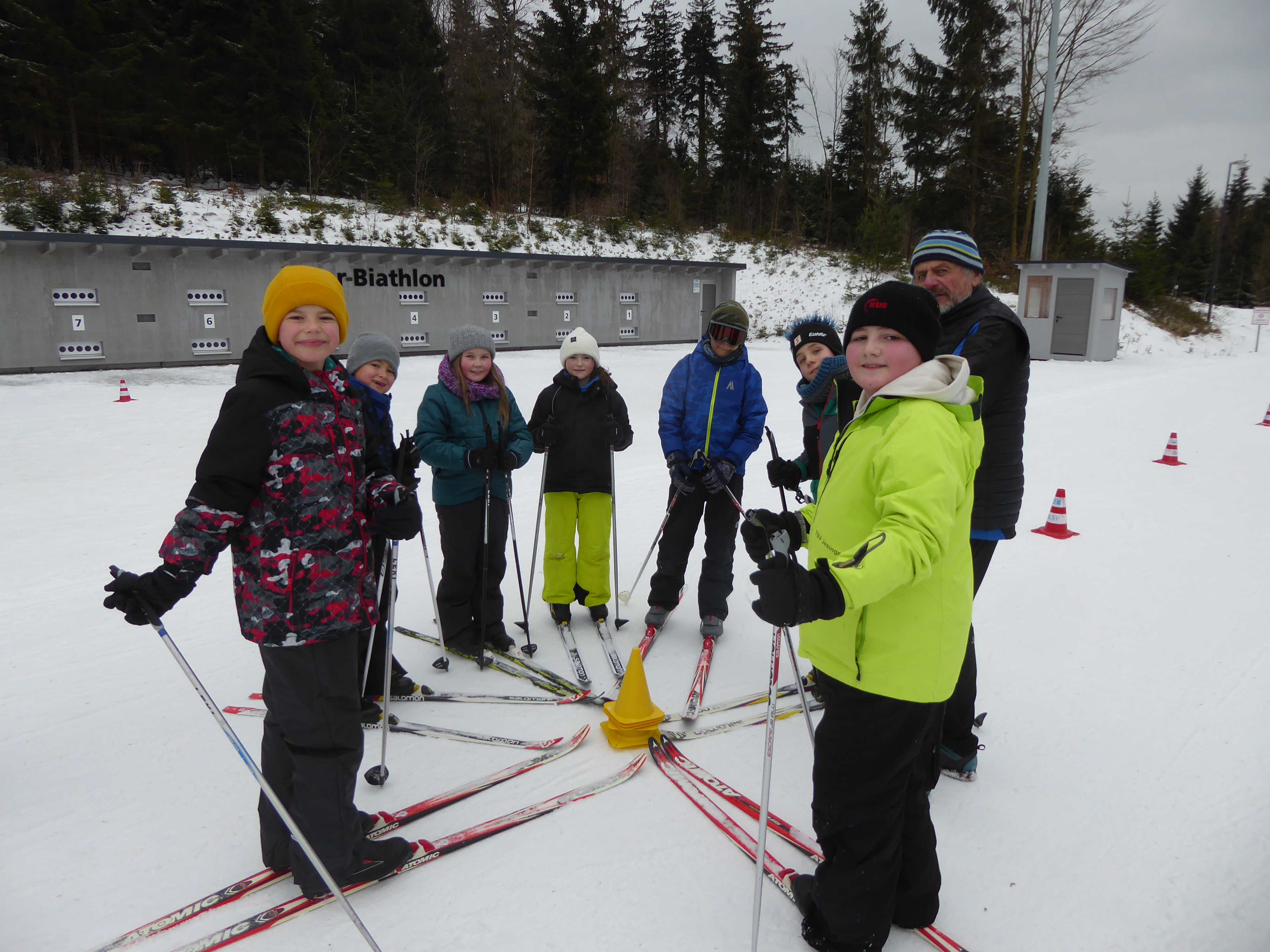 Im Klassenkalender der 4. Klasse der Grundschule Mantel stand der Termin schon ewig: 22. Januar 2024: Wintersportaktionstag Langlaufen. Dann war es endlich soweit und auch der Wettergott hatte ein Einsehen. Warm eingepackt mit Mütze, Handschuhen und Schal ging es mit den Lehrerinnen Frau Renner, Frau Ullamann und Frau Kreuzer im Bus zum Langlaufzentrum Silberhütte. Dort angekommen erhielt jedes Kind passende Skischuhe und Ski. Die freiwilligen Helfer Herr Werner, Herr Moller und Langlaufweltmeister Herr Hierlmeier zeigten den Schülerinnen und Schülern die Grundtechniken des klassischen Skilanglaufs und übten mit ihnen auch das Hinfallen und Aufstehen mit Skiern. Ob in der Ebene, beim Abfahren in der Hocke oder auch beim „Treppensteigen“ den Berg hinauf, jeder gab sein Bestes. Die Kinder hatten Spaß, auch wenn der eine oder andere Ausrutscher dabei war und Durchhaltevermögen gefragt war. Jeder lernte viel und bewegte sich zunehmend sicher auf den schmalen Brettern. Einige konnten sogar Runden in der gut beschneiten Loipe drehen. Das wirklich leckere Mittagessen im Kiosk hatten sich alle verdient. Den Abschluss des erlebnis- und bewegungsreichen Tages bildete eine kurze Wanderung durch die winterliche Landschaft zur Deutsch-tschechischen Grenze, bevor der Bus alle gesund zurück zur Schule brachte.