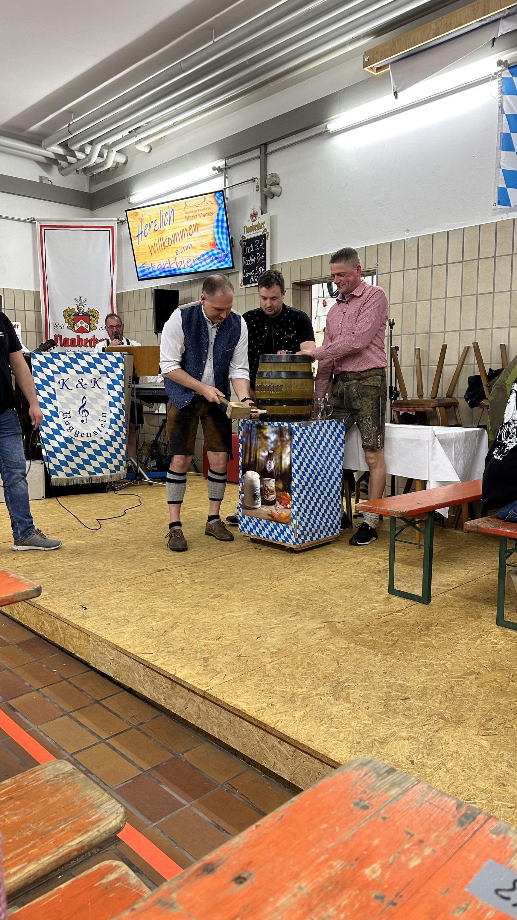 Am Samstag war beim 17. Starkbierfest im Feuerwehrhaus auch der allerletzte Platz besetzt und auch die Bar war schon ab 21 Uhr bestens besucht. Für Stimmung sorgte das „Original Krautkopf-Duo“ mit Schunkelliedern wie: „In München steht ein Hofbräuhaus“ oder auch Partyhits: „Die Hände zum Himmel“. Für drei Euro war die Halbe Nabbecker Doppelbock ein Schnäppchen und auch Limo gab es den halben Liter für 2,50. Brotzeiten wie Geräuchertes, Kraut und Würste, Käse, Brezen, Z´sammbatzer oder Wurstsalat waren die richtige Unterlage. Der Wurstsalat war ganz schnell ausverkauft. Ganz ungewohnt war dieses Fest für Bürgermeister Richard Kammerer. Bei den 16 Festen vorher war er immer als stellvertretender Vorsitzender der Feuerwehr bei der Vorbereitung des Sketches mit dabei und sorgte auch als Schauspieler für Stimmung. Das erste Mal nun musste er sich selbst überraschen lassen, was da auf ihn zukommt. Er musste auch einiges aushalten. Als er mal kurz unterwegs war und sich versehentlich auf einen anderen Platz setzte, forderten die Musiker die Bauhofmitarbeiter auf, den Platz von Richard Kammerer zu kennzeichnen und so wurde mit einem roten Band eine Linie zum Bürgermeisterplatz gezogen und der mit einem Kreuz gekennzeichnet, unter dem Gelächter der Gäste. Es feierten auch zweiter Bürgermeister Siegfried Janner, zahlreiche Marktgemeinderätinnen und Räte mit und auch die befreundeten Feuerwehren aus Weiden, Hütten und Klobenreuth. Mit einer starken Truppe waren auch der Mantler Stammtisch, der Zapfwellenstammtisch die Stammtischfreunde Xantl und die HVO Haidenaabtal vertreten. Beim Sketch nahmen dann Andreas Fenzl als Bürgermeister Kammerer, Thomas Lindner als Dorfpolizist, Simon Weber als Oma Moser, Max Bock als Feuerwehrkommandant, Martin Göppl als Mesner und Feuerwehrvorstand Matthiay Ay bei einem Wirtshausstammtisch das Ortsgeschehen aufs Korn. „Bei der letzten „Geheimratssitzung“ wurde der Kauf einer Kehrmaschine beschlossen damit der Hundsdreck beseitigt werden kann“. Beim Kartenspiel hatte natürlich der Bürgermeister immer die ganze Hand voller Trümpfe. Ein Skandal war, dass nachts jemand eine Herde Schafe zum Kreisverkehr getrieben hatte, die dann die Blumenwiese dort kahlgefressen haben. Der Dorfpolizist konnte keinen Täter ermitteln weil er nach Meinung seiner Stammtischfreunde entweder nur beim Metzger Pöll sitzt und Leberkässemmeln isst oder im Rathaus rumhockt. „Das ist alles dienstlich, wehrte sich der Polizist“. Thema war auch der Feuerwehrhaus An- und Umbau, wo ein paar „Gscheite“ im Gemeidrat immer alles durcheinanderbringen. Oma Moser die in der Wirtsstube am Kartoffelschälen für die Sonntagsknödel war mischte kräftig mit, vor allen bei den Schnapsrunden. Sie hatte zwar ein neues Hörgerät aber ohne Batterie und so lief die Diskussion sehr lautstark ab. Nach fortgeschrittenem Alkoholkonsum stellte sich heraus dass die Übeltäterin mit den Schafen die Moser-Oma selbst war. „Es wird Zeit dass die Politiker zusammenhalten, ob in Mantel oder beim Ötzi in München“, war das Fazit. Feuerwehrvorstand Matthias Ay löste dann die Stammtischrunde auf weil ja alle dann zum Starkbierfest der Feuerwehr gehen mussten. Die Akteure erhielten begeisterten Beifall und wie jedes Jahr musste natürlich der Bürgermeister die Schauspieler in die Bar einladen. Vor dem Auftritt hatte der Mesner mit dem Klingelbeutel bei den Gästen gesammelt, die Spenden kommen der Jugendfeuerwehr zugute.