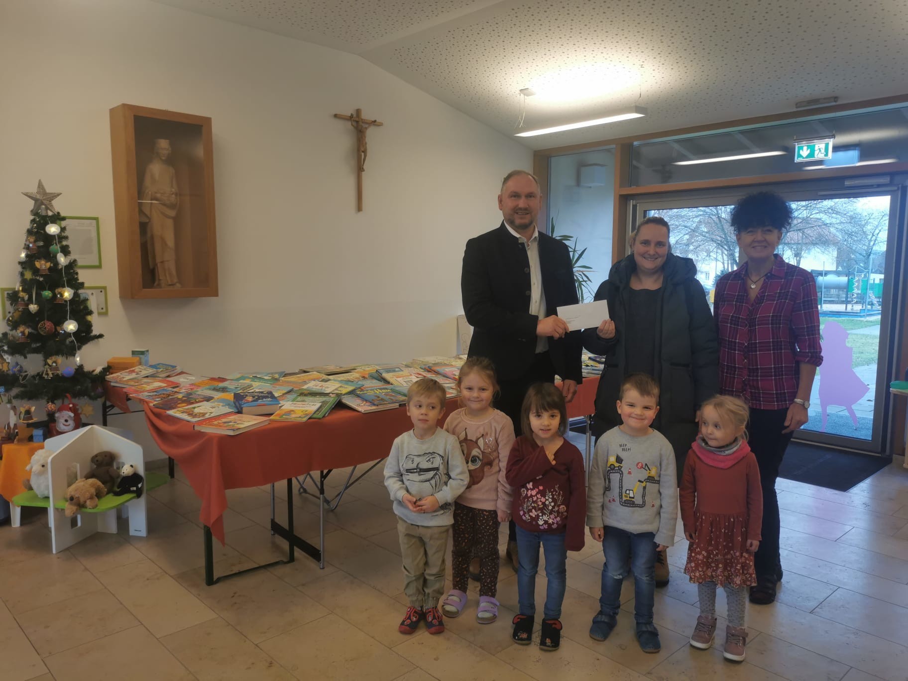Anfang Dezember brachte Richard Kammerer, erster Bürgermeister, dem Elternbeirat des Kinderhauses St. Elisabeth ein vorgezogenes Weihnachtsgeschenk in Form einer großzügigen Spende. Vera Maruhn, Vorsitzende des Elternbeirats, freute sich sehr darüber und erklärte den Verwendungszweck: „Die Kinder wünschen sich neue Fahrzeuge für den Garten.“ Sie reichte das Kuvert direkt an Maria, Erzieherin in der Roten Gruppe weiter, die für dieses Vorhaben einen Flohmarkt im Auditorium organisiert hatte. Schon die Kleinsten zeigten ihr Talent beim Verkauf von alten Büchern und Spielsachen aus dem Kindergarten. Durch die Spende und den Erlös konnten im Januar drei neue Fahrzeuge angeschafft werden.