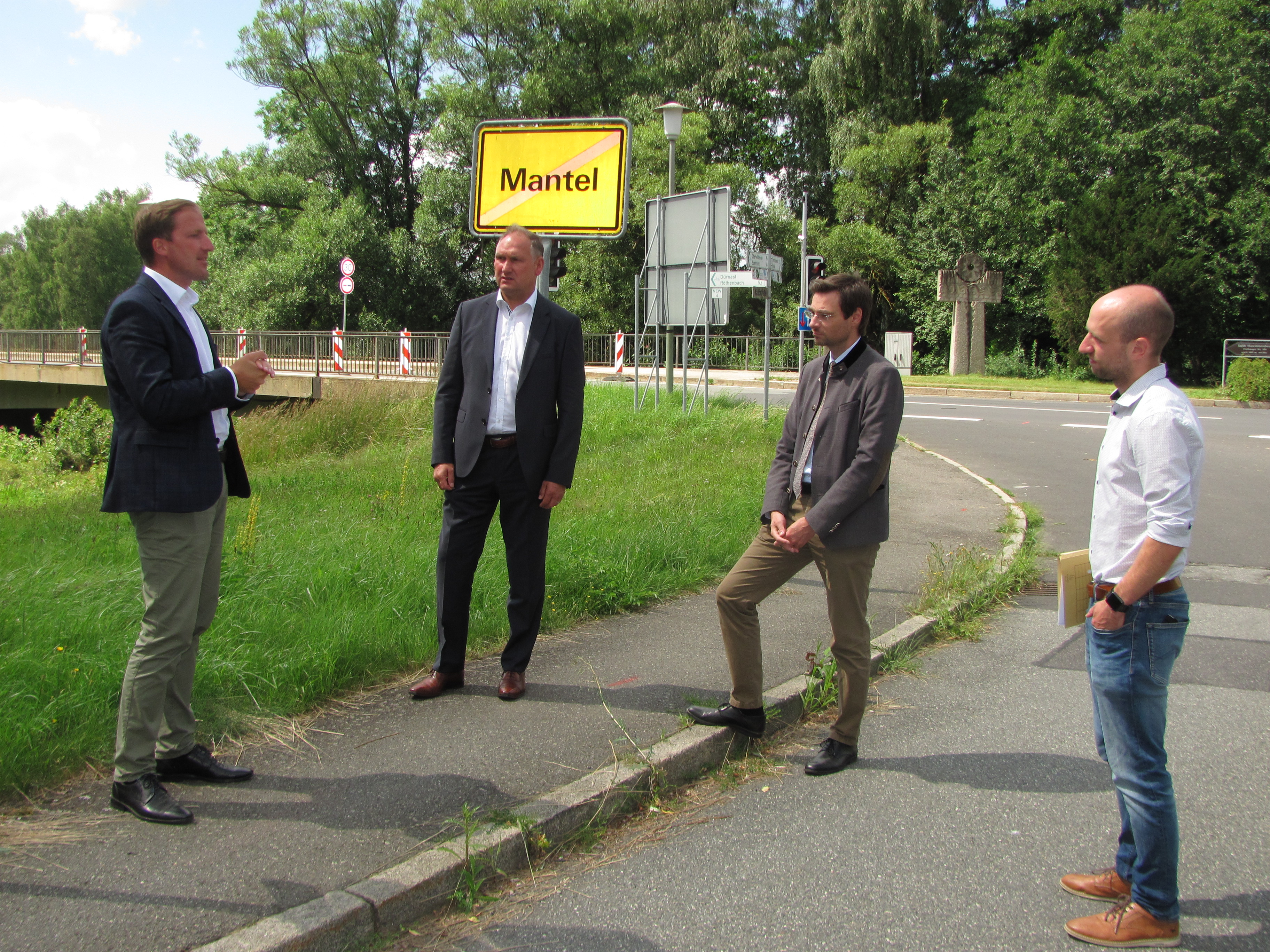„Die Planungen zur Erneuerung der Haidenaabbrücke Mantel sind abgeschlossen, derzeit laufen die Bauvorbereitung auf Hochtouren,“ konnten der neue Bereichsleiter des Staatlichen Bauamts Tobias Bäumler und Felix Steghöfer im Rahmen eines von Landtagsabgeordneten Dr. Stephan Oetzinger organisierten Termins mit Bürgermeister Richard Kammerer berichten. Aktuell werden Grunderwerbsverhandlungen geführt und die notwendigen Erlaubnisse und Genehmigungen eingeholt. „Der lang ersehnte Baubeginn rückt damit in greifbare Nähe, das freut mich besonders, da die derzeitige einstreifige Befahrung ein Nadelöhr auf einer wichtigen Ost-West-Verbindung des Landkreises darstellt,“ unterstrich Dr. Oetzinger die Wichtigkeit der Maßnahme.