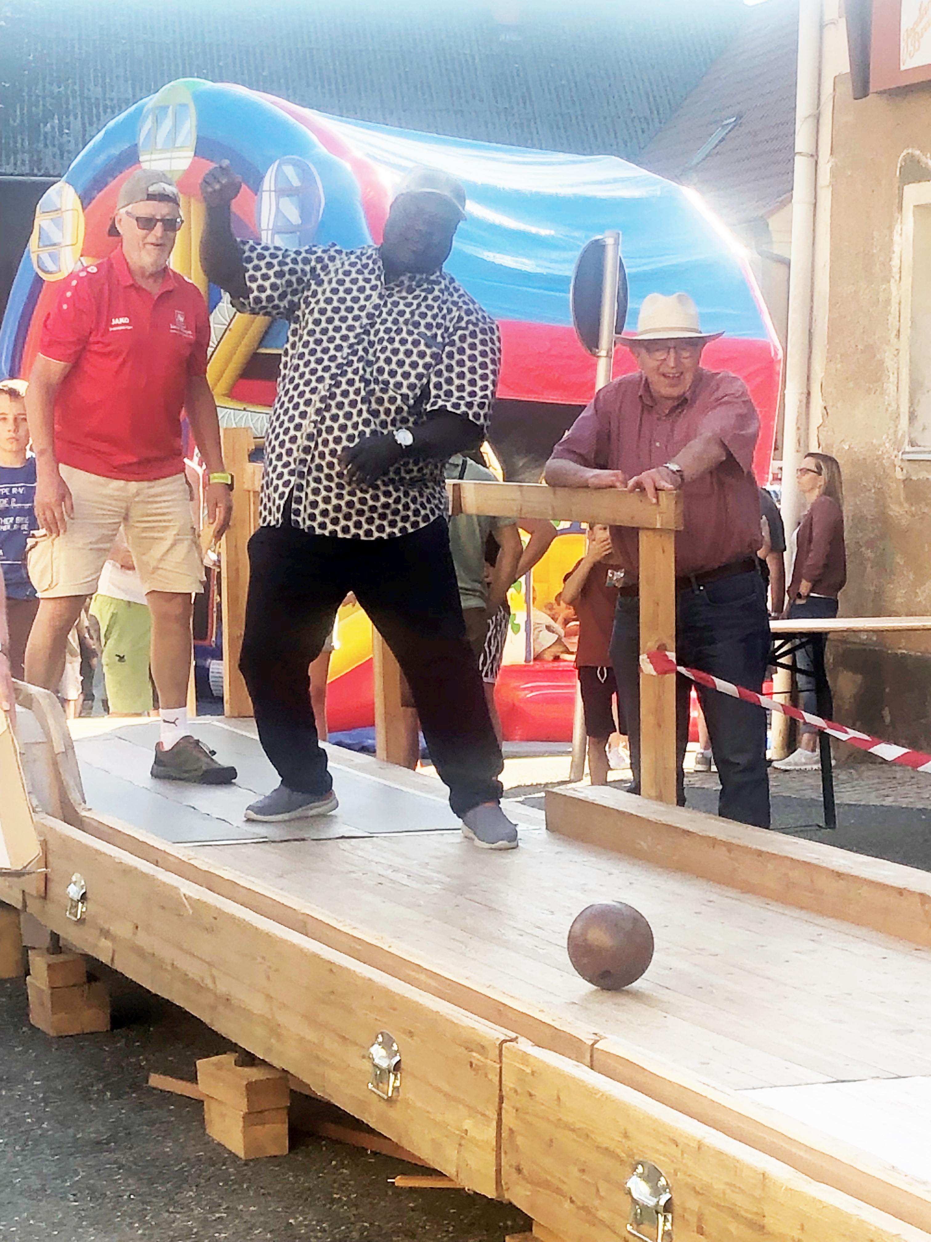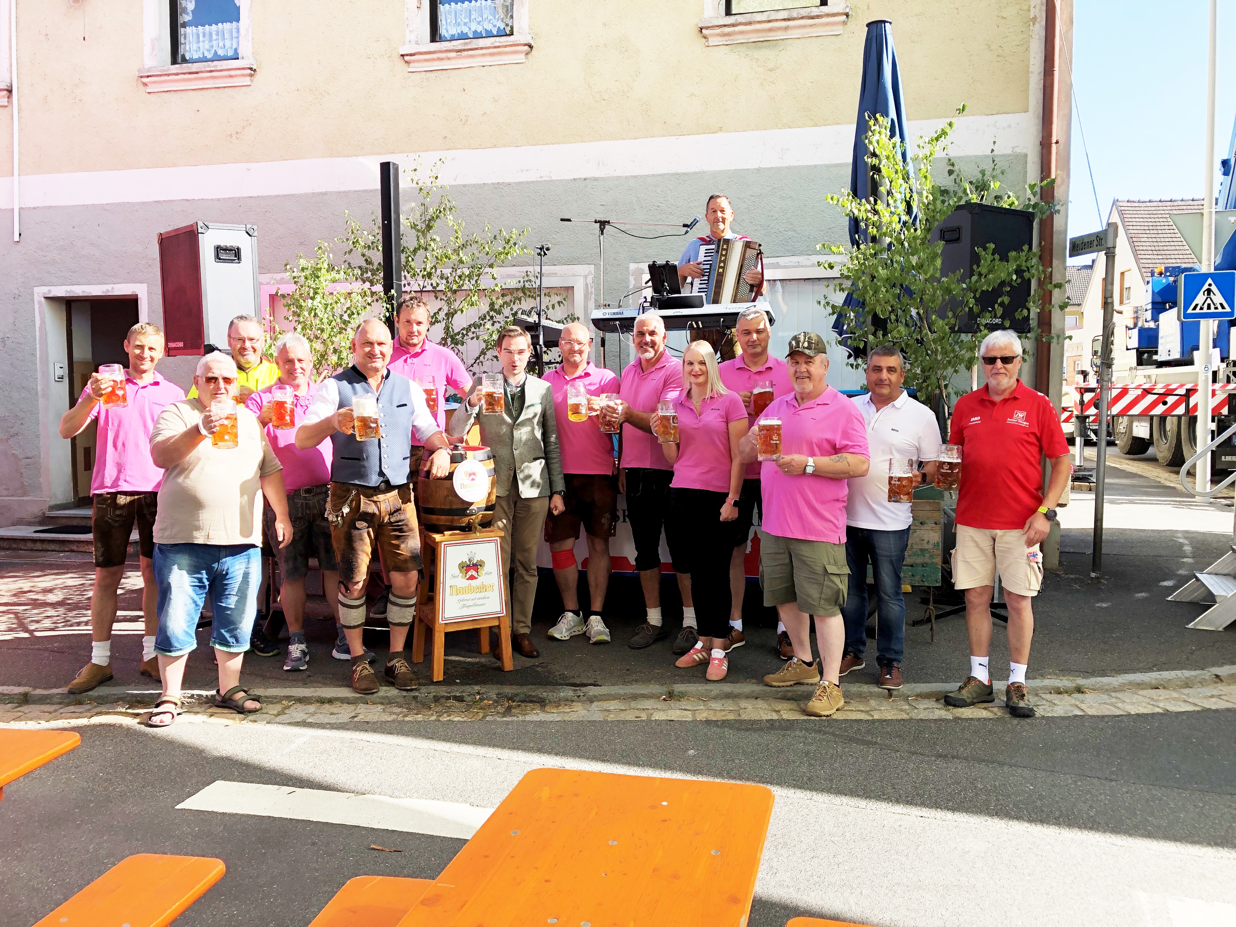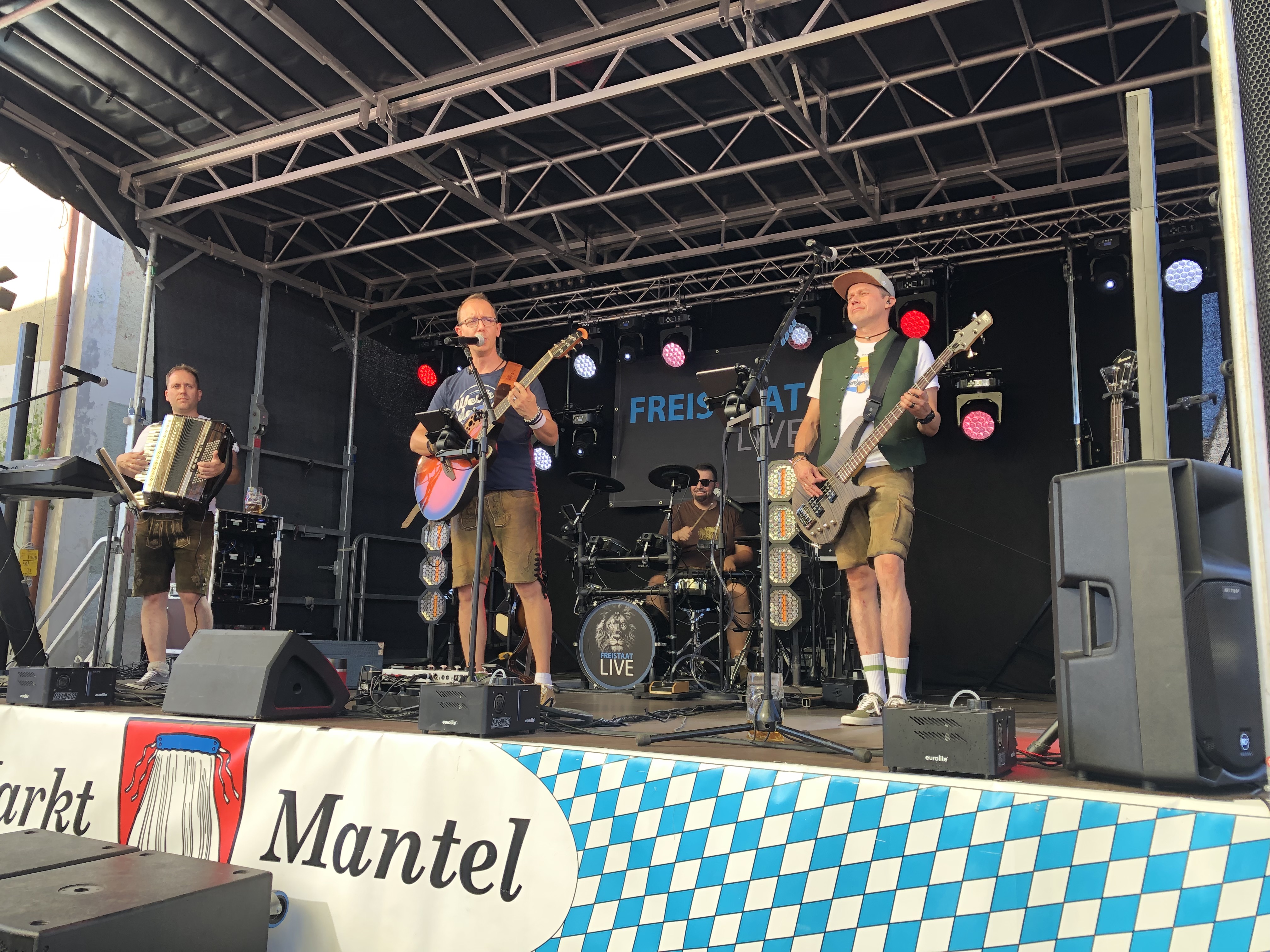 Um zehn Uhr beim Beginn des 42. Manteler Bürgerfestes am Sonntag lachte die Sonne vom wolkenlos blauen Himmel. Diesmal brauchte Bürgermeister Richard Kammerer drei Schläge um das erste Fass Festbier der Brauerei Naabeck anzuzapfen und ein paar Spritzer gab es auch. „Die Spritzer sind ein gutes Zeichen denn voriges Jahr spritzte es beim Bier nicht dafür hatten wir dann Abend kräftigen Regen“, so Kammerer. Das Jahr zu vor war es brütend heiß und diesen Sonntag mit 23 bis 25 Grad das ideale Bürgerfestwetter „das haben wir nun auch mal verdienst“ so der Rathauschef. Schlage stehen hieß es dann am Weißwurststand und die Servicekräfte flitzen durch die Reihen damit jeder schnell sein Weizen oder Bier zum Frühschoppen bekam. Hans Schneeberger spielte zünftig bis zum Nachmittag auf. Um die Umwelt zu schützen, gab es ein Geschirrmobil. Für fünf Euro Pfand konnte sich jeder Porzellanteller und Besteck holen, bei Rückgabe wurde es sofort wieder gespült. Etwas schmerzlich war der neue Bierpreis von 8.80 Euro. Schwerstarbeit leistete die Feuerwehr am Getränkeausschank. Kulinarisch war einiges geboten. Bergbratwürste, Steaks, Pommes, Dotsch mit Beilagen fanden ihre Abnehmer. Erfrischendes Eis, süße oder pikante Crepes, Fisch Käse und Brezen und geräucherter Käse rundeten das Angebot ab. Eine lange Schlange stand ab 17 Uhr an, um einen Burger vom Holzkohlengrill zu ergattern, Gyros mundete ebenfalls. Exotisch waren indische Teigtaschen, „Samosas“ mit Joghurt Dip. Neben dem Festbierausschank und Erfrischungsgetränken gab es eine weitere Bar mit Weizen und Pils. Im Posthof schenkte die CSU Wein und Schnäpse aus und die JU betrieb zur späteren Stunde die Cocktailbar wo sich dann alle die um 22 Uhr nicht heimgehen wollten, zum „Nachbürgerfest“ trafen. Damit die Eltern in Ruhe feiern konnten gab es jede Menge Vergnügungen für die Kinder. Bei der Mini-Eisstockbahn konnte man Spiele gewinnen, bunte Luftballons flogen bei der Kolpingsfamilie in die Luft. Die Kinder konnten sich mit Glitzertattoos verschönern lasen Spannung beim Angelspiel erleben oder mit dem Karussell eine Runde drehen. Beliebt sind auch immer die Fahrten mit dem Manteler Bockl. Spickern auf Luftballons und erfolgreiche Würfe auf der Holzkegelbahn gehörten ebenfalls dazu. Pfarrvikar Robert Amandu hatte wohl zum ersten Mal eine Kegelkugel in der Hand und hatte sichtlich Spaß am Spiel. Die Wanderfreunde und die SPD hatten ein wachsames Auge auf die beiden Hüpfburgen, bei dem Gewusel war das keine leichte Aufgabe. Um 16 Uhr war bereits der letzte Krümell der über 80 gespendeten Torten und Kuchen verspeist. Die Partyband Freistaat Live spielte nachmittags noch bayerische Musik und zu späterer Stunde natürlich die derzeit gängigen Partysongs wie „Cordula grün“. Gegen 22 Uhr musste die zahlreichen Helfer dann den Marktplatz wieder räumen. Alle Vereine arbeiteten wieder harmonisch zusammen, um den Bürgern von Mantel und zahlreichen Gästen aus den umliegenden Orten ein tolles Bürgerfest zu bereiten. Fast alle Plätze waren mit Dächern beschaffet und ein großer Fallschirm, der von einem Krank gehalten wurde, sorgte in der Mitte des Marktplatzes für Sonnenschutz.