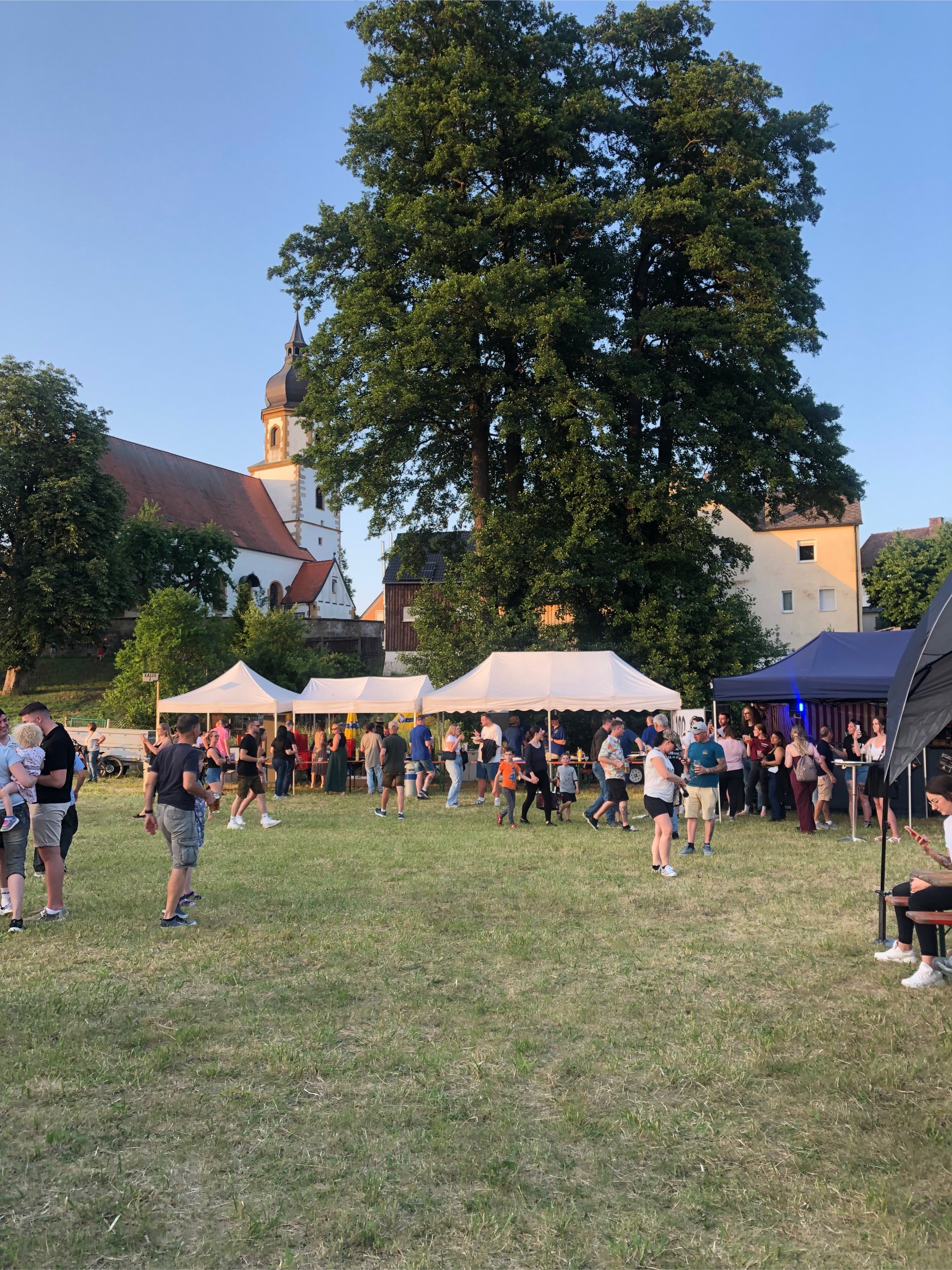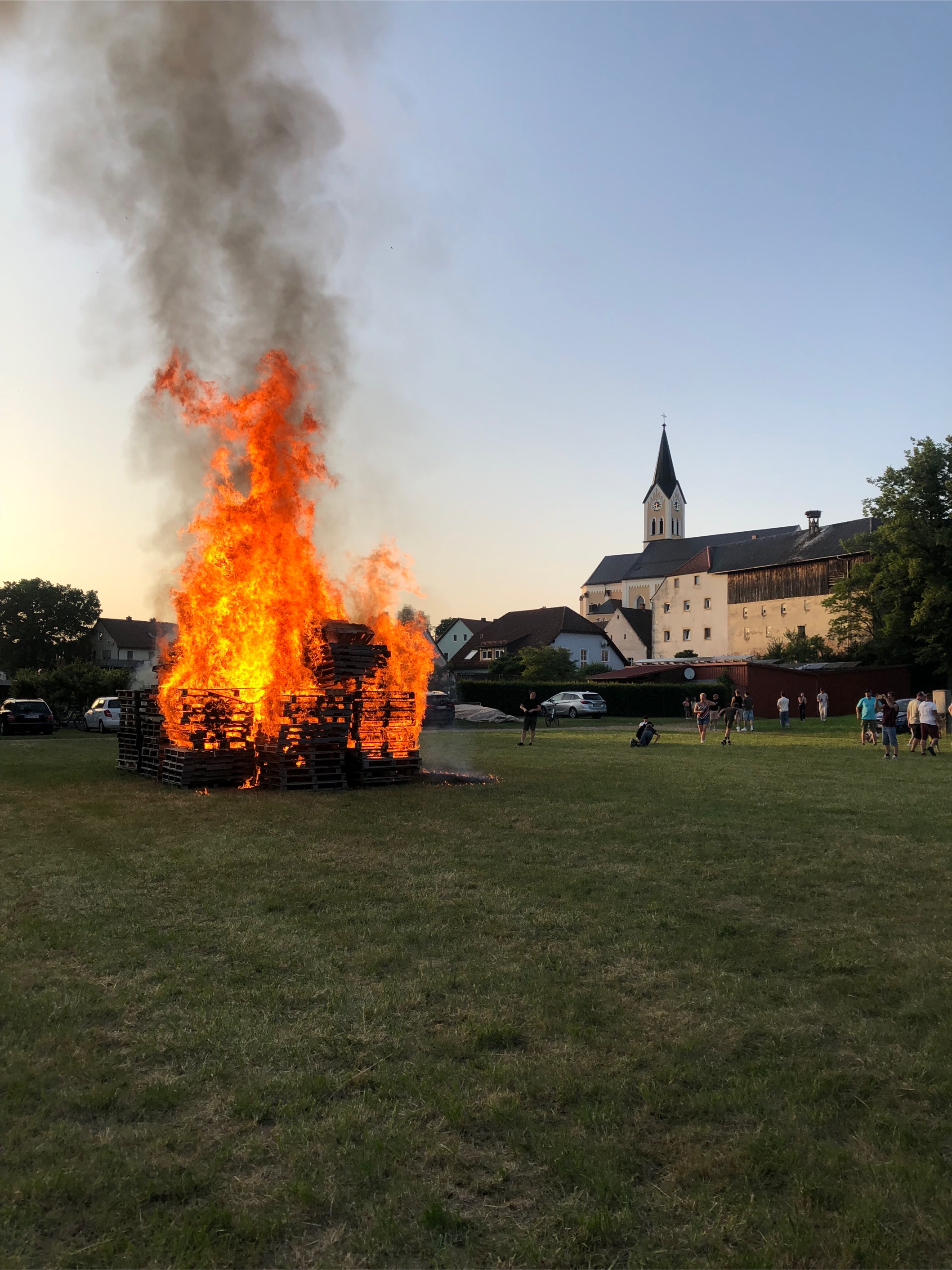 Einen traumhaften Sommerabend hatte der Mantler Stammtisch am Samstag beim Abbrennen des Johannisfeuers erwischt. Auf dem alten Festplatz unterhalb der Haidenaab waren schattige Plätze im Zelt und unter Pavillons sehr begehrt. Das Fest startete schon am Nachmittag. Die Kinder amüsierten sich beim Kinderschminken, im Sandkasten und beim Stockbrot backen oder freuten sich über ein Fruchteis. Zu Bier, Wein und alkoholfreien Erfrischungsgetränken wurden Xantl-Burger, Bratwurtstemmeln oder Pommes Frites serviert. Die Mannschaft beim Ausschank hatte alle Hände voll zu tun. Zu späterer Stunde war auch die Bar bestens besucht. Musiker Hans Schneeberger hatte moderne Schlager aber auch Oldies zum Mitsingen, mitklatschen oder auch tanzen auf Lager und sorgte so für beste Stimmung. Gegen 21 Uhr bekamen dann alle anwesenden Kinder Fackeln und durften mit Begeisterung und Stolz dann den aufgeschichteten riesigen Holzhaufen entzünden. Die Manteler Feuerwehr war vor Ort und hatte das Feuer im Blick. Das war gut so denn bei der Trockenheit breitete sich das Feuer auch im Gras aus. Die Feuerwehr löschte schnell mit einem Schlauch so dass das Johannisfeuer sich nicht ausbreiten konnte. Für Notfälle standen auch die Helfer vor Ort Haidenaabtal bereit. Das Team des Manteler Stammtisches hatte schon wie in den Jahren davor der Bevölkerung ein schönes Sommerfest für die ganze Familie bereitet.