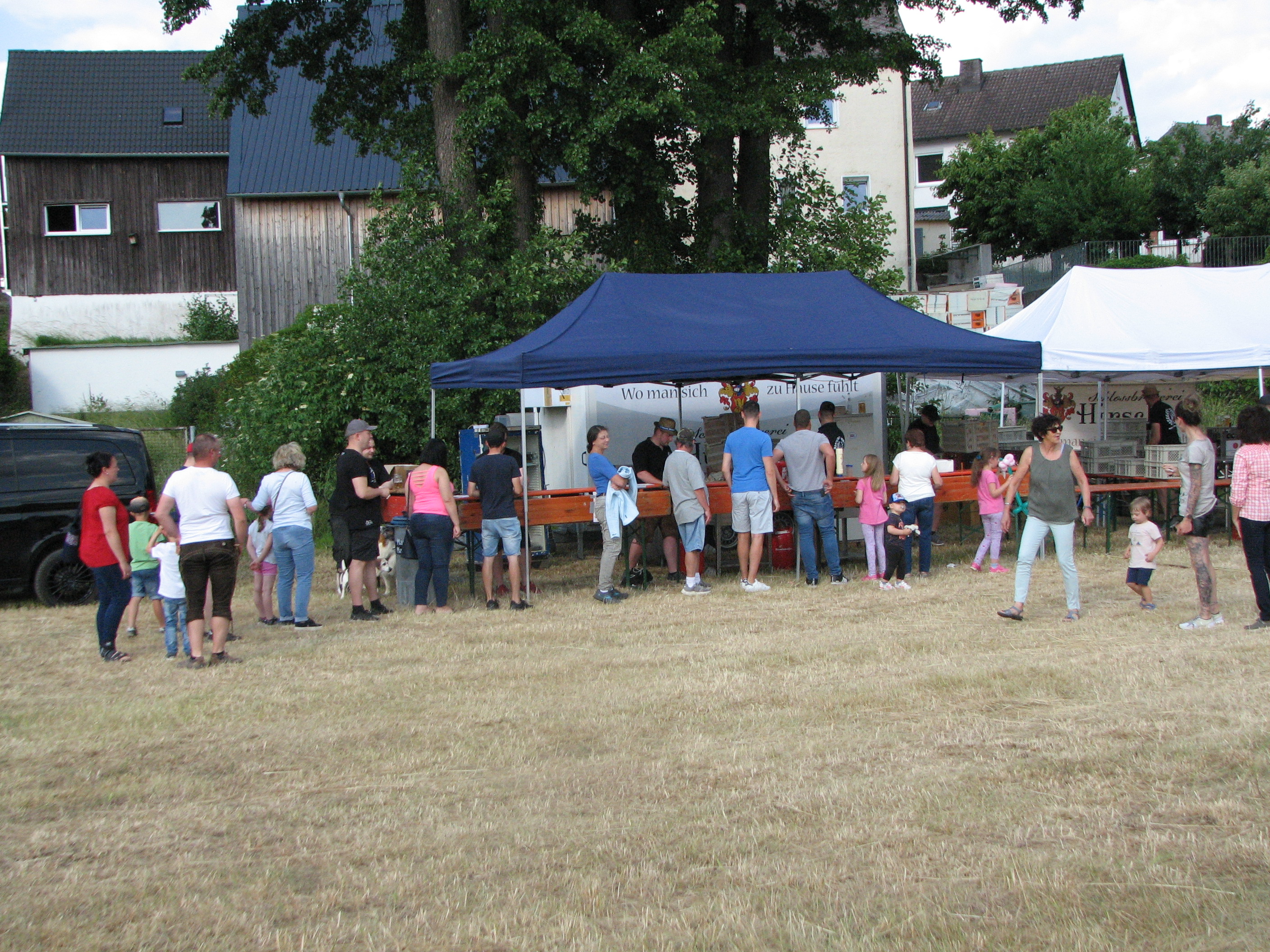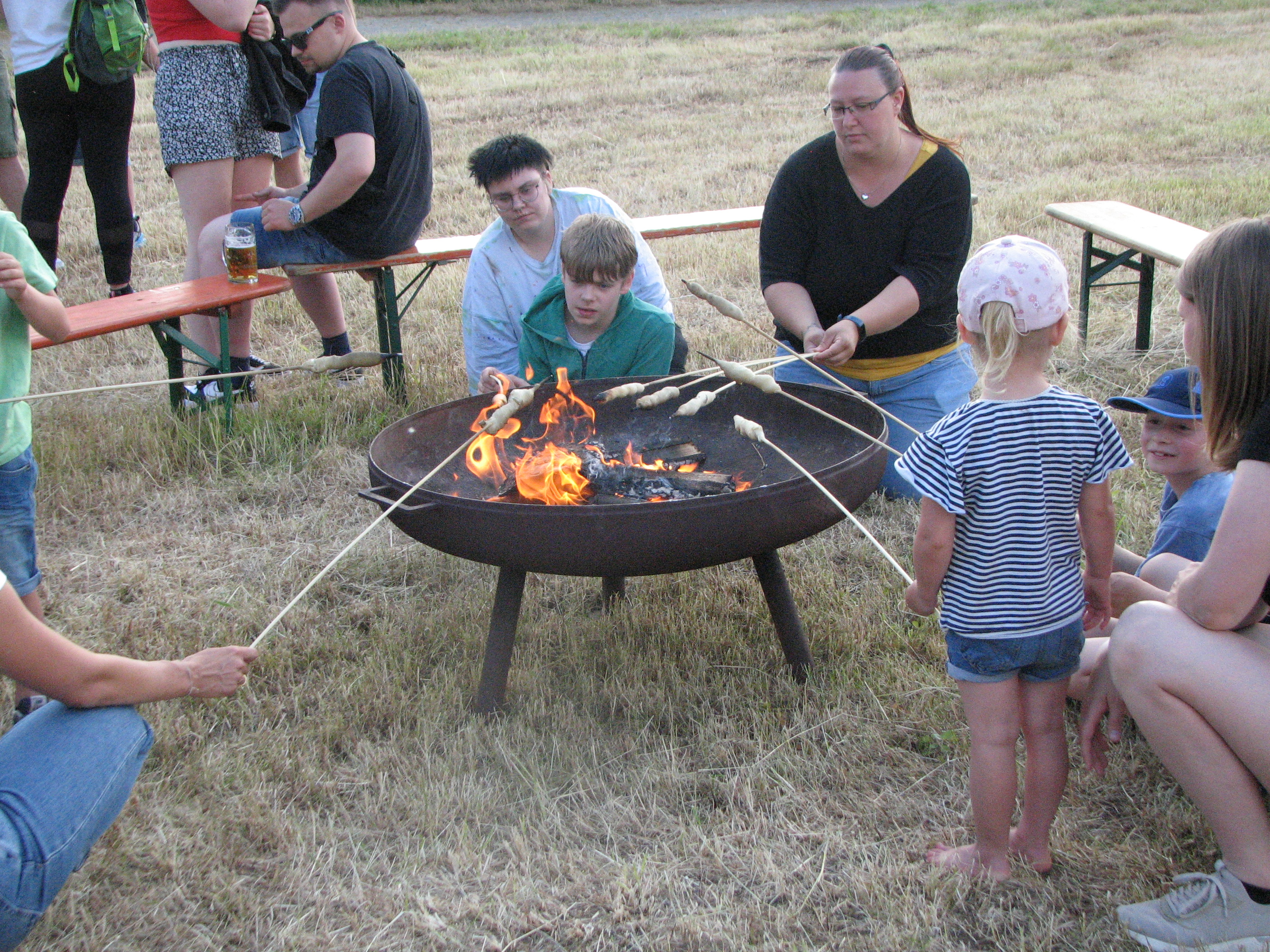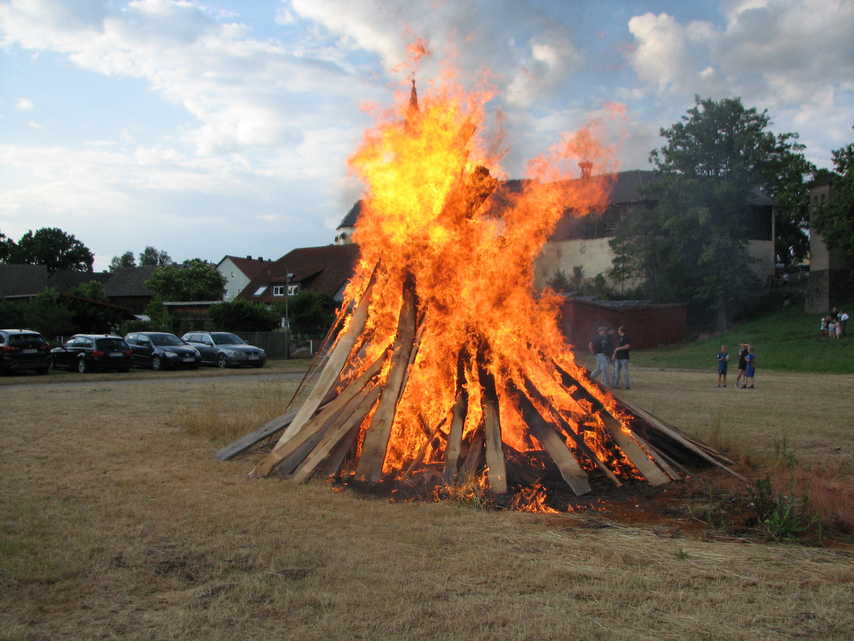 Die Kinder warteten bereits mit ihren Fackeln auf ihren Einsatz, als die bereitstehende Feuerwehr zu einem aktuellen Einsatz gerufen wurde. Gott sei Dank waren die Floriansjünger bald wieder da, so dass die Kinder mit ihren Fackeln unter strenger Überwachung das Johannisfeuer entzünden konnten. Bei Einbruch der Dunkelheit stieg ein hell loderndes Feuer gen Himmel. Am Abend lockte die Bar mit Schnaps und Likören, Weiß-, Rotwein, Shots und Longdrinks. Bis in die Nacht herrschte reges Treiben, und man hatte den Eindruck, dass sich die Besucher auf einen fröhlichen Sommer vorbereiteten.