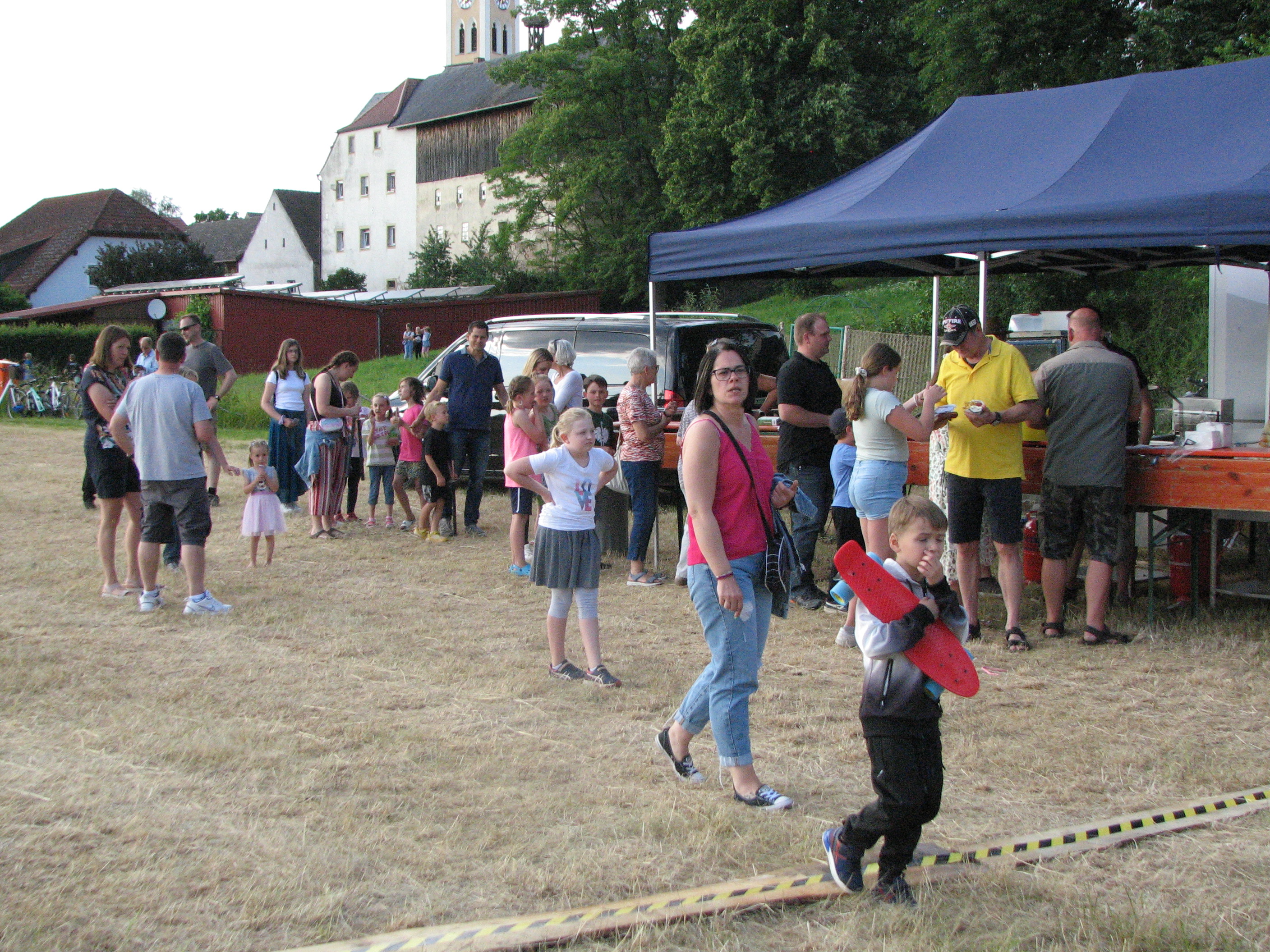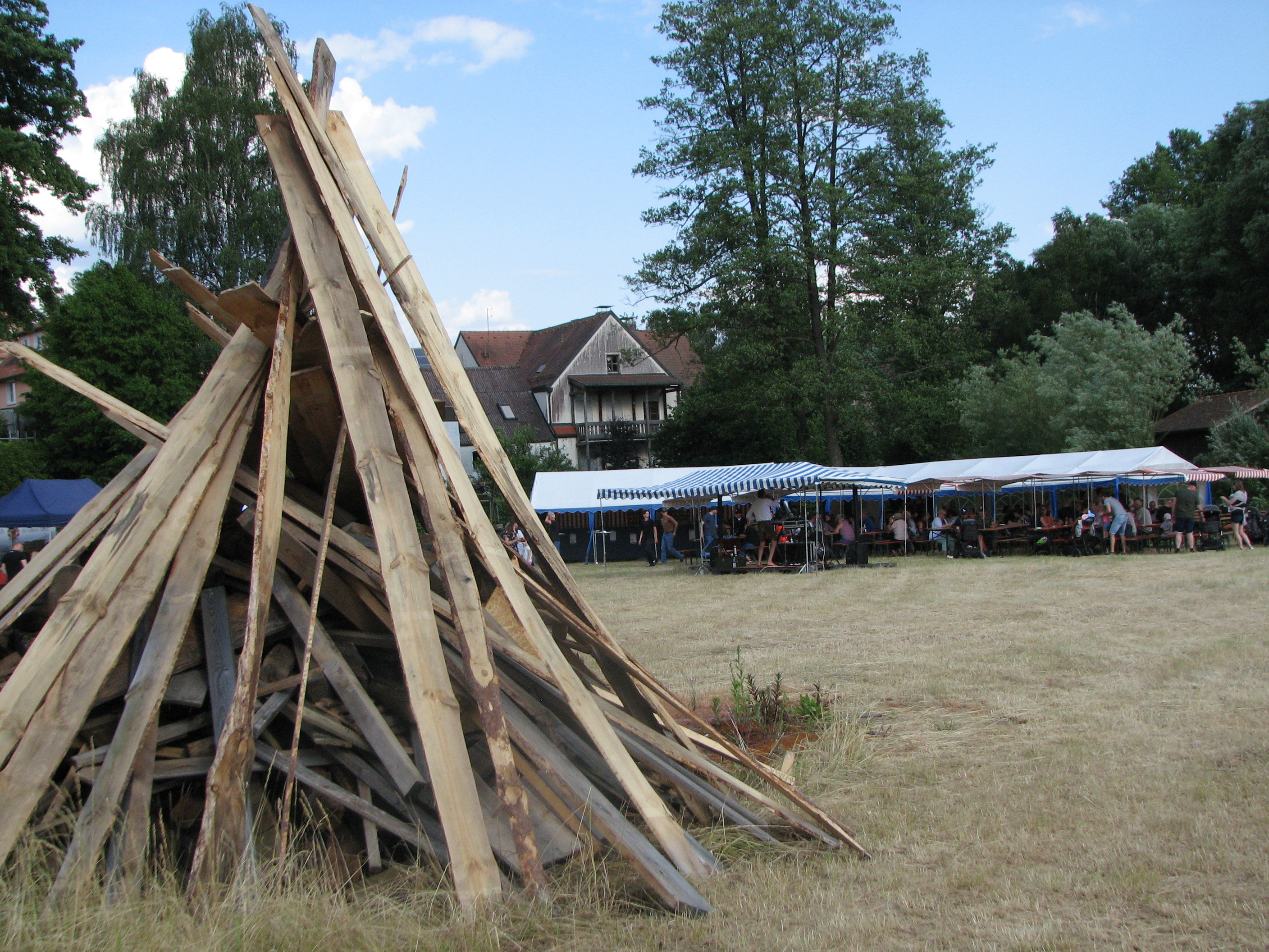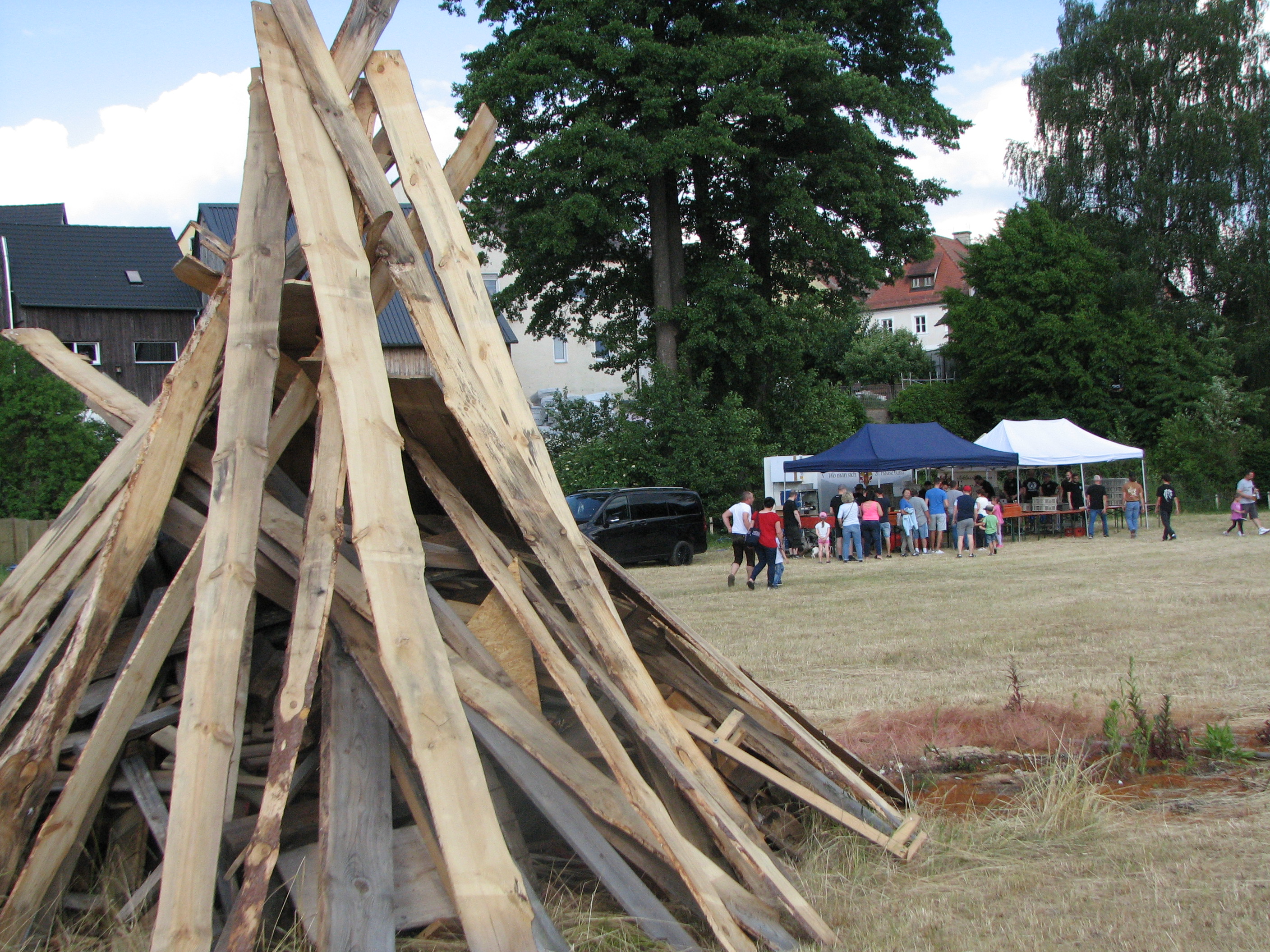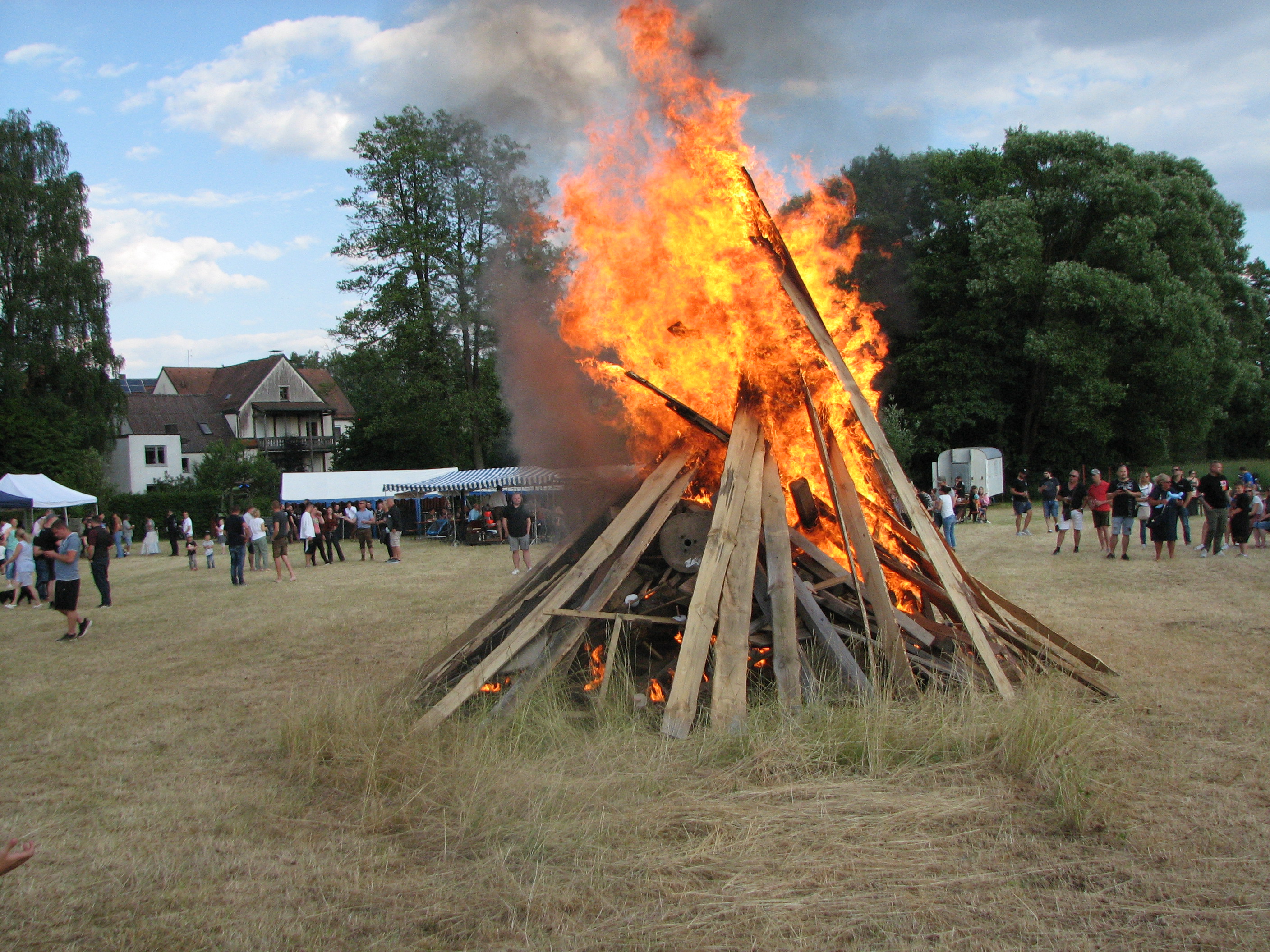 Bereits ab 1500 Uhr lud der Mantler Stammtisch ein zum Festplatz unterhalb der evangelischen Kirche. Bei strahlendem Wetter kamen viele Familien mit Kindern, Jugendliche und Erwachsene zum traditionellen Abbrennen des Johannisfeuers. Im offenen Zelt und unter überdachten Garnituren suchte man schattige Plätze, um in geselliger Runde Kaffee und Kuchen zu genießen, Bier oder Radler zu trinken und sich Bratwurst- und Steaksemmeln schmecken zu lassen.