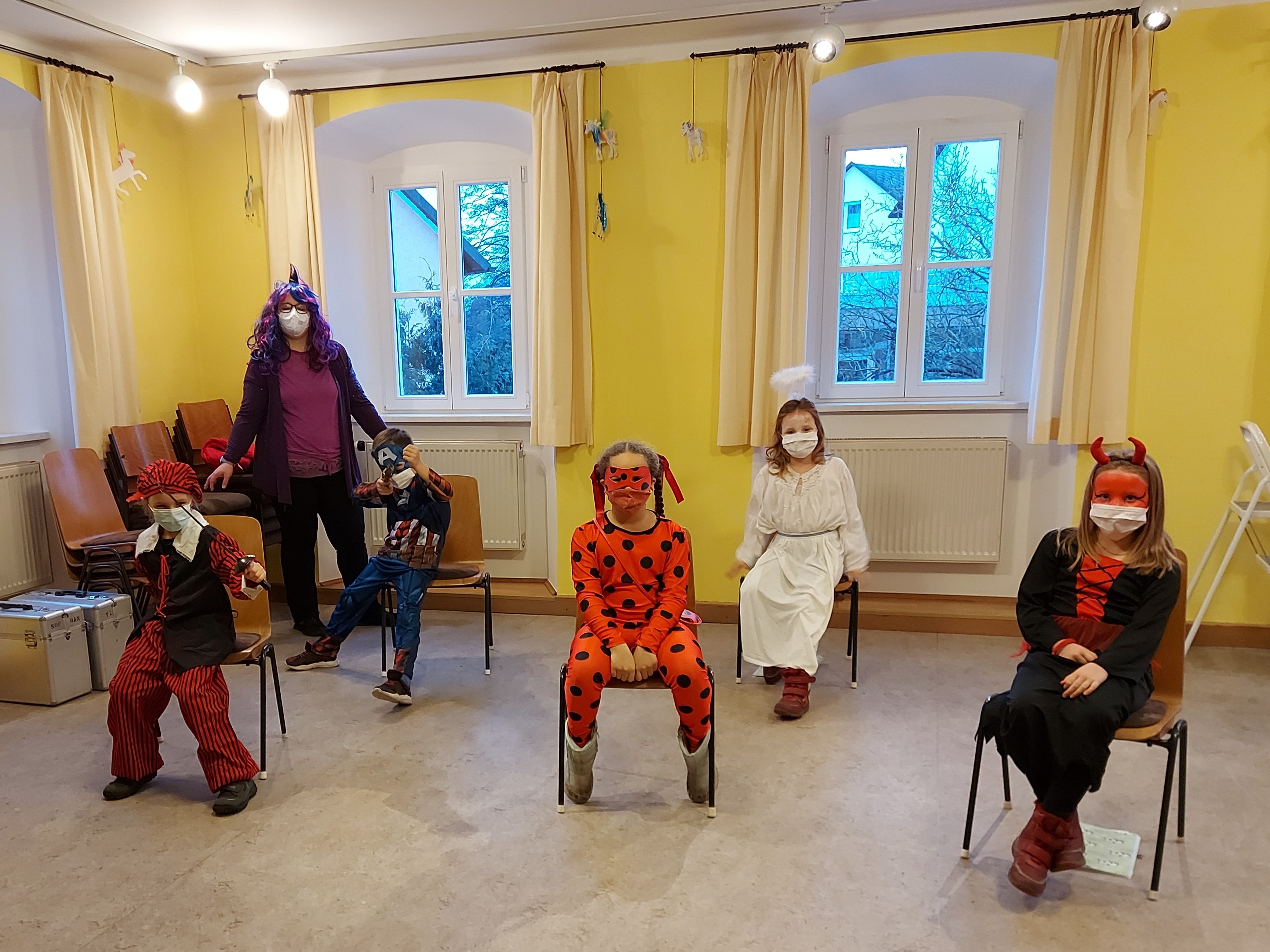Unter den aktuell geltenden Corona Bedingungen durften die Kinder der beiden Chöre zu zwei Proben verkleidet erscheinen und miteinander Fasching feiern. Das Musizieren hatte jedoch nochmals Pause, vielmehr verging für die Prinzessinnen, Meerjungfrauen, Superhelden, Skelette, Piraten, Engel, Teufel, etc. die Zeit dank der vorbereiteten Spiele wie im Flug.