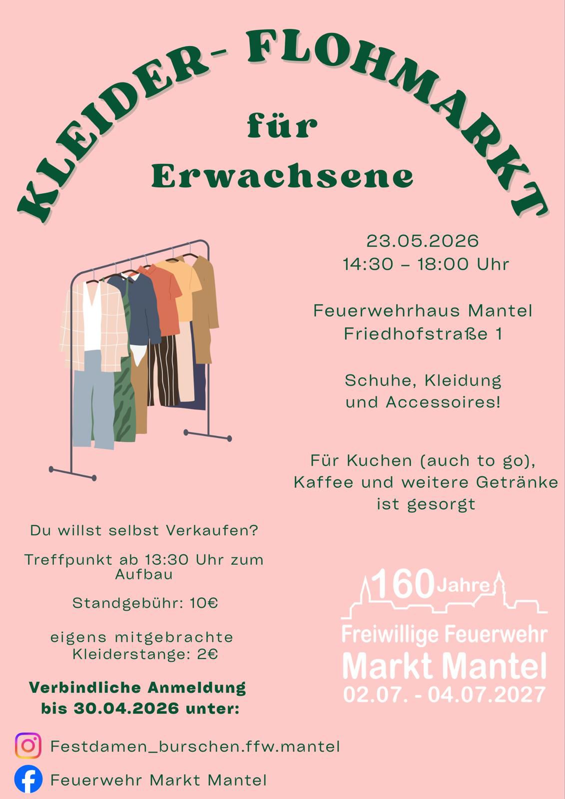 Die Festdamen und Festburschen der Feuerwehr Mantel veranstalten einen Kleiderflohmarkt für