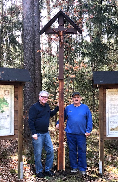 Viele Jahre stand in der kleinen Anlage neben dem Waldspielplatz bei Rupprechtsreuth ein Kreuz mit einem geschnitzten Herrgott, das von einer Manteler Familie gespendet worden war. Ameisen haben dem Balken des Kreuzes im Laufe der Jahre den Garaus gemacht. Total morsch ist er vor einigen Wochen umgebrochen. OWV-Vorsitzender Klaus-Hannes-Kahler hat den Rest gesichert, einen neuen Balken hergerichtet und das Kreuz wieder darauf befestigt. Zusammen mit OWV-Mitglied Lorenz Schwarzmeier hat Kahler Mitte April das restaurierte Kreuz mit einem neuen Balken wieder aufgestellt und Spaziergängen, Jogger und Wanderer könnten dort wieder verweilen und auch ein Gebet sprechen.