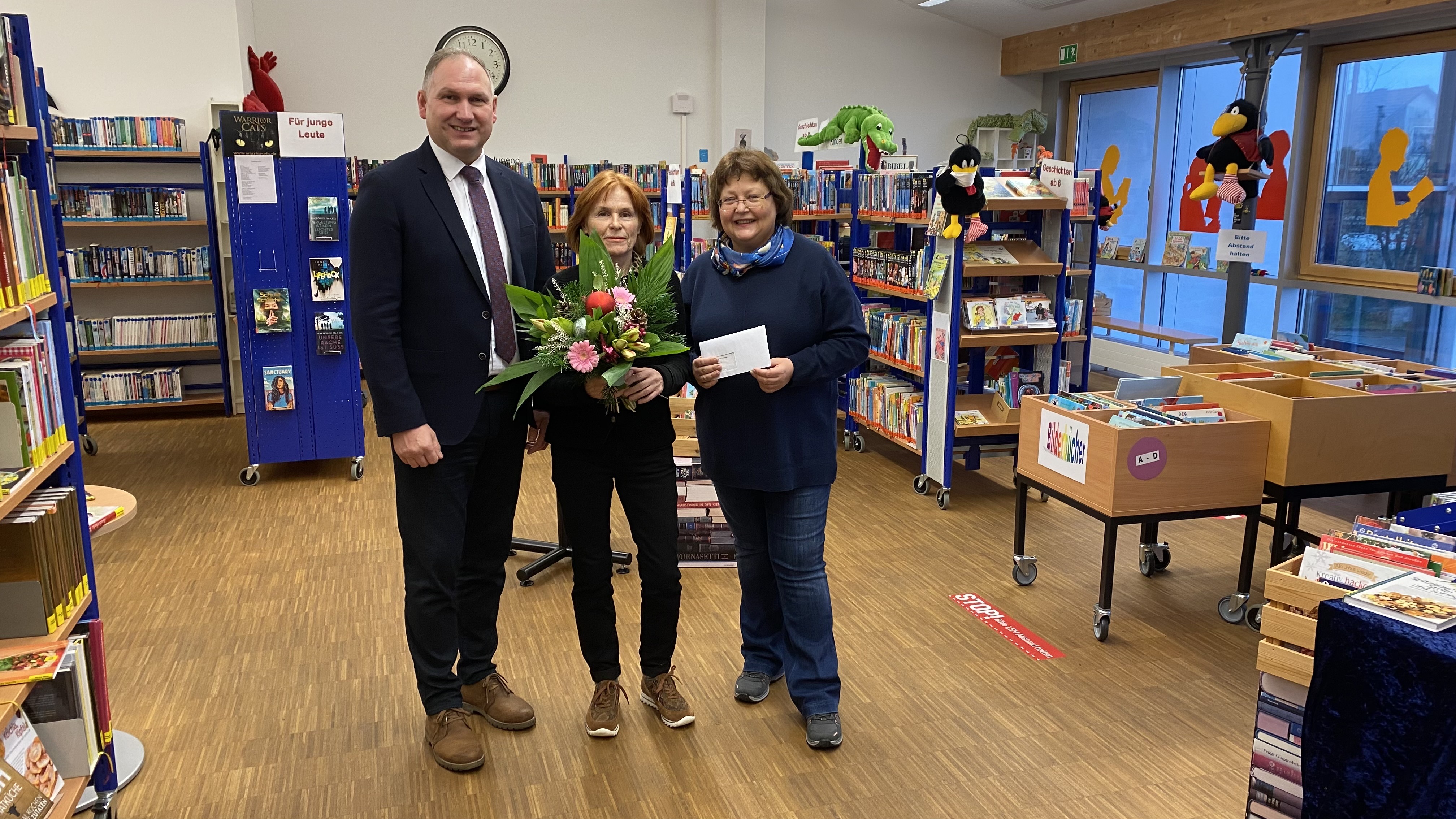 Bibliotheksleiterin Elisabeth Graßler und würdigten ihre Verdienste. Liane Schmid wird auch