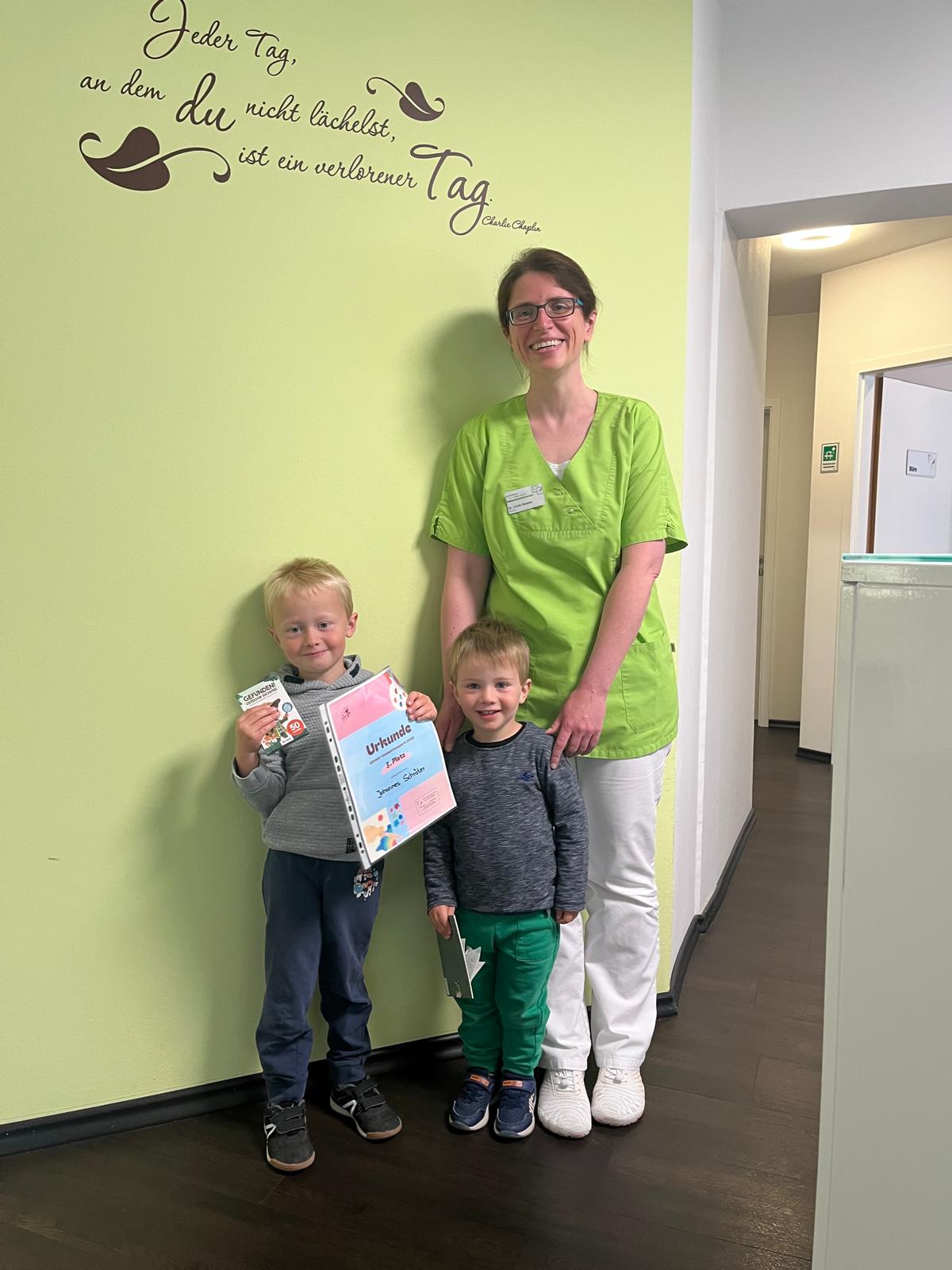 Das Thema des diesjährigen Malwettbewerbes in der Zahnarztpraxis lautete "Abenteuer". Von Mai bis August hatten alle kleinen Patientinnen und Patienten bis zum 12. Lebensjahr die Möglichkeit ihre selbst gemalten Bilder zur Verlosung einzureichen. Zu gewinnen gab es Buch- und Sachpreise sowie für den 1. Platz einen Wertgutschein in Höhe von 50 Euro für den Freizeitpark Monte Kaolino in Hirschau. Die Gewinner waren Anna Fuhrmann, 8 Jahre (1. Platz), Magdalena Fries, 8 Jahre (2. Platz) und Johannes Schröter, 4 Jahre (3. Platz). Alle anderen Teilnehmer sollten nicht leer ausgehen und erhielten einen kleinen Trostpreis. Das gesamte Praxisteam bedankt sich für die Teilnahme und gratuliert den Gewinnern!