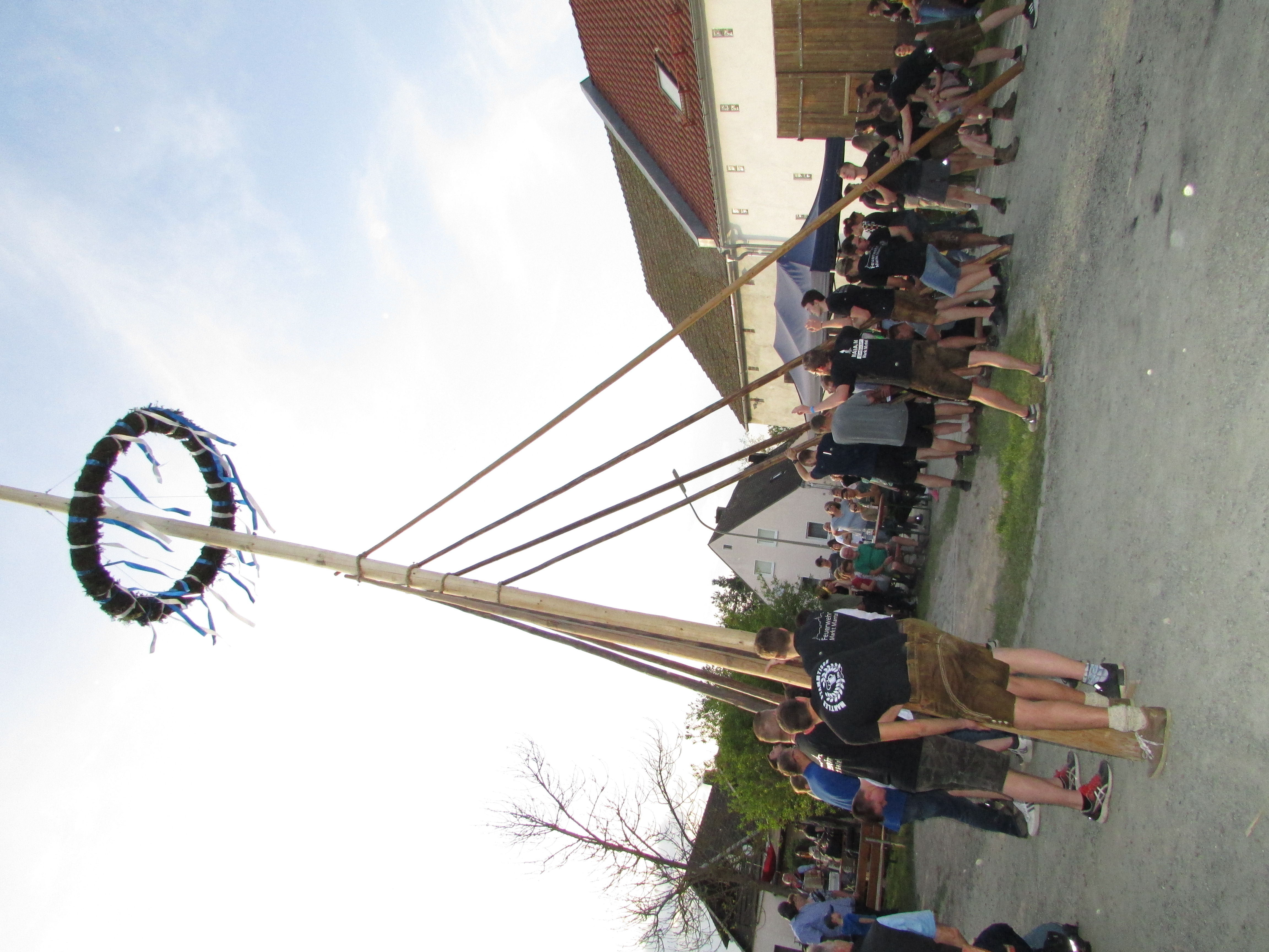 Am 30. Mai haben sich wieder zahlreiche Vereine, die sich zur Maibaumgemeinschaft Mantel zusammengeschlossen haben auf dem Stodelplatz einen 36 Meter hohen Maibaum traditionell mit Schwalben in die Höhe gehievt. Die Manteler kamen sehr zahlreich zum Stodelplatz um den Maiboten mit zu begroßen. Ein Zelt, dass eigentlich für Regenschutz gedacht war, wurde genutzt, um ein schattiges Plätzchen zu finden denn die Sonne strahlte kräftig vom Himmel. Die Wirtshausmusikanten spielten zünftig auf. Es hieß Schlange stehen denn Bratwurstsemmeln, Brezen, Käse und Dotsch mit Beilagen waren heiß begehrt, ebenso erfrischende Getränke. Gegen 18 Uhr gingen dann kräftige Männer an die vier Schwalbenpaare. An jeder Stange kämpften vier Leute Meter um Meter um den Baum in die Höhe zu bringen. Es mussten die Schwalben immer Kontakt haben und dann wurde das vorderste Schwalbenpaar gelöst und die Männer schoben von hinten dann mit längeren Stangen weiter an. Nach einer guten Stunde war das Werk vollbracht und der Maibaum stand sicher in der neugebauten Halterung. Die Gäste belohnten die Akteure mit viel Beifall. Es wurde bis zum Einbruch der Dunkelheit weitergefeiert. Bürgermeister Richard Kammerer unterstützte mit an den Schwalben und dritter Bürgermeister Johann Gurdan betätigte sich als Würstelbrater. Zweiter Bürgermeister Siegfried Janner unterstützte die Aktion ebenfalls. Beim Maifest schmeckten halte die auf dem Holzkohlengrill gebrutzelten Bergbratwürste besonders gut.